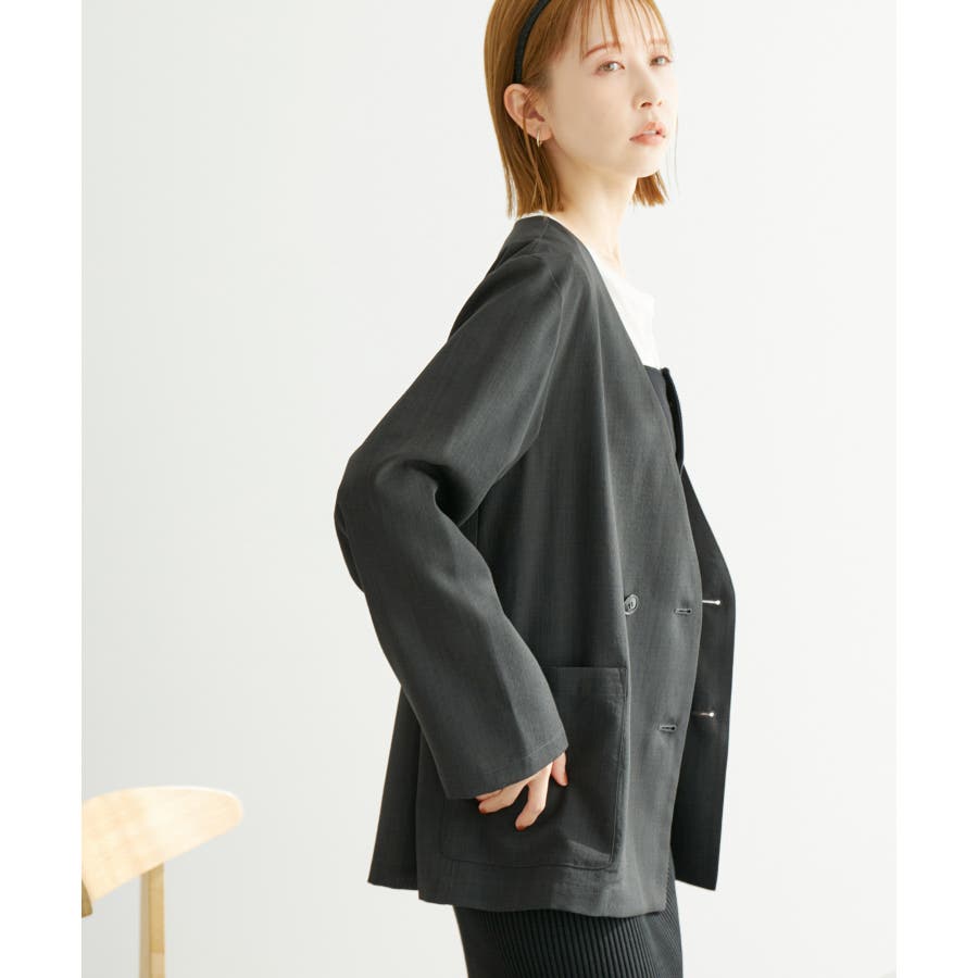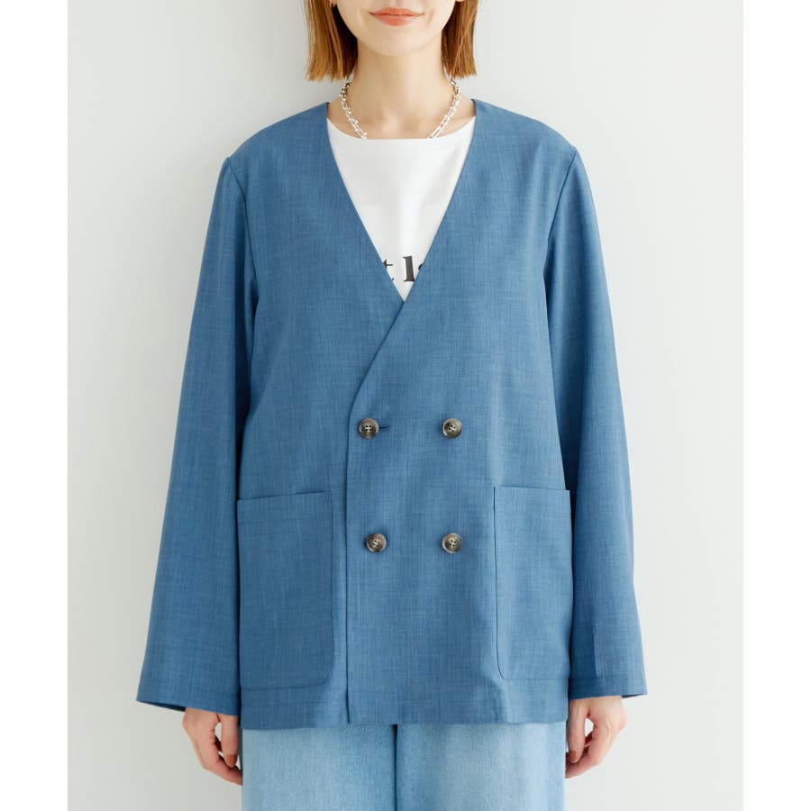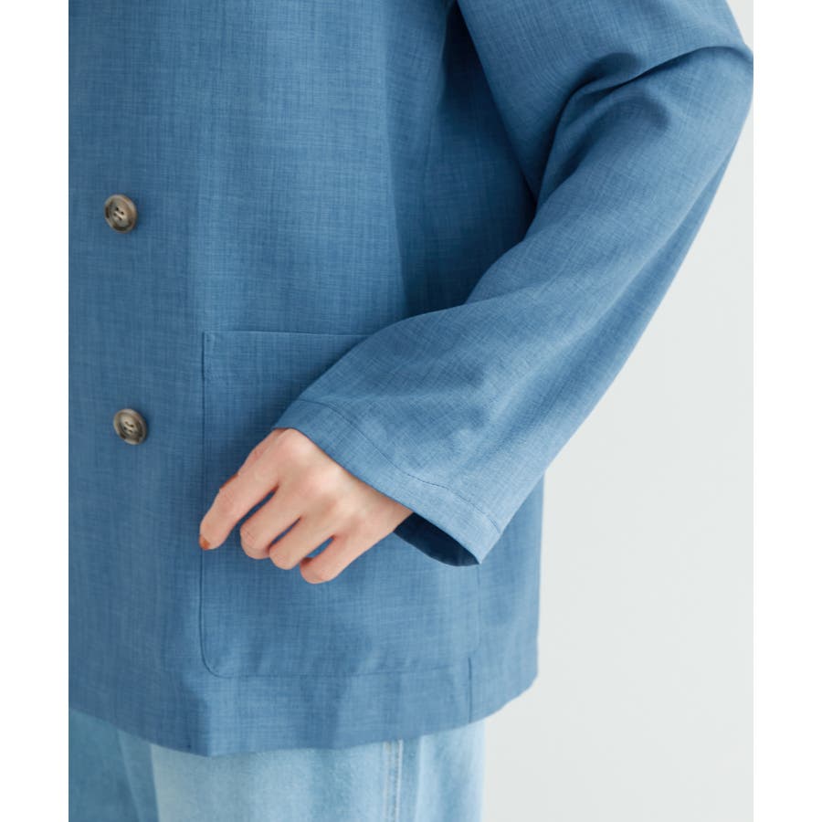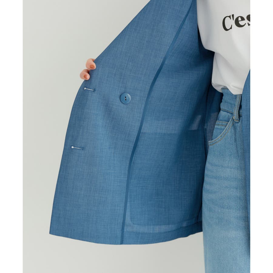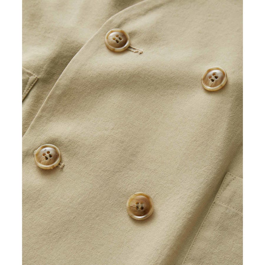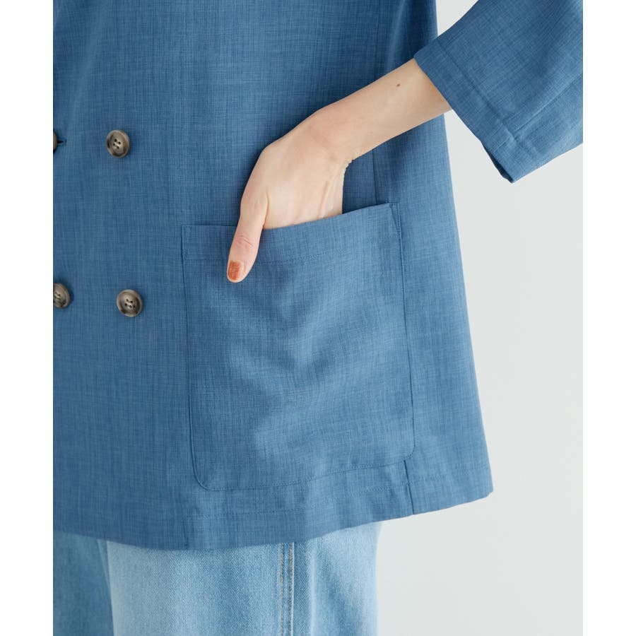 【素材感】 ・シアーな麻調の素材で仕立てた、カラーレスのダブルジャケット。 ・接触冷感性とUVカット(紫外線遮蔽率90%以上)を併せ持った機能素材を採用。 ・再生ポリエステルを使用した、サステナブルなアイテム。 【デザイン・シルエット】 ・着丈も長めで、ゆったりと着られるリラックスシルエット。 ・一重仕立ての軽やかな着心地で動きやすい。 【カラー】 ・カラーによってボタンの色が異なります。 チャコール(06):マーブル調のライトブラウン ベージュ(27):ブラック ブルー(45):マーブル調のダークブラウン 【スタイリングポイント】 ・同シリーズのパンツとセットアップで着用可能。 ・手持ちのワンピースなどに羽織って、春アウターとしても活躍。 ・襟回りがすっきりしていて、フーディーを重ねても◎。 <同シリーズアイテム> ・クロップドジャケット(品番:GDV14120) ・ワイドパンツ(品番:GDS14130) ・ダブルテーラードジャケット(品番:GDV54050) ----------------------------- 裏地:なし 透け感:光に当てるとややあり 伸縮性:なし 生地感・厚さ:やや薄手 ポケット:あり 季節:春・夏 ----------------------------- ※撮影時の光、お使いのモニター環境によって色の見え方が違う場合がございます。 ※全カラーモデル身長:165cm 着用サイズ:38