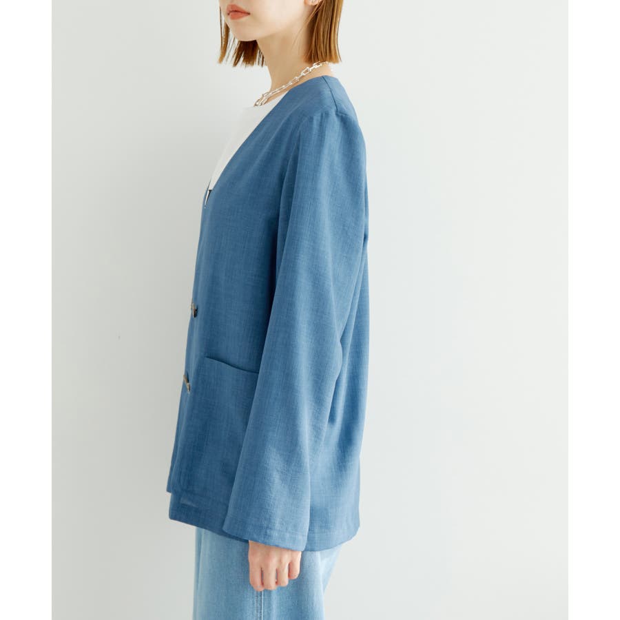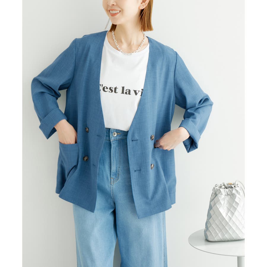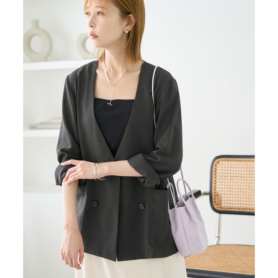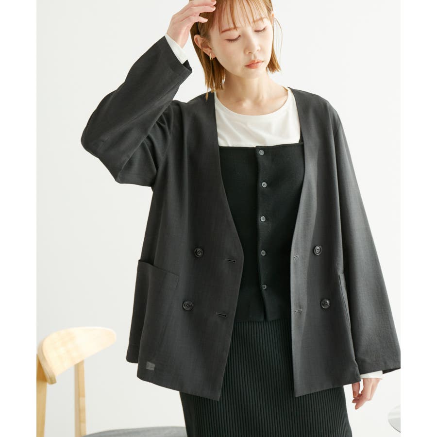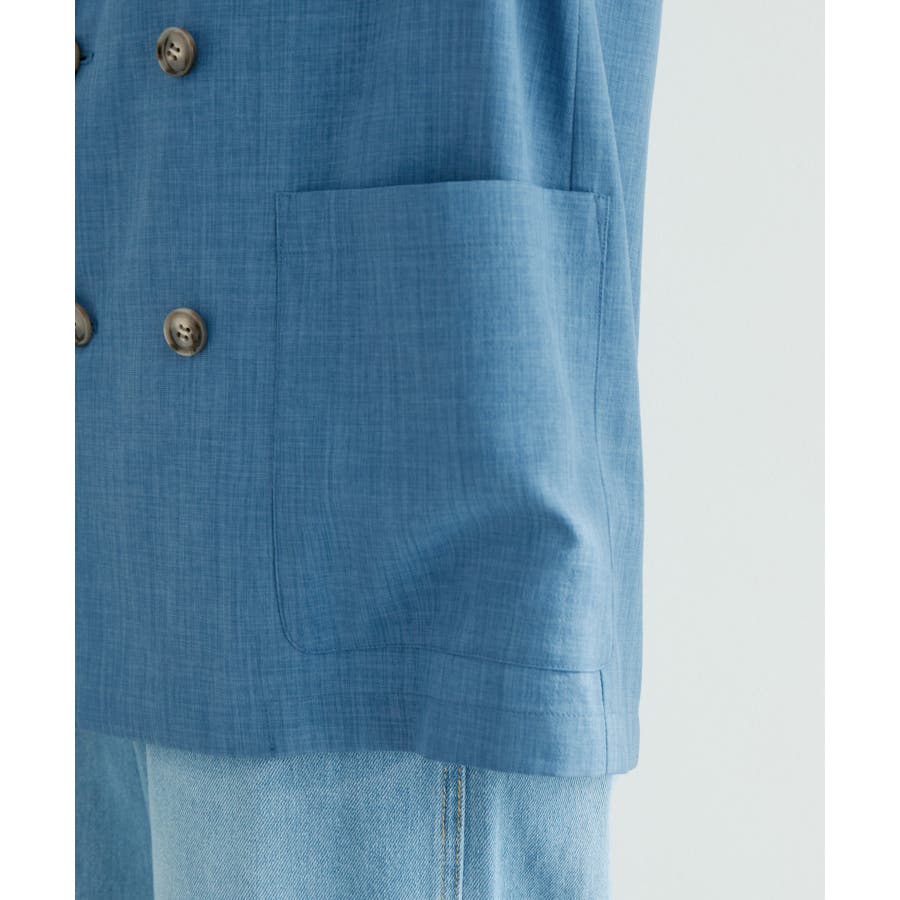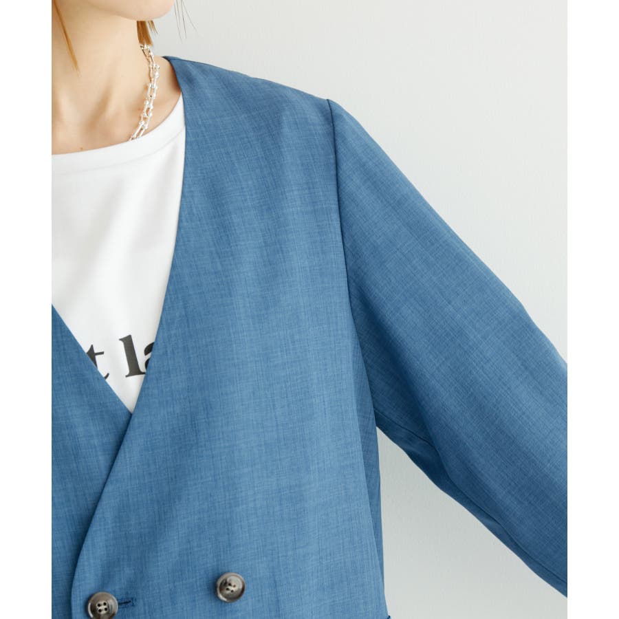 【素材感】 ・シアーな麻調の素材で仕立てた、カラーレスのダブルジャケット。 ・接触冷感性とUVカット(紫外線遮蔽率90%以上)を併せ持った機能素材を採用。 ・再生ポリエステルを使用した、サステナブルなアイテム。 【デザイン・シルエット】 ・着丈も長めで、ゆったりと着られるリラックスシルエット。 ・一重仕立ての軽やかな着心地で動きやすい。 【カラー】 ・カラーによってボタンの色が異なります。 チャコール(06):マーブル調のライトブラウン ベージュ(27):ブラック ブルー(45):マーブル調のダークブラウン 【スタイリングポイント】 ・同シリーズのパンツとセットアップで着用可能。 ・手持ちのワンピースなどに羽織って、春アウターとしても活躍。 ・襟回りがすっきりしていて、フーディーを重ねても◎。 <同シリーズアイテム> ・クロップドジャケット(品番:GDV14120) ・ワイドパンツ(品番:GDS14130) ・ダブルテーラードジャケット(品番:GDV54050) ----------------------------- 裏地:なし 透け感:光に当てるとややあり 伸縮性:なし 生地感・厚さ:やや薄手 ポケット:あり 季節:春・夏 ----------------------------- ※撮影時の光、お使いのモニター環境によって色の見え方が違う場合がございます。 ※全カラーモデル身長:165cm 着用サイズ:38