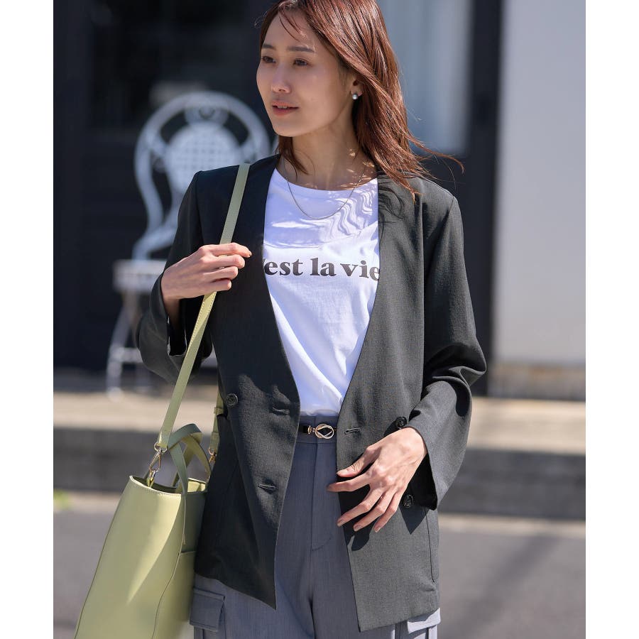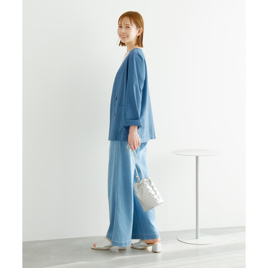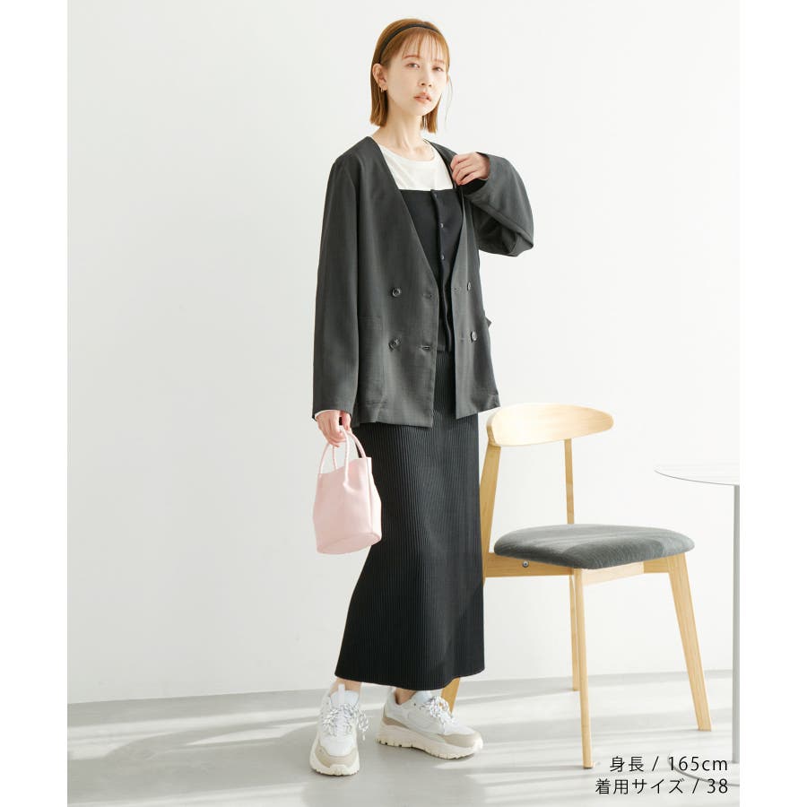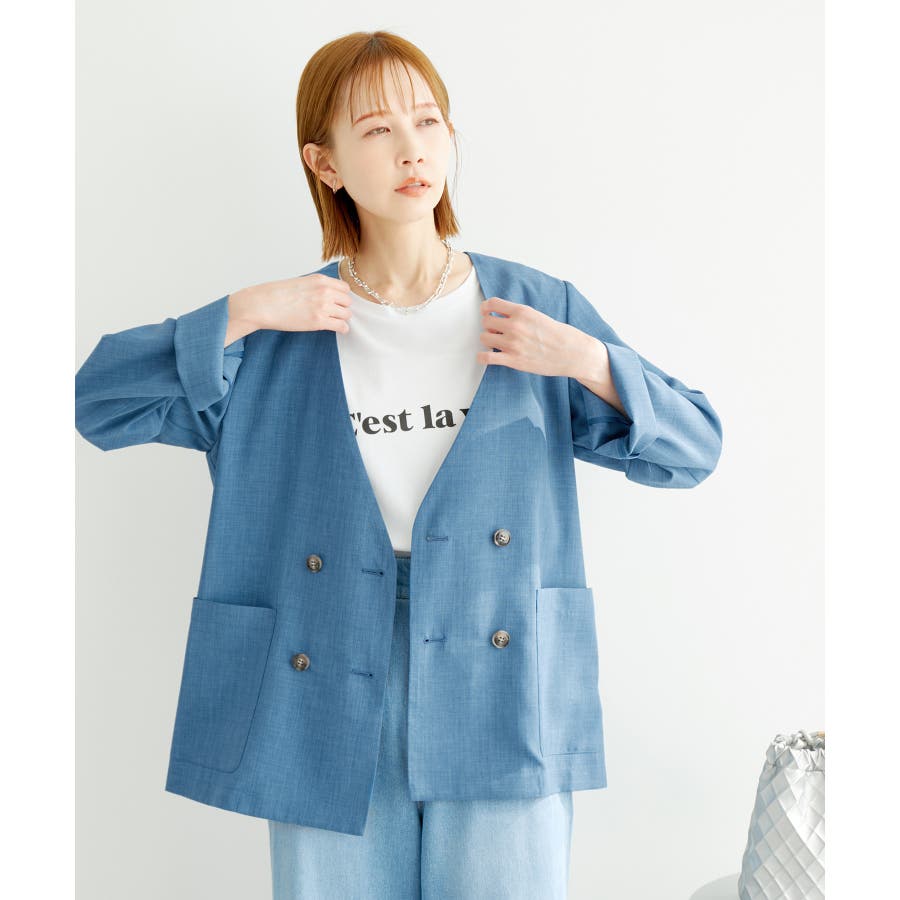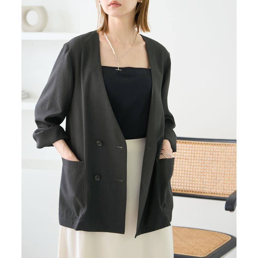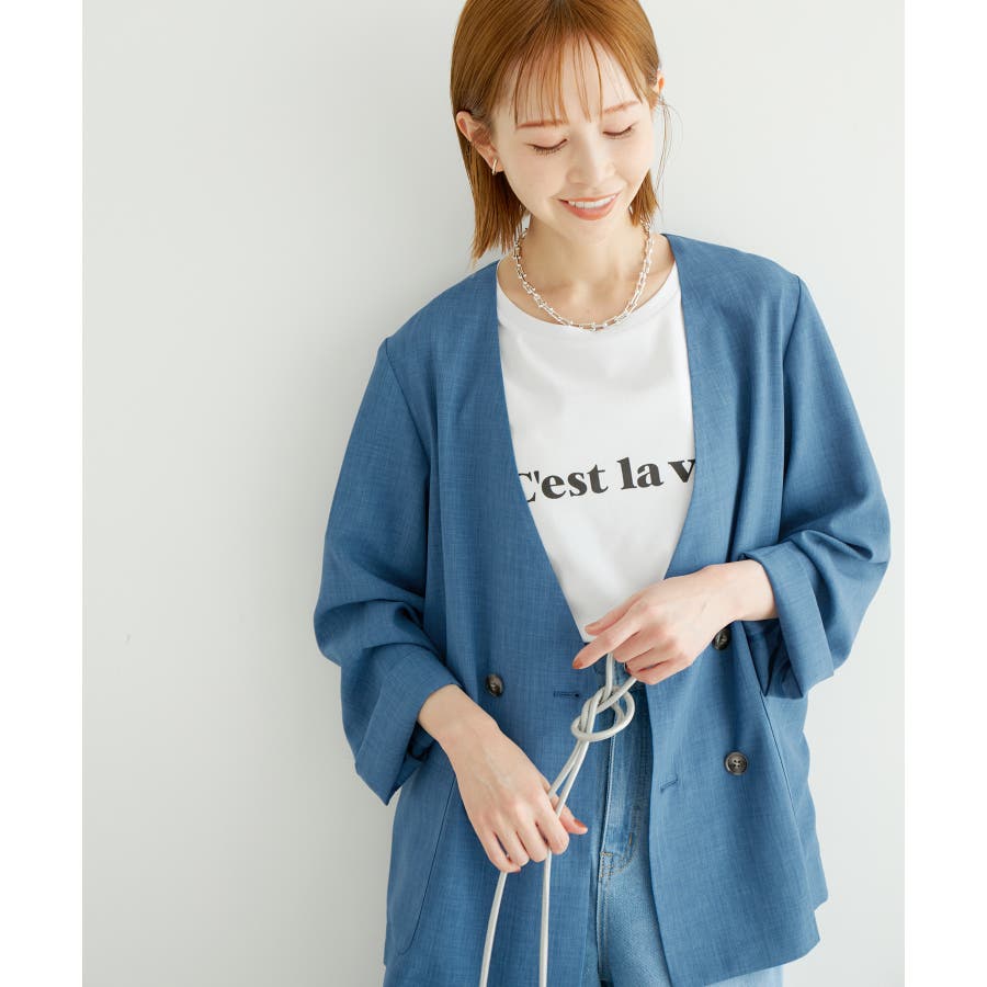 【素材感】 ・シアーな麻調の素材で仕立てた、カラーレスのダブルジャケット。 ・接触冷感性とUVカット(紫外線遮蔽率90%以上)を併せ持った機能素材を採用。 ・再生ポリエステルを使用した、サステナブルなアイテム。 【デザイン・シルエット】 ・着丈も長めで、ゆったりと着られるリラックスシルエット。 ・一重仕立ての軽やかな着心地で動きやすい。 【カラー】 ・カラーによってボタンの色が異なります。 チャコール(06):マーブル調のライトブラウン ベージュ(27):ブラック ブルー(45):マーブル調のダークブラウン 【スタイリングポイント】 ・同シリーズのパンツとセットアップで着用可能。 ・手持ちのワンピースなどに羽織って、春アウターとしても活躍。 ・襟回りがすっきりしていて、フーディーを重ねても◎。 <同シリーズアイテム> ・クロップドジャケット(品番:GDV14120) ・ワイドパンツ(品番:GDS14130) ・ダブルテーラードジャケット(品番:GDV54050) ----------------------------- 裏地:なし 透け感:光に当てるとややあり 伸縮性:なし 生地感・厚さ:やや薄手 ポケット:あり 季節:春・夏 ----------------------------- ※撮影時の光、お使いのモニター環境によって色の見え方が違う場合がございます。 ※全カラーモデル身長:165cm 着用サイズ:38