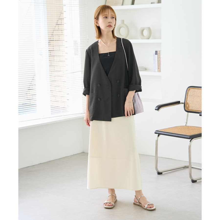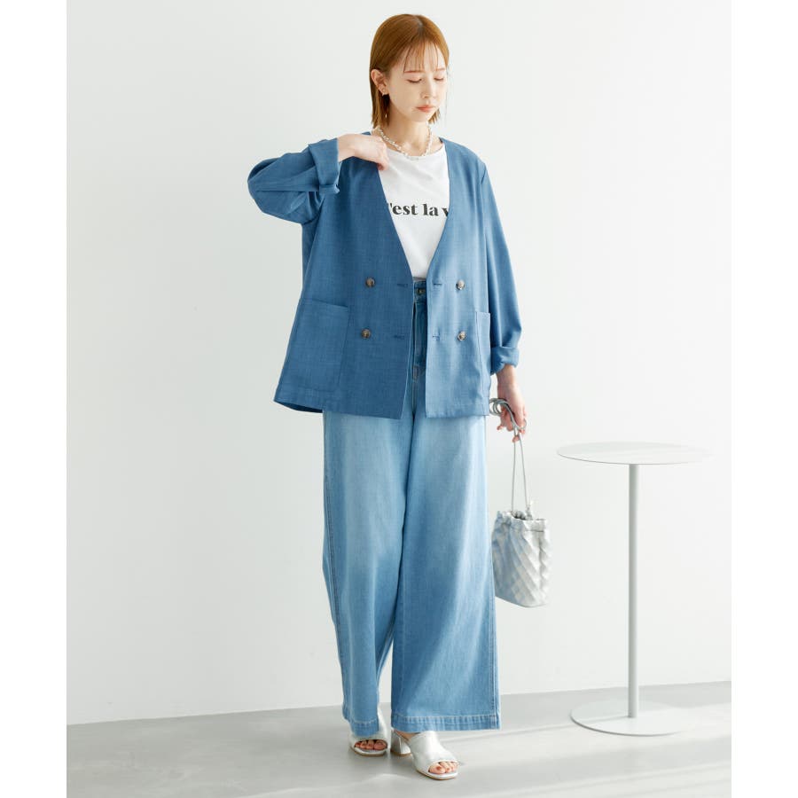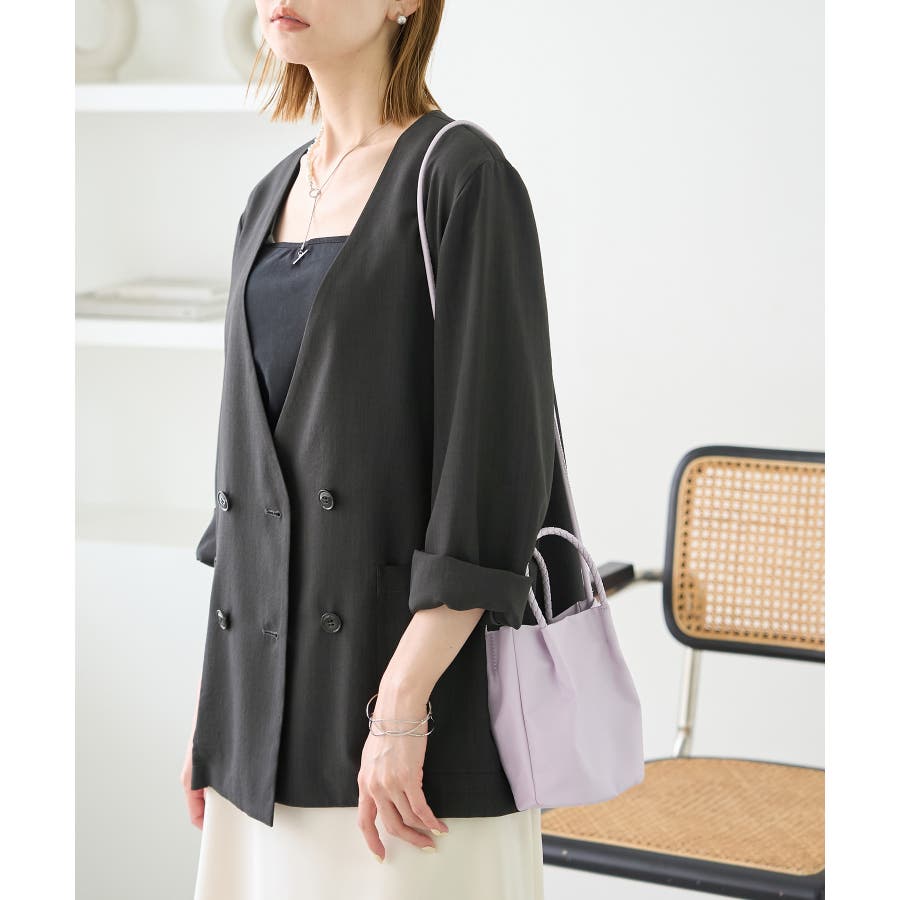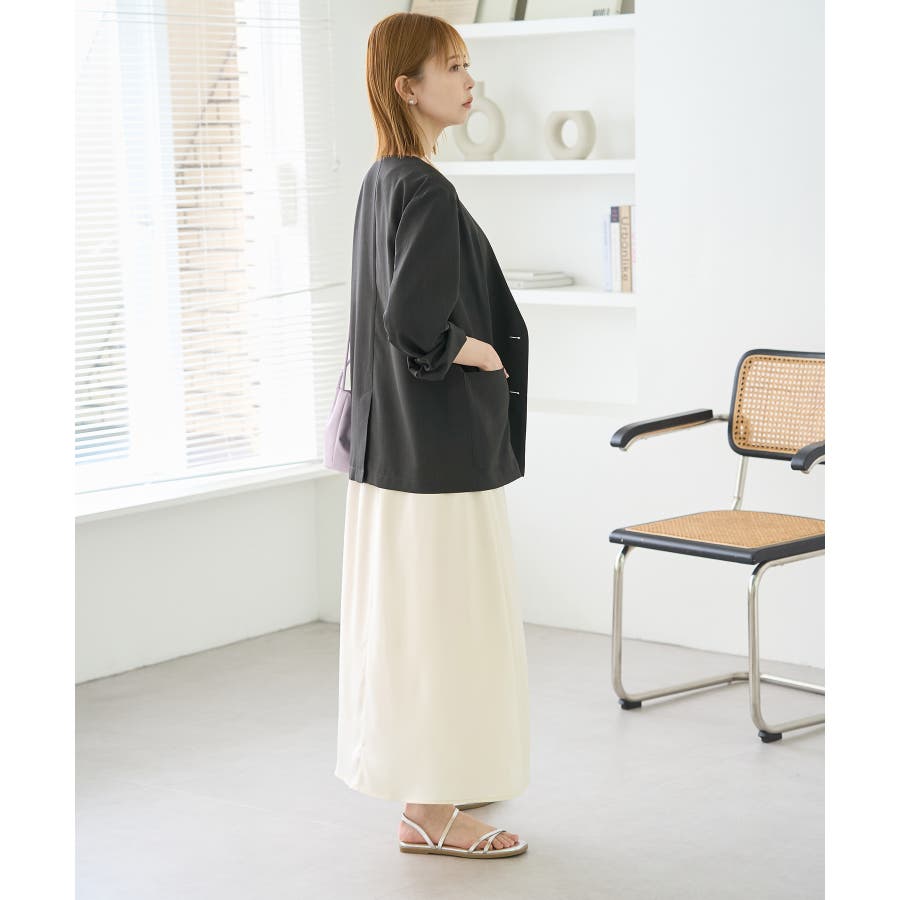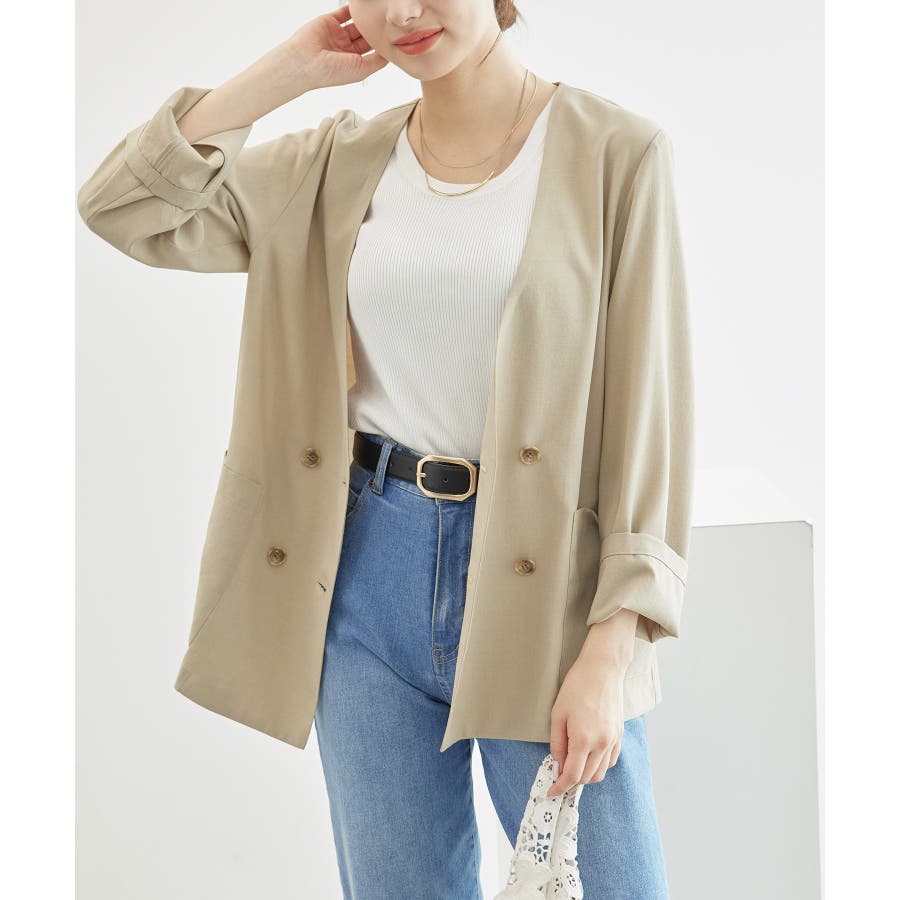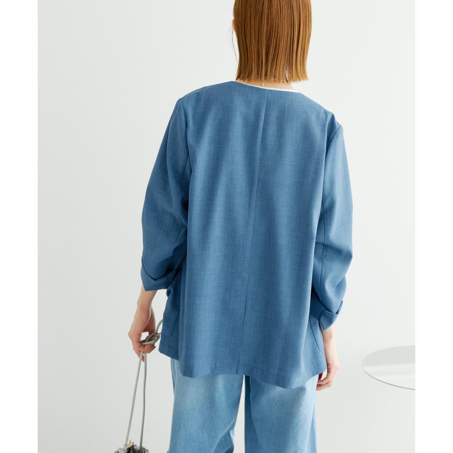 【素材感】 ・シアーな麻調の素材で仕立てた、カラーレスのダブルジャケット。 ・接触冷感性とUVカット(紫外線遮蔽率90%以上)を併せ持った機能素材を採用。 ・再生ポリエステルを使用した、サステナブルなアイテム。 【デザイン・シルエット】 ・着丈も長めで、ゆったりと着られるリラックスシルエット。 ・一重仕立ての軽やかな着心地で動きやすい。 【カラー】 ・カラーによってボタンの色が異なります。 チャコール(06):マーブル調のライトブラウン ベージュ(27):ブラック ブルー(45):マーブル調のダークブラウン 【スタイリングポイント】 ・同シリーズのパンツとセットアップで着用可能。 ・手持ちのワンピースなどに羽織って、春アウターとしても活躍。 ・襟回りがすっきりしていて、フーディーを重ねても◎。 <同シリーズアイテム> ・クロップドジャケット(品番:GDV14120) ・ワイドパンツ(品番:GDS14130) ・ダブルテーラードジャケット(品番:GDV54050) ----------------------------- 裏地:なし 透け感:光に当てるとややあり 伸縮性:なし 生地感・厚さ:やや薄手 ポケット:あり 季節:春・夏 ----------------------------- ※撮影時の光、お使いのモニター環境によって色の見え方が違う場合がございます。 ※全カラーモデル身長:165cm 着用サイズ:38