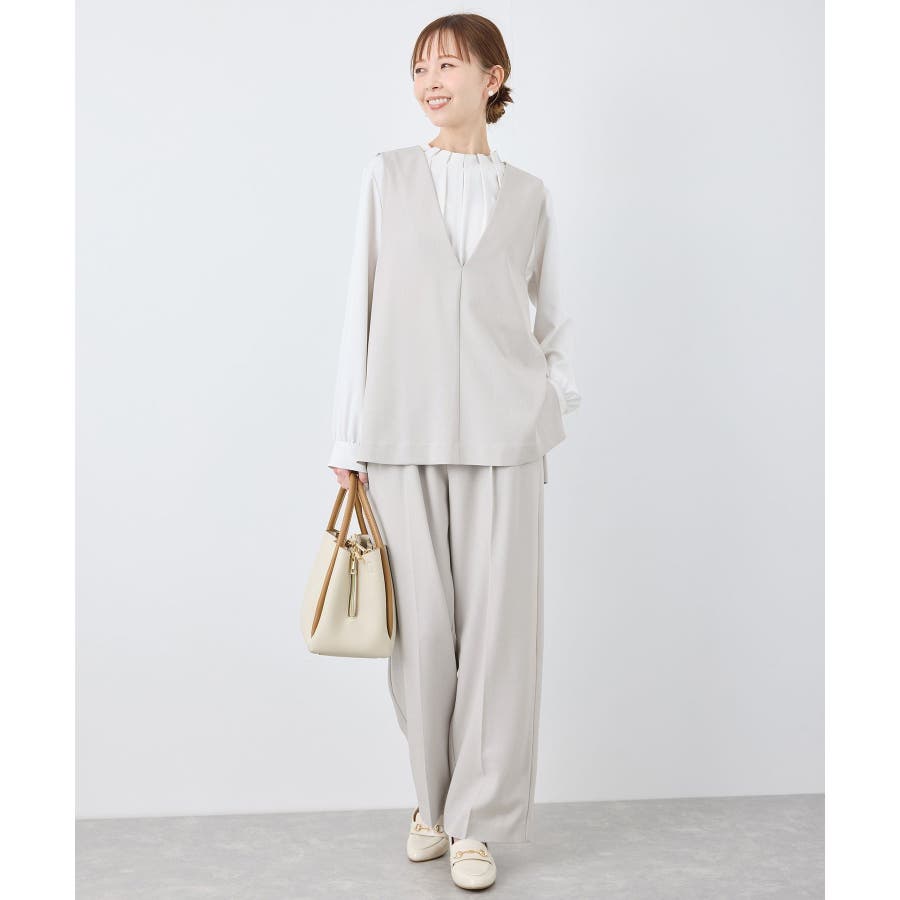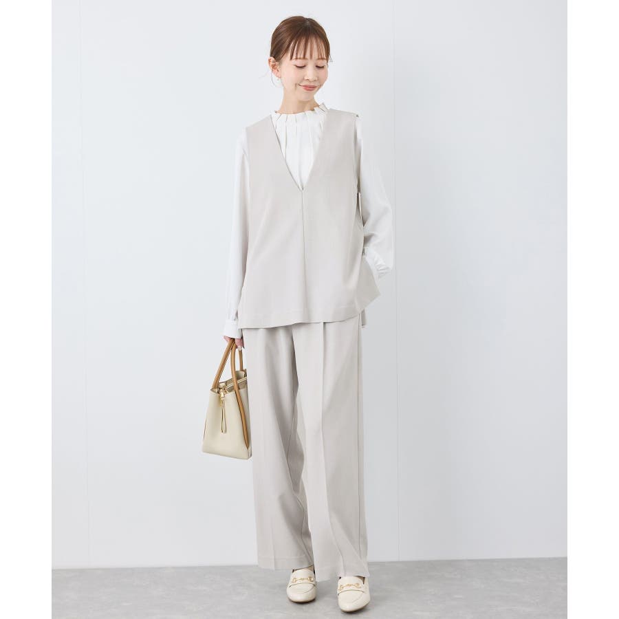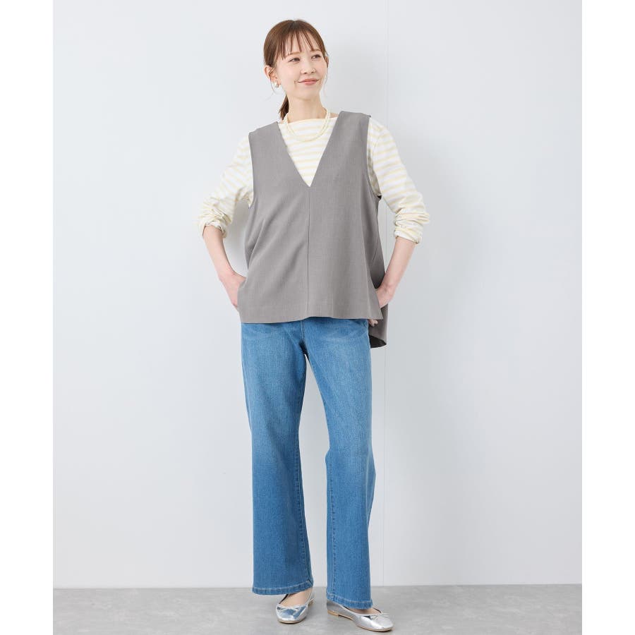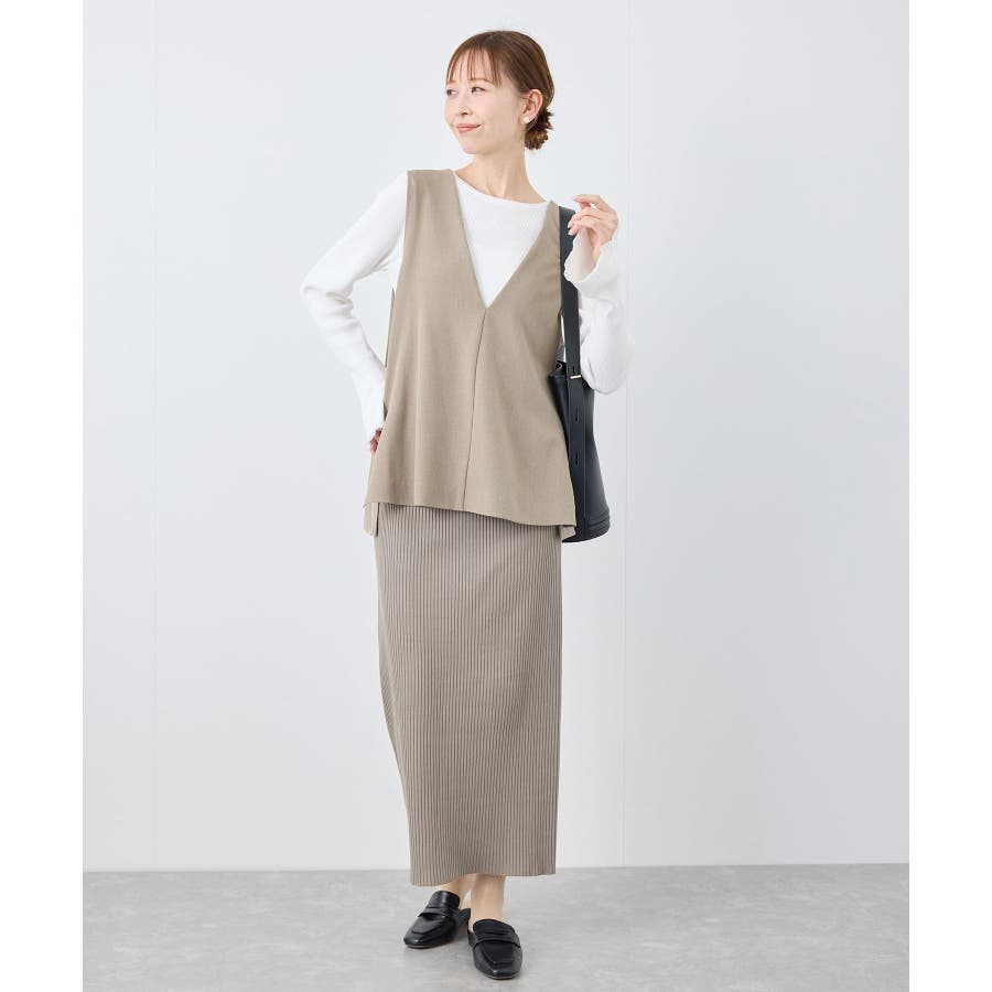 【素材感】 ・ほんのり光沢のあるツイル素材で仕立て、フォーマルシーンやハレの日にも適した上品な印象。 ・花粉が付着しにくく、落としやすい加工を施した花粉ガード機能で、春のお出かけや通勤、お仕事にも最適。 【デザイン・シルエット】 ・すっきりとしたVネックと長めに施したサイドスリットがポイント。 ・ヒップに掛かるほどのレングスで、お腹やヒップをさりげなくカバーしつつ美しいシルエットを演出。 ・シンプルで合わせやすいデザインは、フォーマルからカジュアルまで幅広いシーンで着回し可能。 ・同シリーズでジャケット(品番:GDV15070)も展開。 【カラー】 ・チャコール、ライトグレー、ベージュ、ネイビーの4色展開で、オフィスカジュアルからデイリーまで使いやすいカラーバリエーション。 ※チャコール(06)は一部店舗限定カラーとなります。 【スタイリングポイント】 ・ワイドパンツやロングスカートとのコーディネートが今季のおすすめ。 ・春先は薄手のタートルネックやシャツを重ねた着こなしで季節感を演出。 ・暖かくなったら、ノースリーブのトップスやワンピースの羽織りとして活躍。 ・カラーによっては、同シリーズのパンツ(品番:GDS15070)とのセットアップも可能で、卒園/卒業式や入園/入学式などのセレモニー/オケージョンにも対応。 ----------------------------- 裏地:なし 透け感:なし 伸縮性:ややあり 生地感・厚さ:普通 ポケット:なし 季節:春・夏・秋・冬 ----------------------------- ※撮影時の光、お使いのモニター環境によって色の見え方が違う場合がございます。 ※モデル身長:165cm 着用サイズ:38