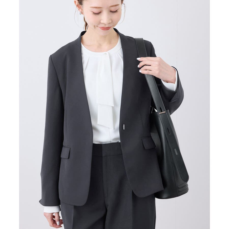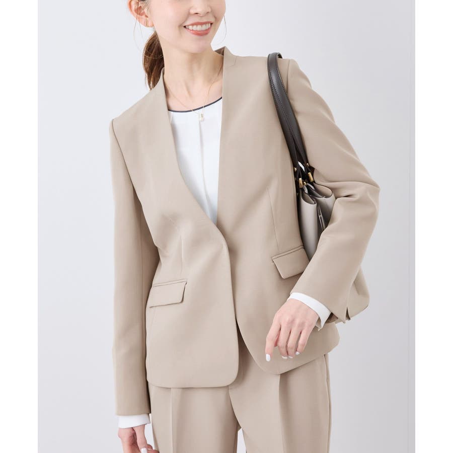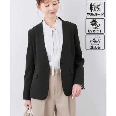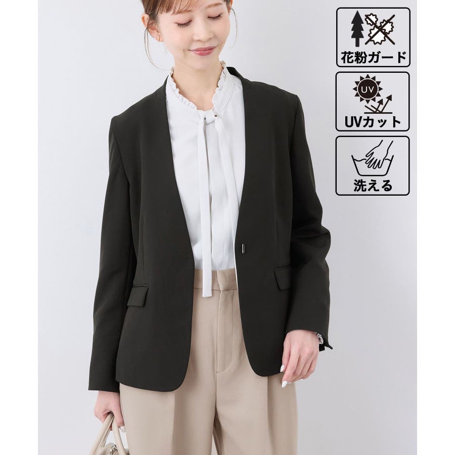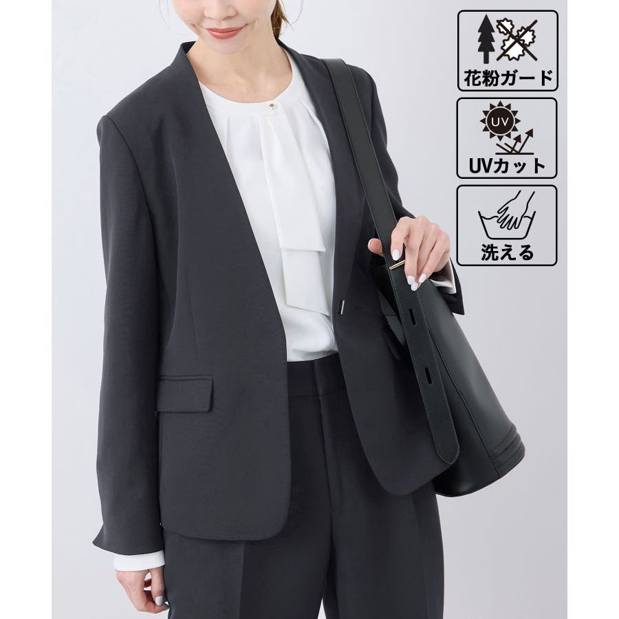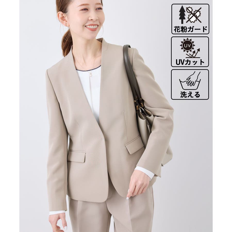 きちんと感×快適さを両立し、オフィスやセレモニーにぴったり。UVカット・花粉ガードの機能素材を搭載したノーラペルジャケット。