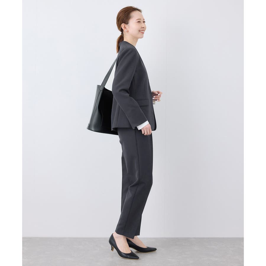 毎年大人気の360°ウルトラストレッチシリーズに機能性素材を追加した新作が登場! : 【素材感】 ・縦横に伸びる、きれいめなダブルクロス素材を使用し、快適な着心地を実現。 ・花粉が付着しにくく、落としやすい花粉ガード機能付きで、外出時も安心。 ・UVカット(紫外線遮蔽率90%以上)で、春夏の紫外線対策にも◎。 【デザイン・シルエット】 ・シャープなVネックデザインが、洗練された大人の印象を演出。 ・ダーツを施したすっきりシルエットで、スタイルアップ効果も。 ・フラップポケットが立体感をプラスし、上品なアクセントに。 ・バックスタイルにはセンターベント入りで、動きやすさも兼備。 【カラー】 ・ブラック、モカ、ネイビーの3色展開。 【スタイリングポイント】 ・ベーシックなシャツやカットソーに羽織れば、オフィスカジュアルや通勤スタイルに◎。 ・シンプルなワンピースに羽織るだけで、上品なセレモニースタイルが完成。 ・卒園式や入学式などのフォーマルシーンにも活躍。 ・ワイドパンツ(品番:GDS15150) ・テーパードパンツ(品番:GDS15140) ・タイトスカート(品番:GDC15140) ・テーラードジャケット(品番:GDV15150) 【前シーズンのノーラペルジャケット(品番:GDV14140)との違い】 ・フロント・ベンツを右上前あきに変更。 ※寸法は変更しておりません。 ※色味は生産時期が異なるため多少異なります。 ----------------------------- 裏地:あり 透け感:なし 伸縮性:あり 生地感・厚さ:普通 ポケット:あり 季節:春・秋 ----------------------------- ※撮影時の光、お使いのモニター環境によって色の見え方が違う場合がございます。 ※ポケットはしつけ糸で縫われています。着用前にお切りください。 ※今までの同じシリーズのアイテムと同じカラーですが、生産時期のタイミングによって色味が若干異なる場合がごさいます。何卒ご了承下さいますよう、お願い申し上げます。 ※モデル身長:165cm 着用サイズ:38