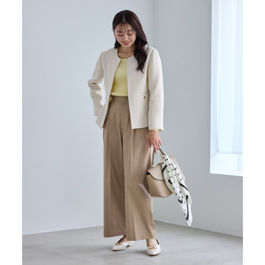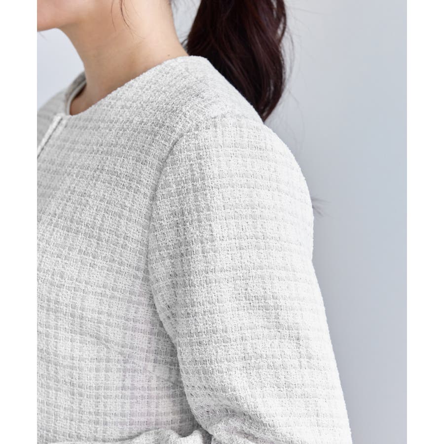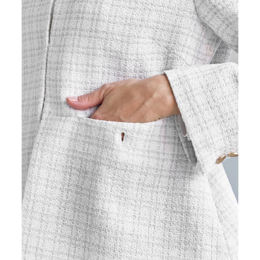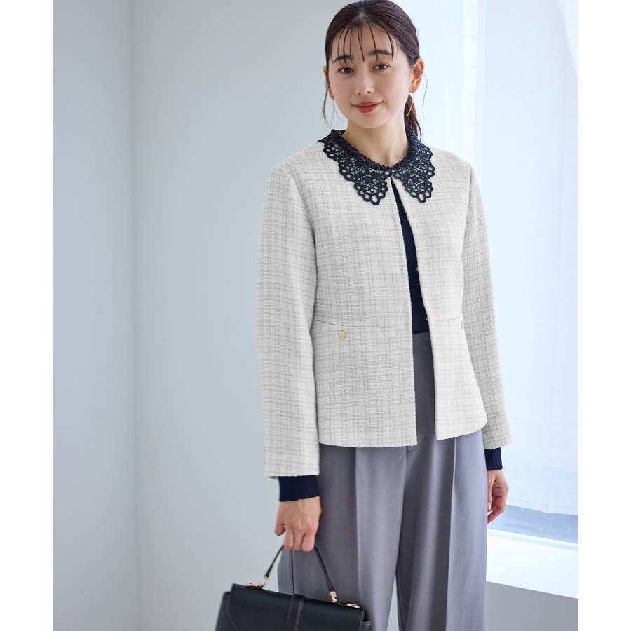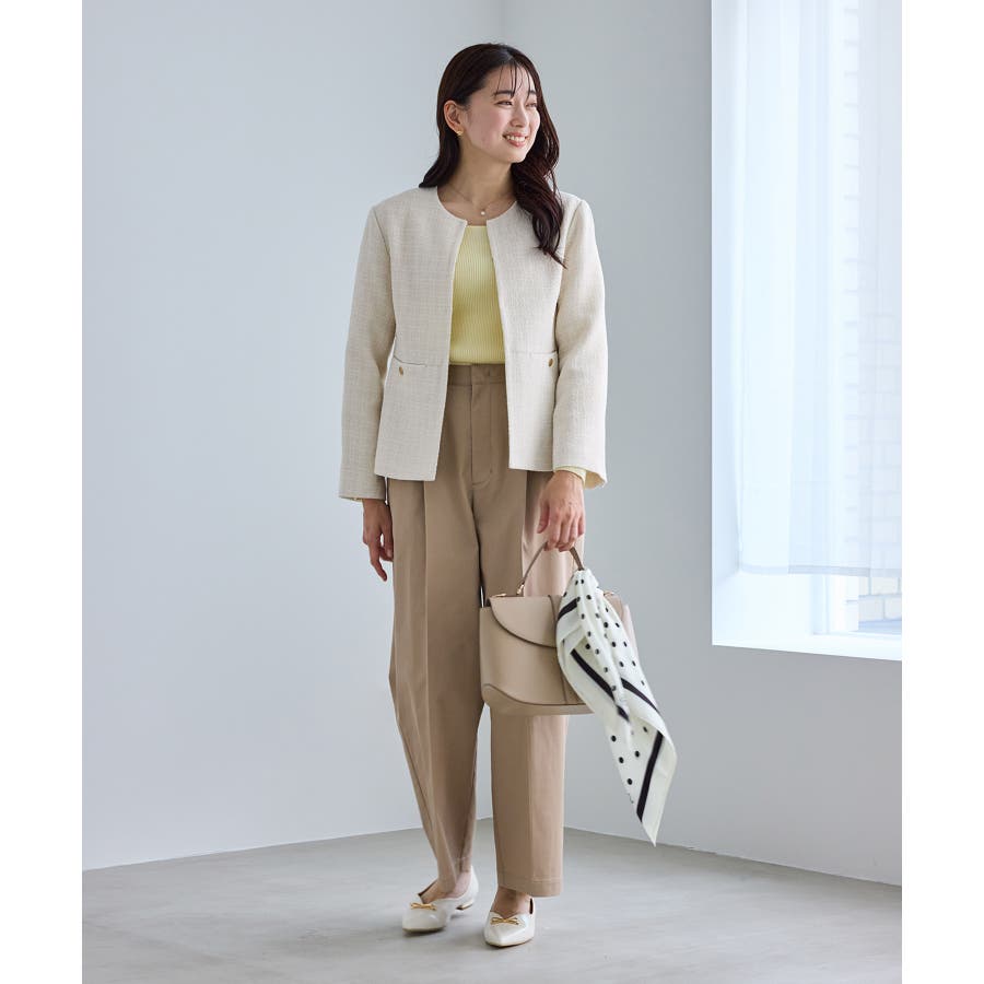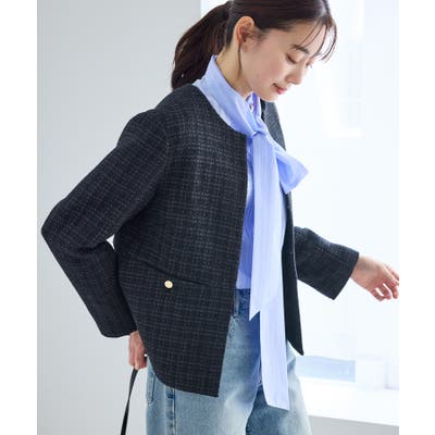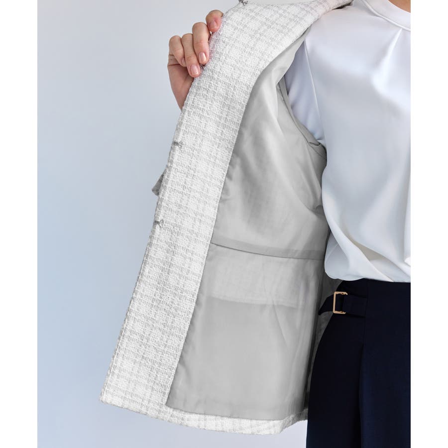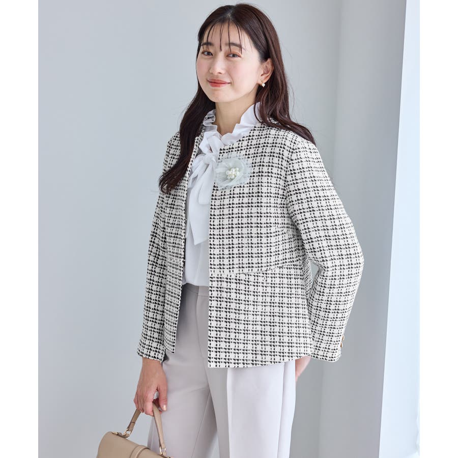 ・エターナルなノーカラーデザインが魅力のツイードジャケット。