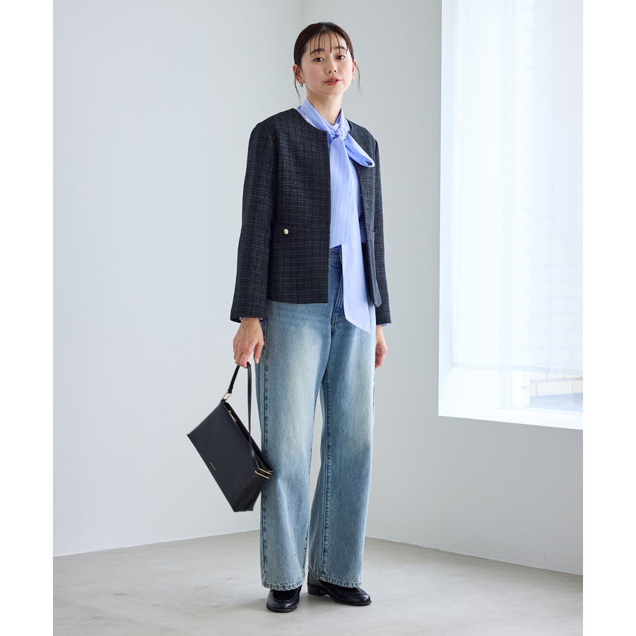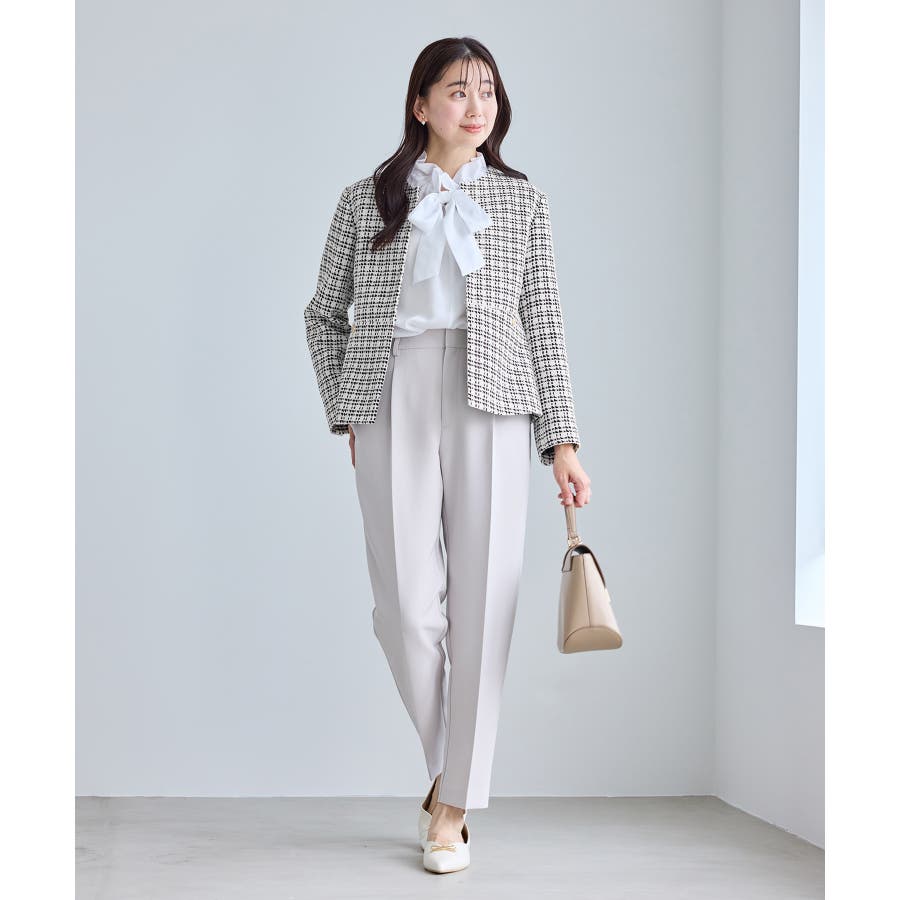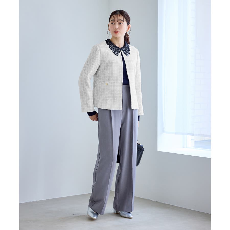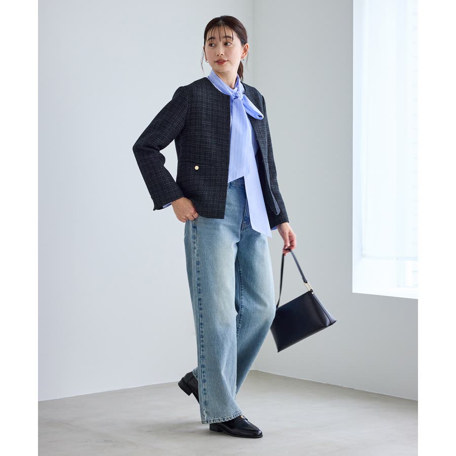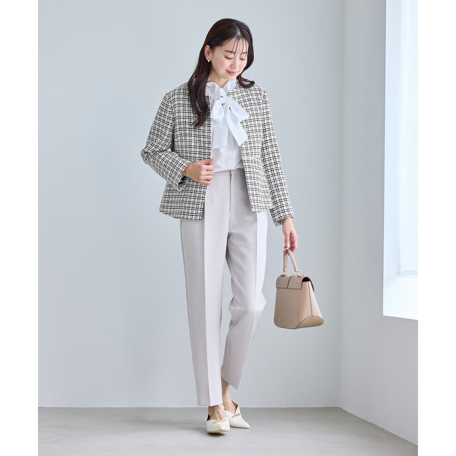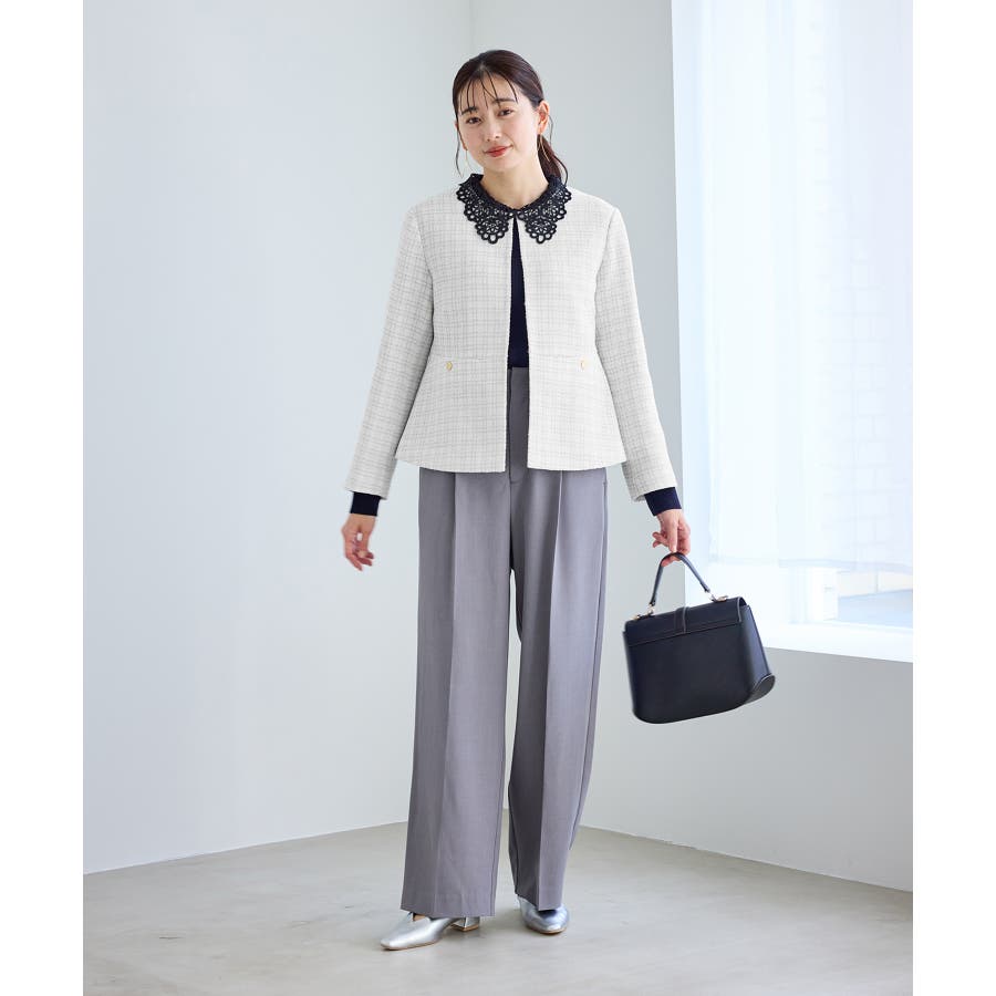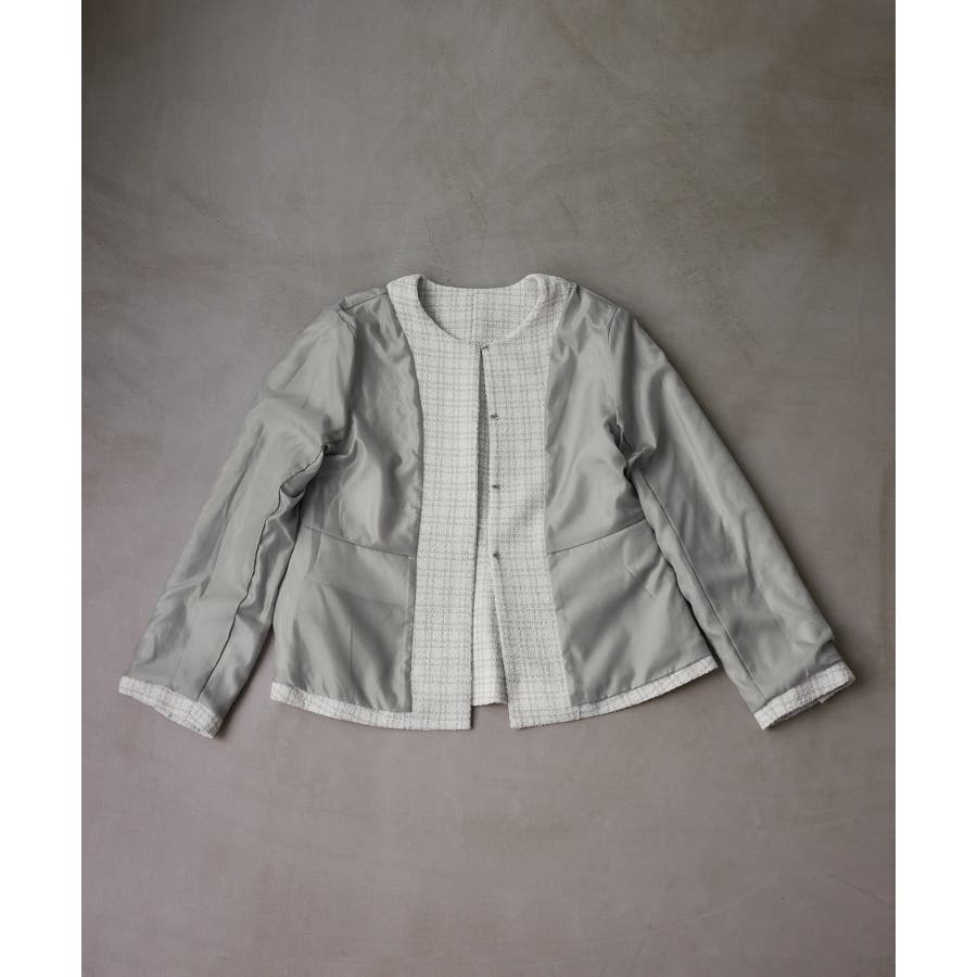 ・エターナルなノーカラーデザインが魅力のツイードジャケット。