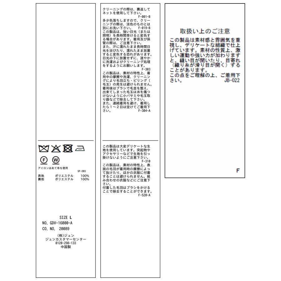 | 素材 | ブラック系(02):(表地)ポリエステル 100% (裏地)ポリエステル 100% |