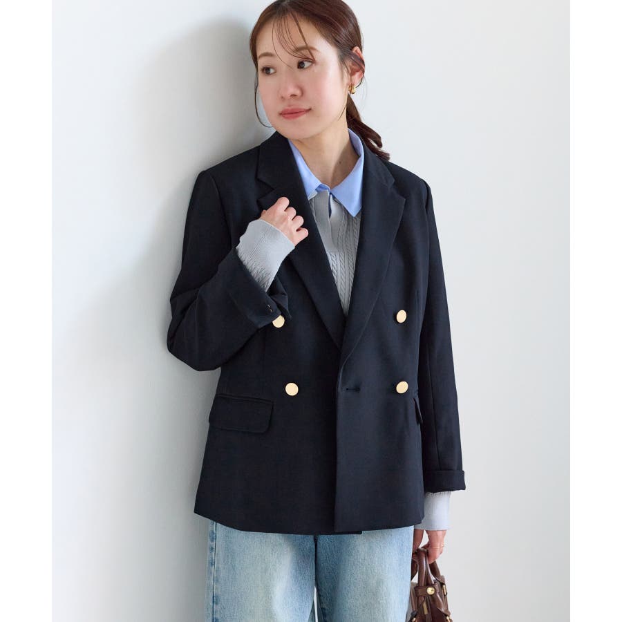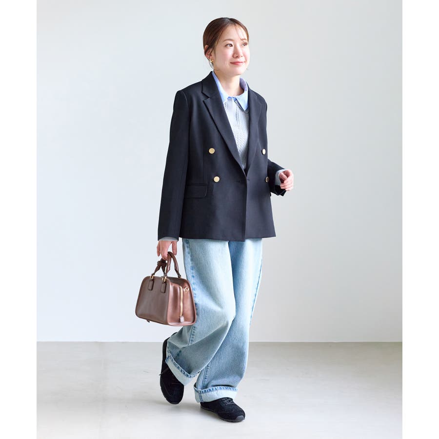・ネイビーカラーはデニムと合わせてカジュアルに仕上げるのもおすすめ。