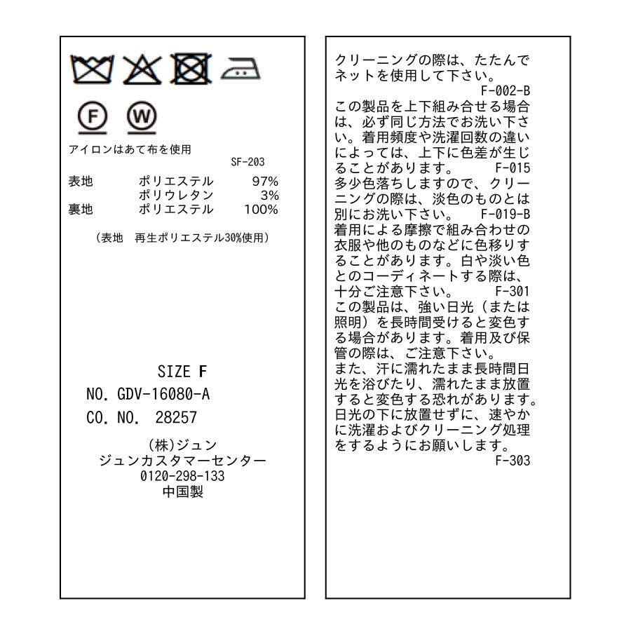 | 素材 | (表地)ポリエステル 97% ポリウレタン 3% (裏地)ポリエステル 100% |