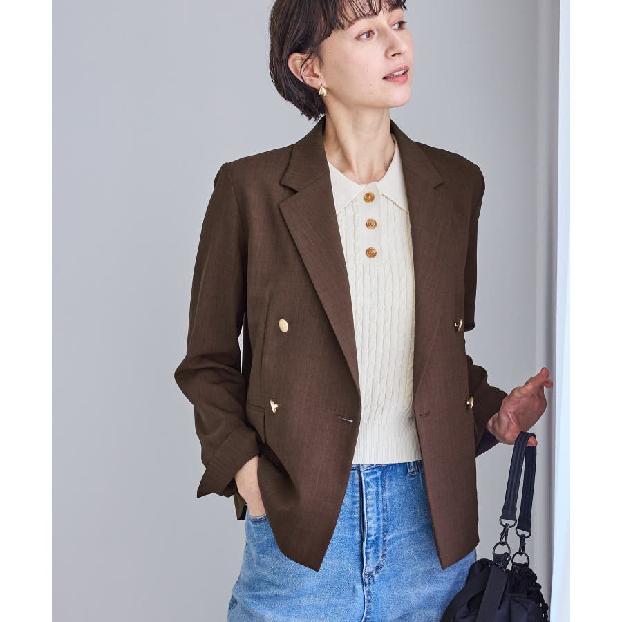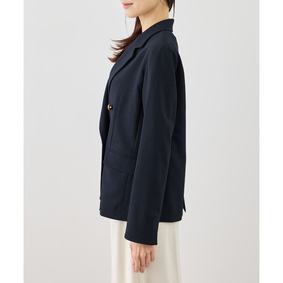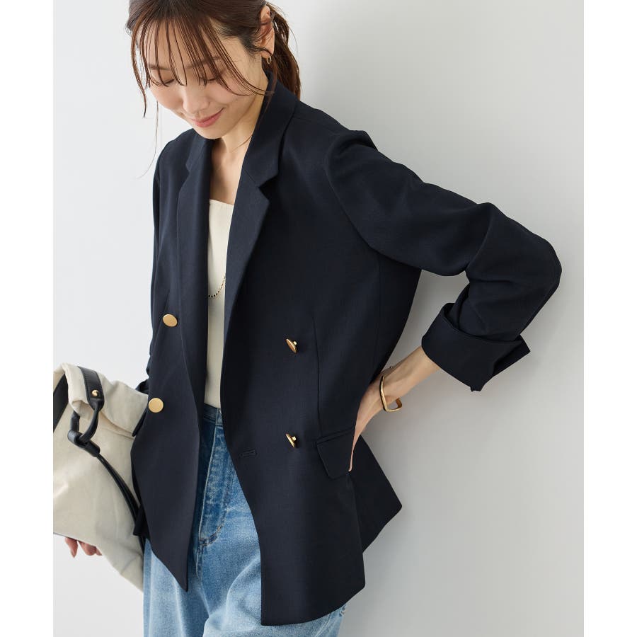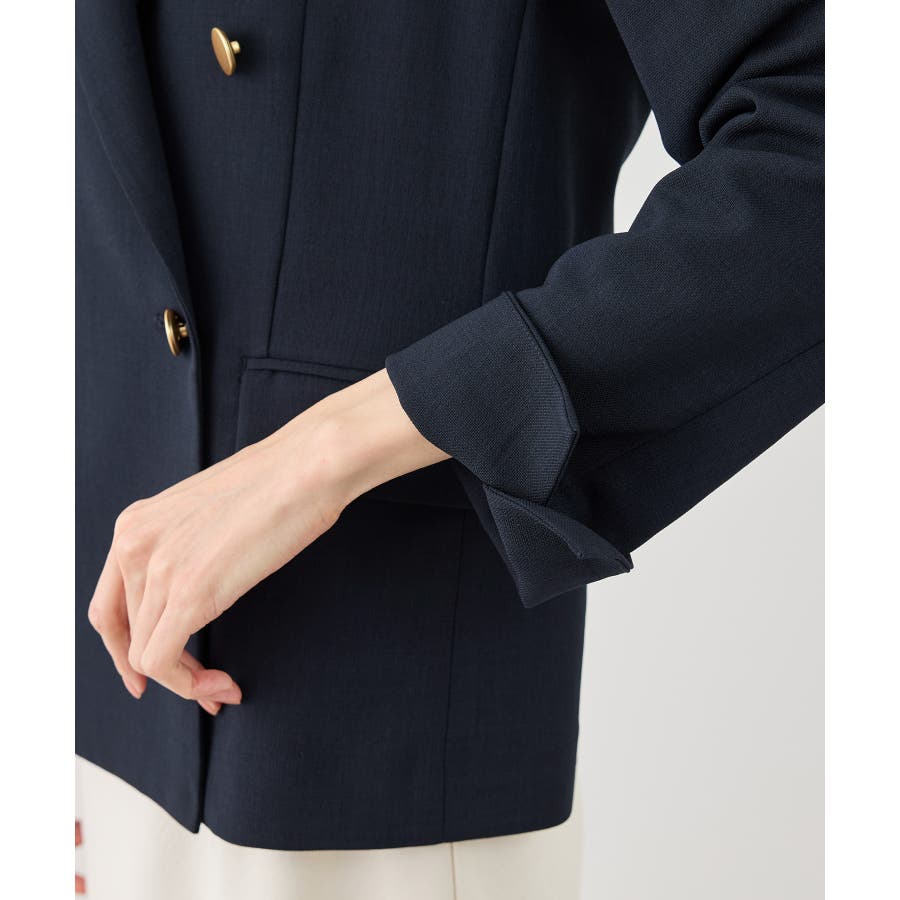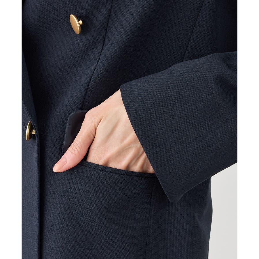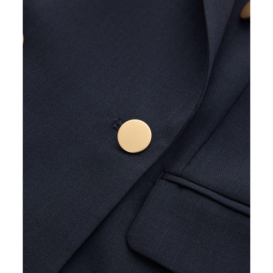 ・高見えメタルボタン:ゴールドのメタルボタンがリッチなアクセントになり、お仕事シーンでも品よく決まる。