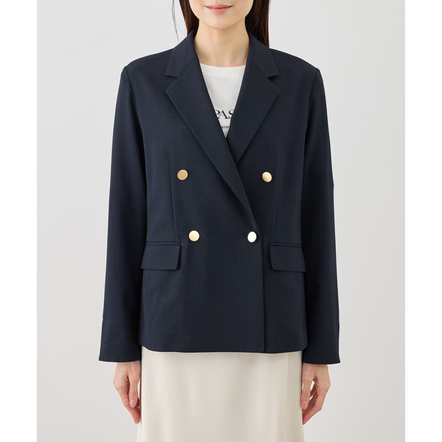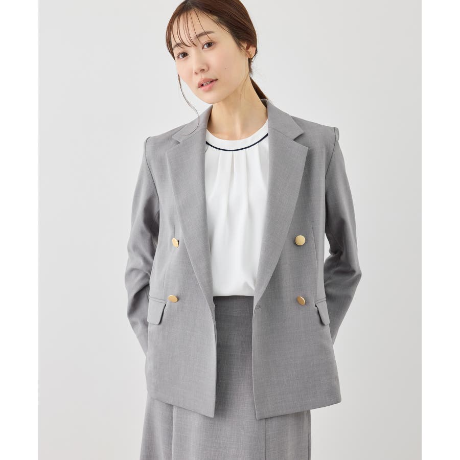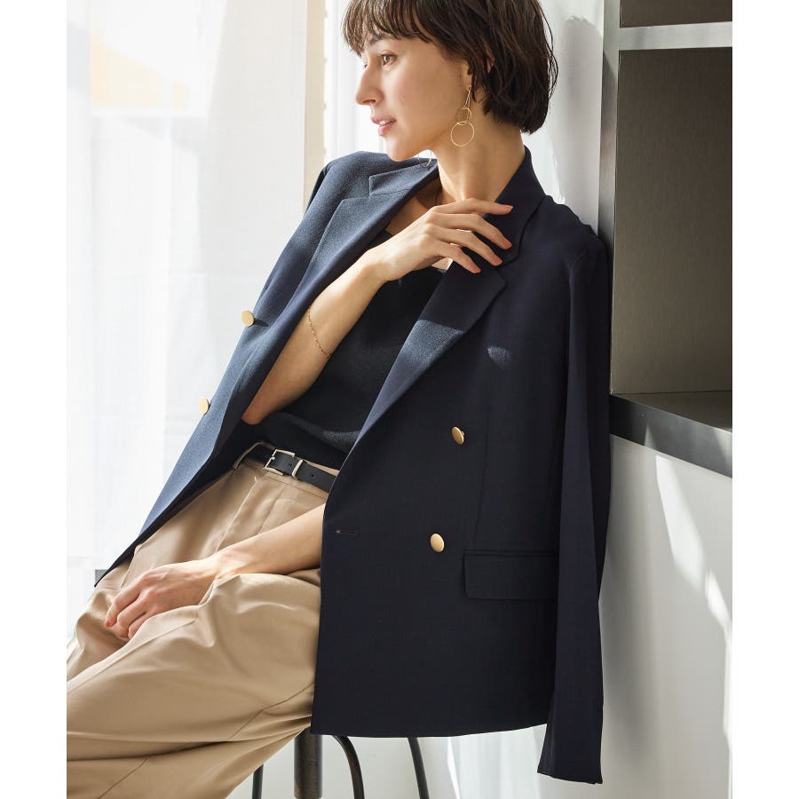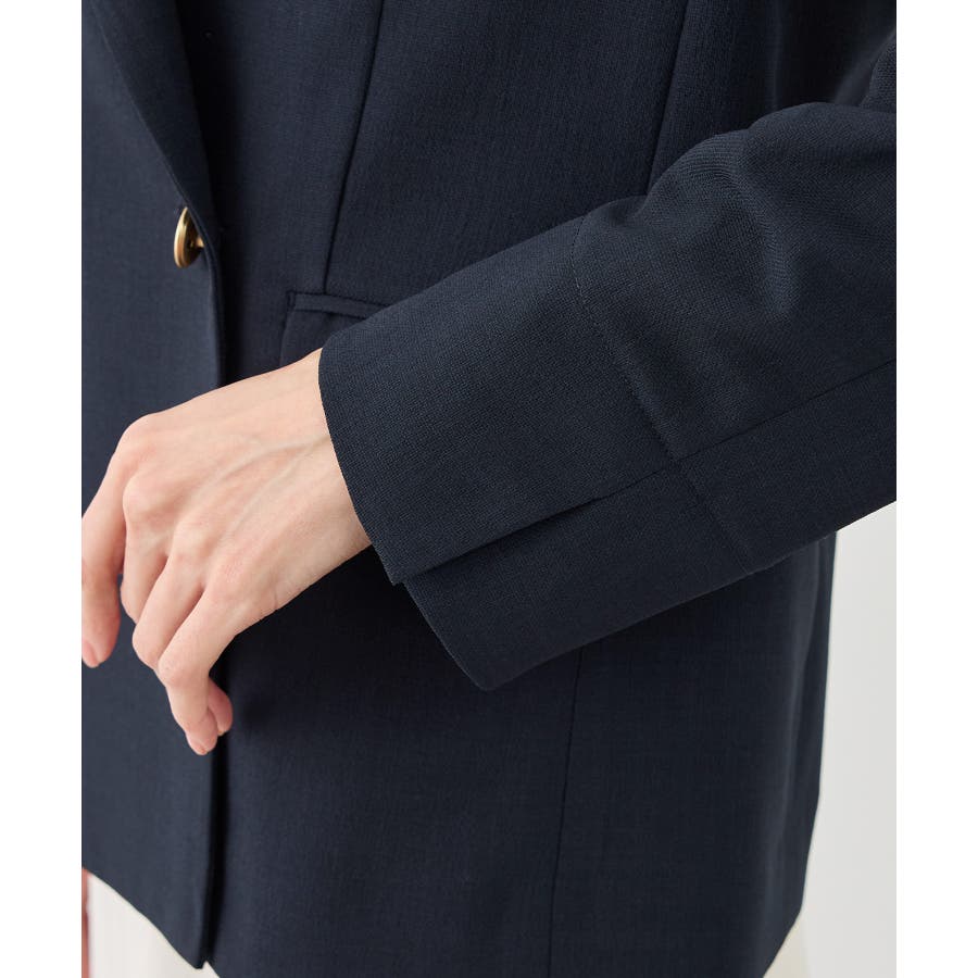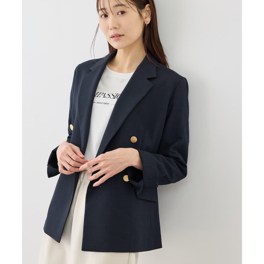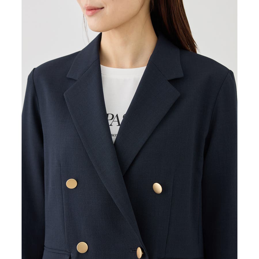 ・高見えメタルボタン:ゴールドのメタルボタンがリッチなアクセントになり、お仕事シーンでも品よく決まる。