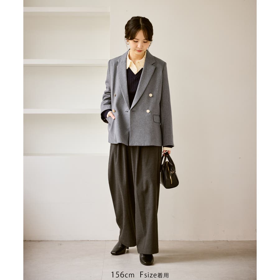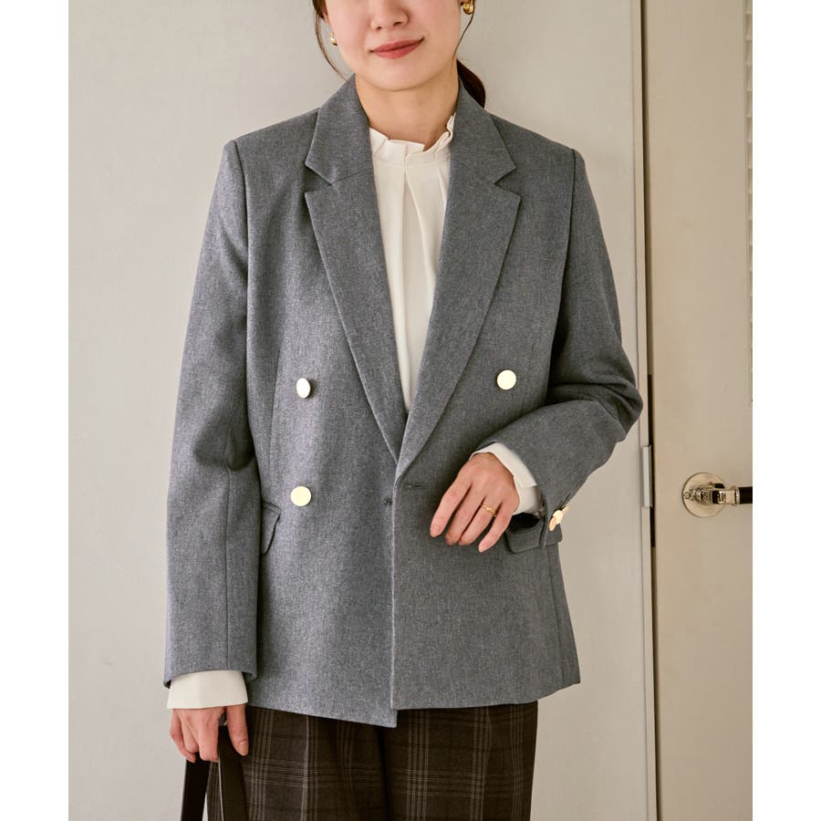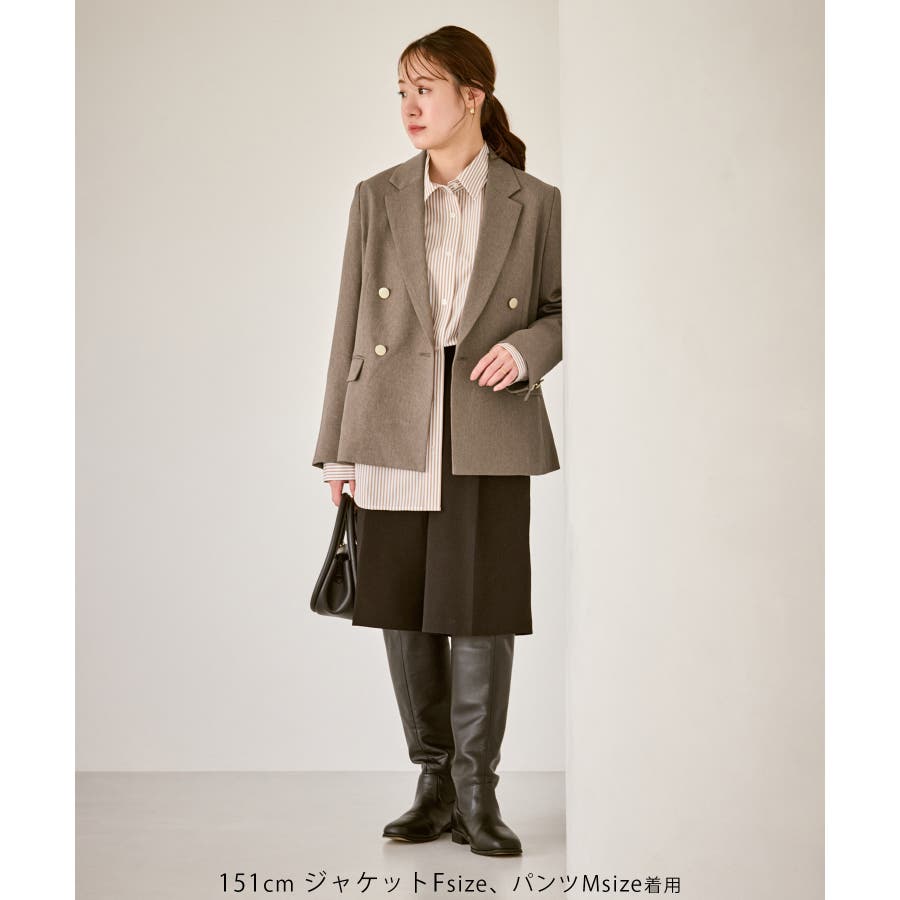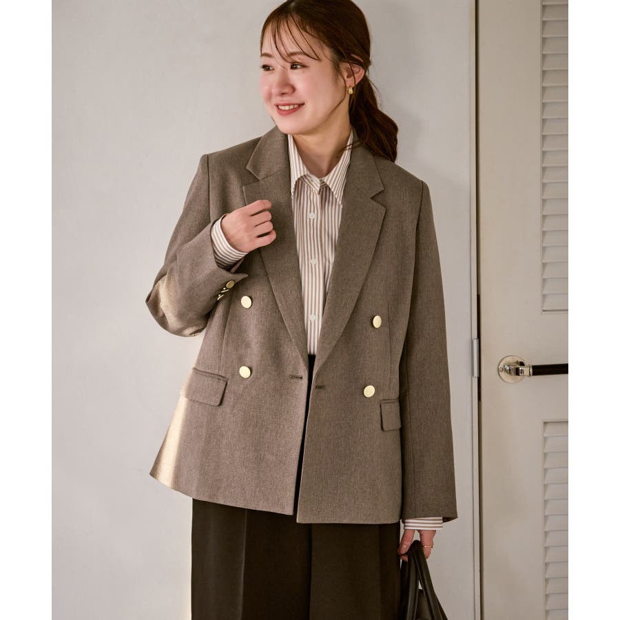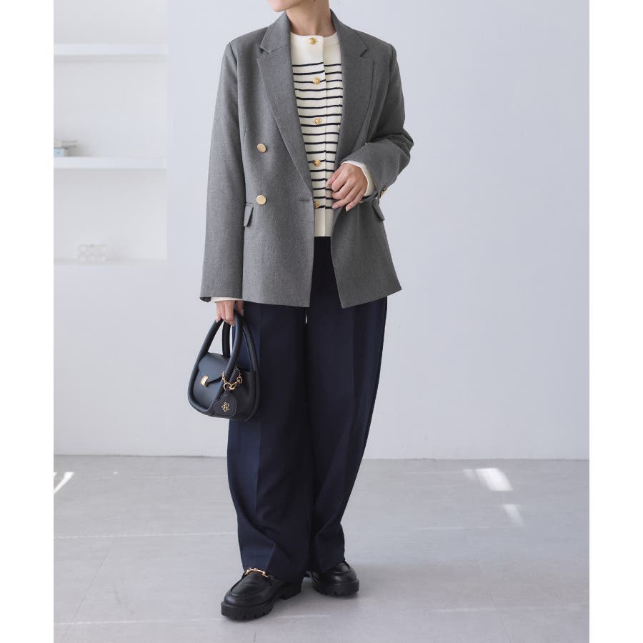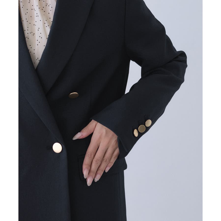 ・ダブルブレスト仕様でシルエットが引き締まり、マニッシュな雰囲気を演出。