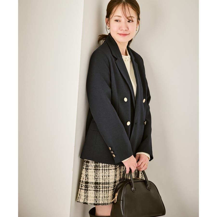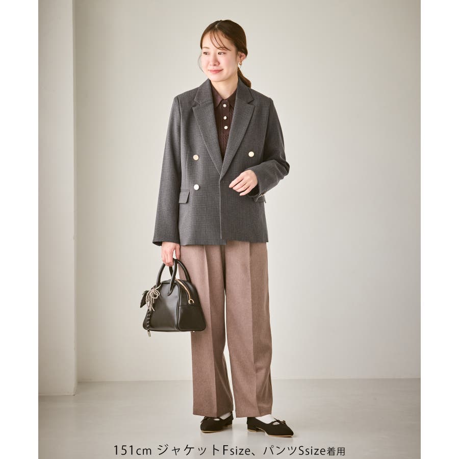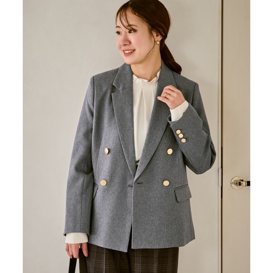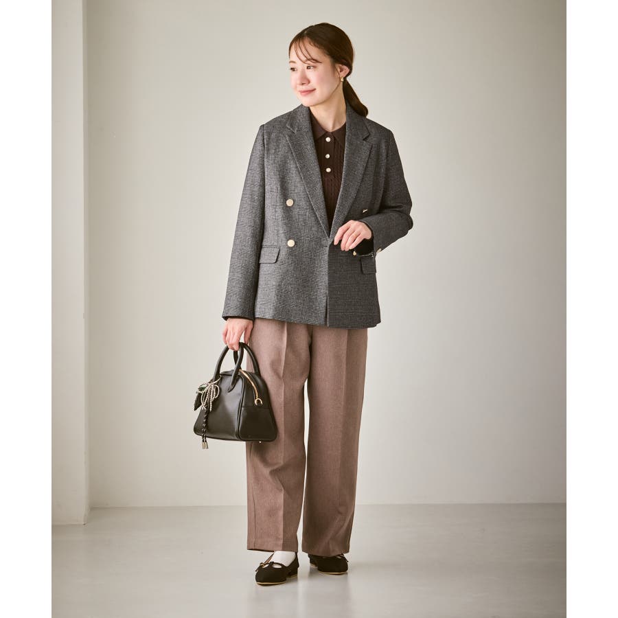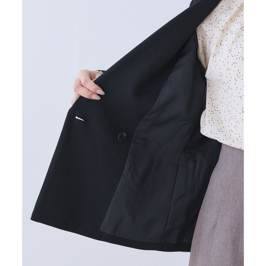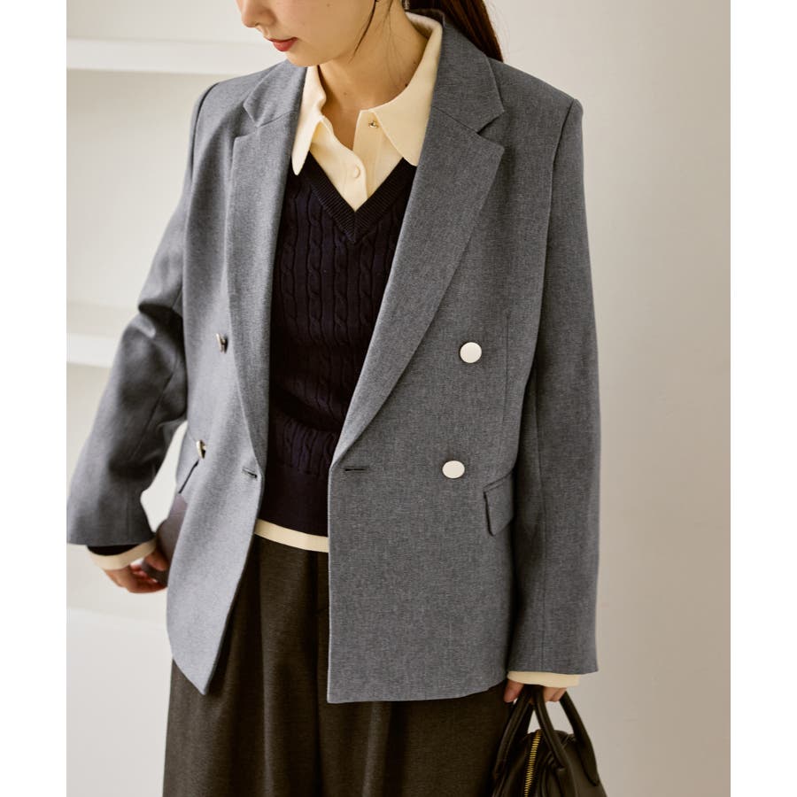 ・ダブルブレスト仕様でシルエットが引き締まり、マニッシュな雰囲気を演出。