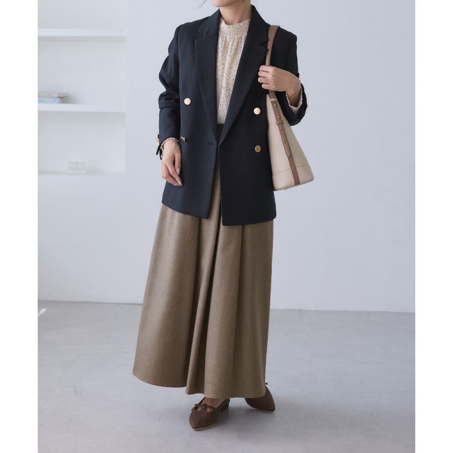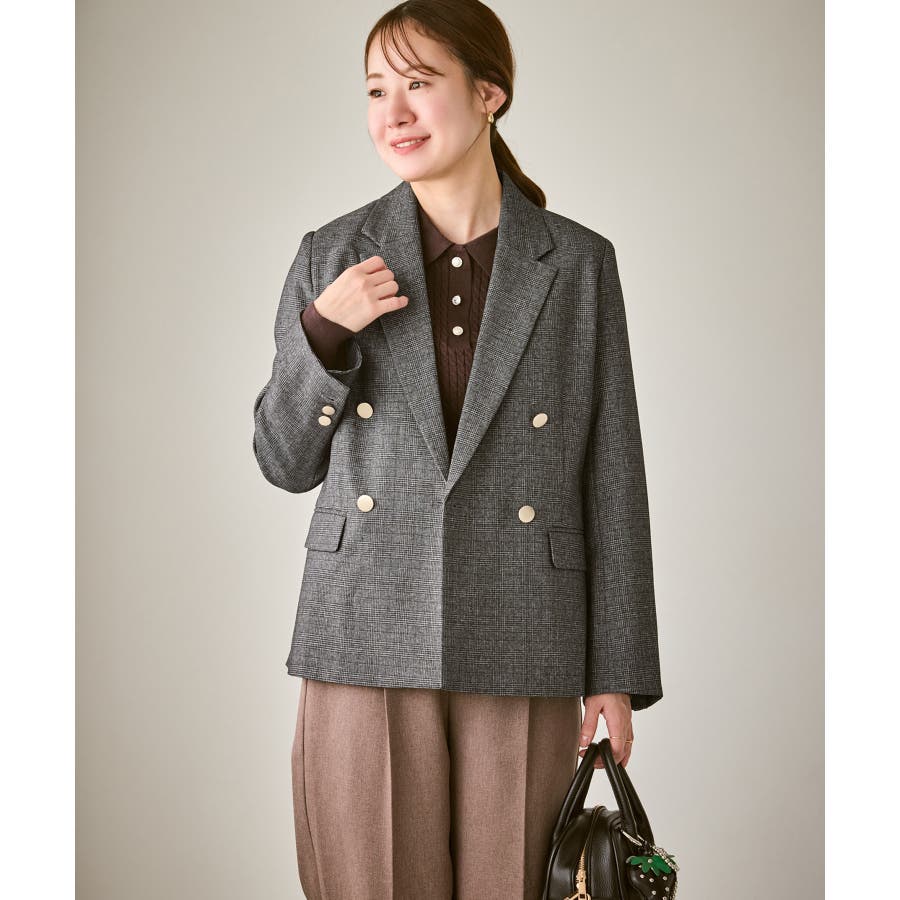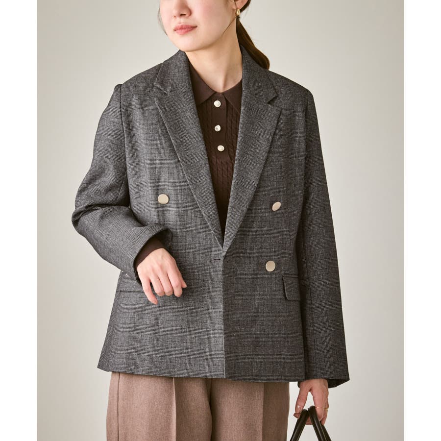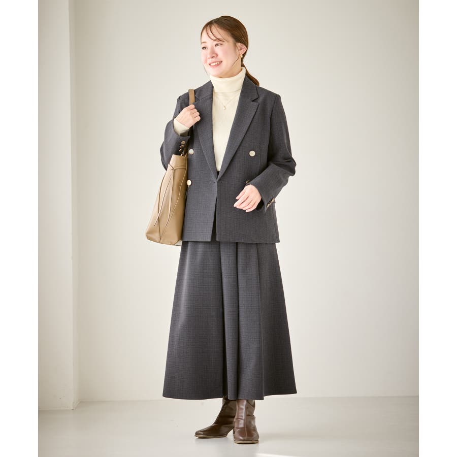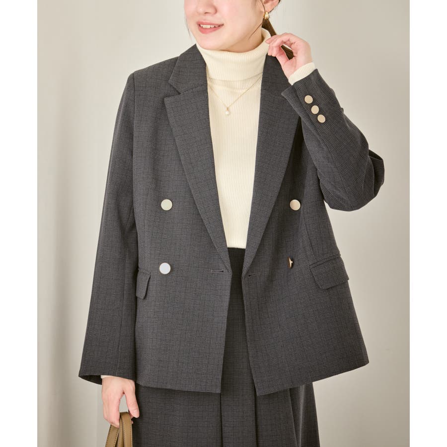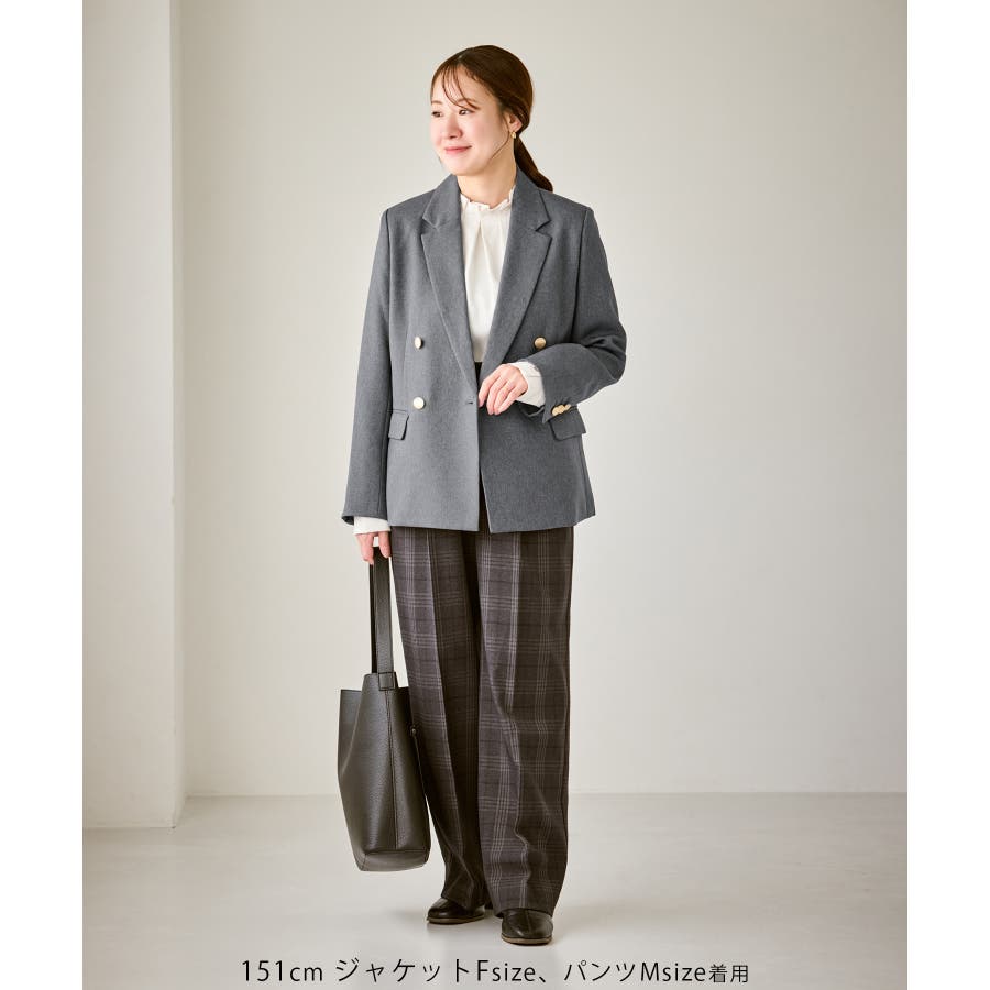 ・ダブルブレスト仕様でシルエットが引き締まり、マニッシュな雰囲気を演出。