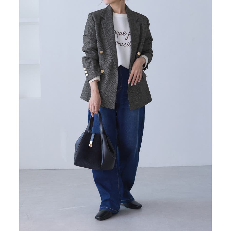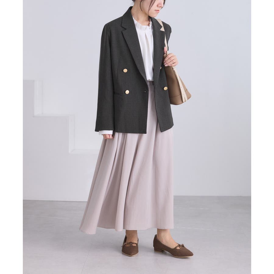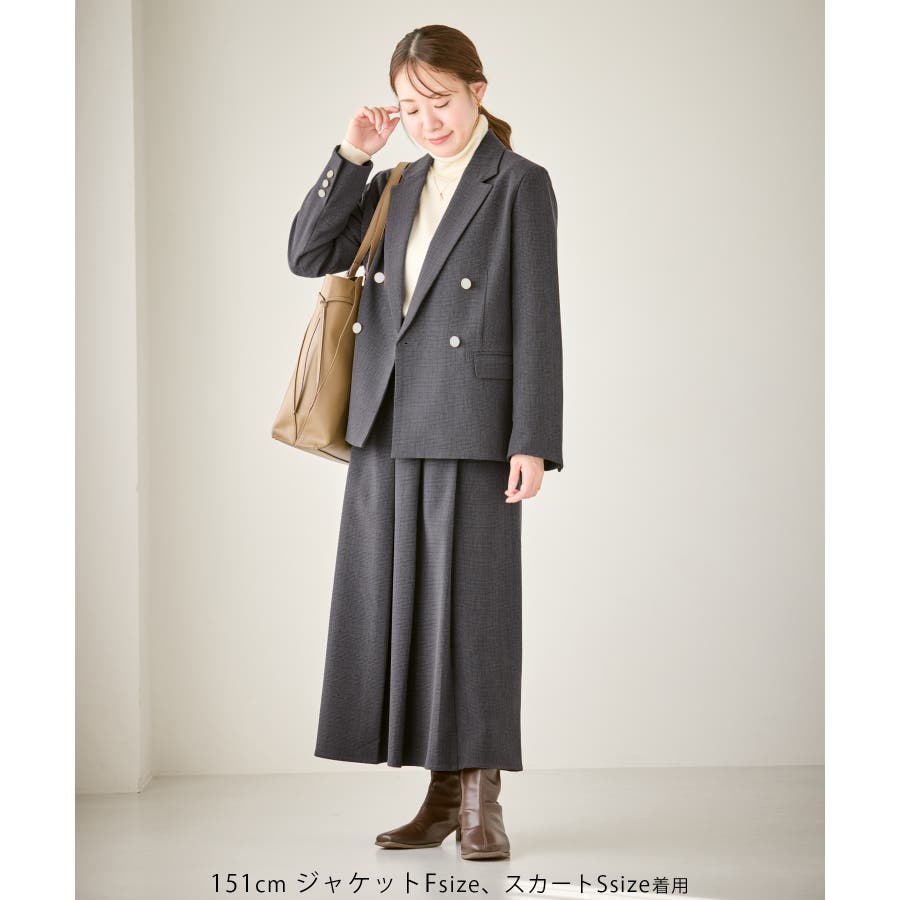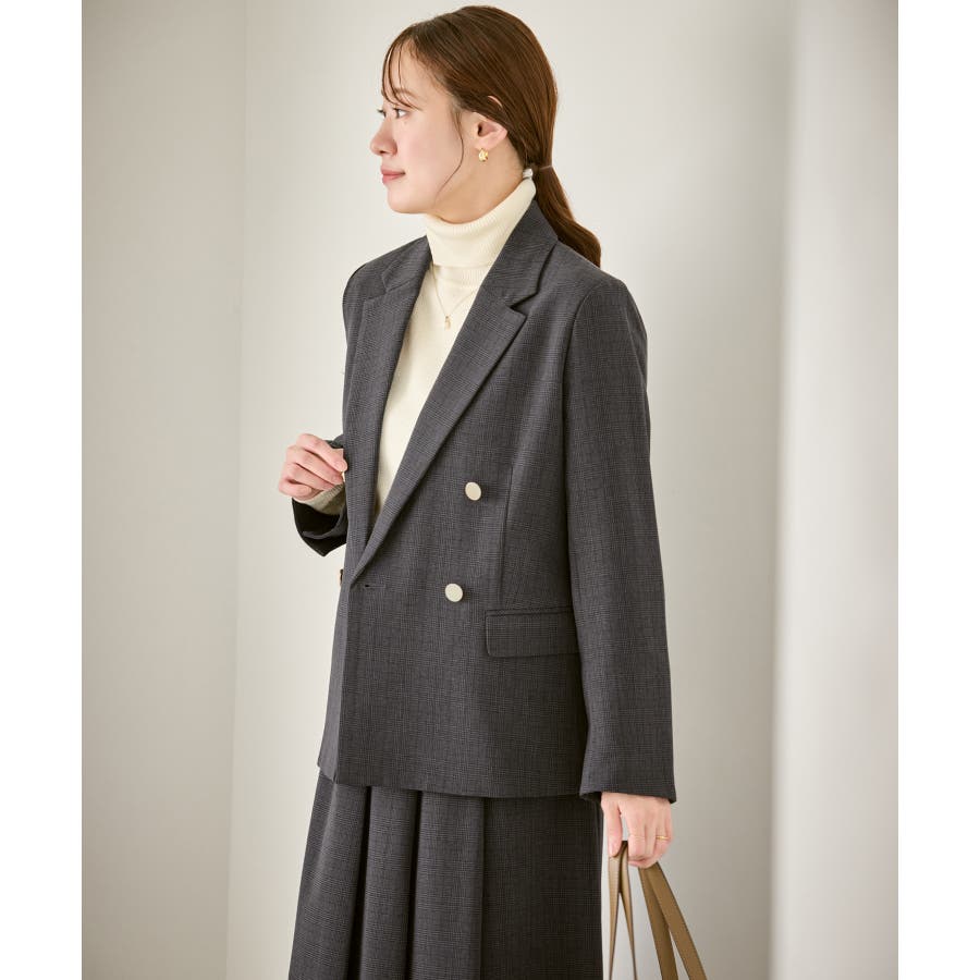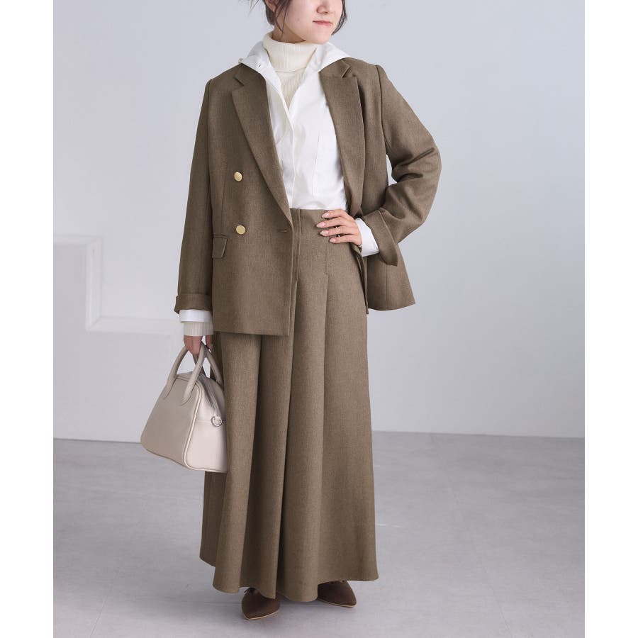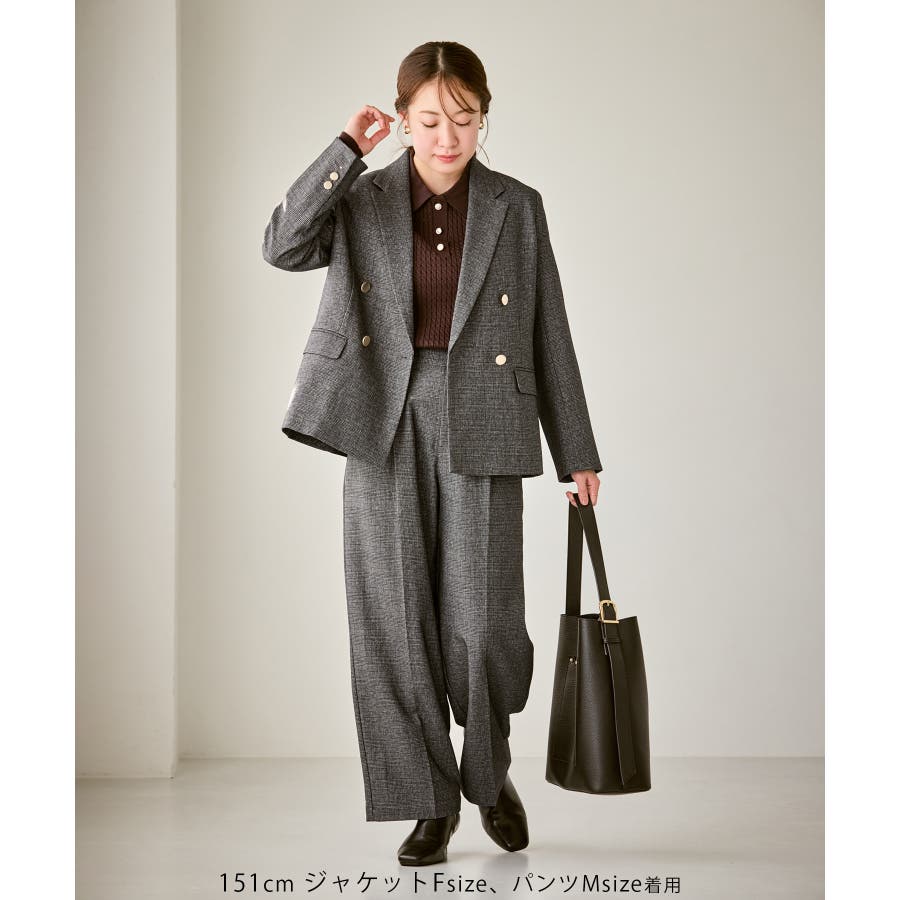 ・ダブルブレスト仕様でシルエットが引き締まり、マニッシュな雰囲気を演出。