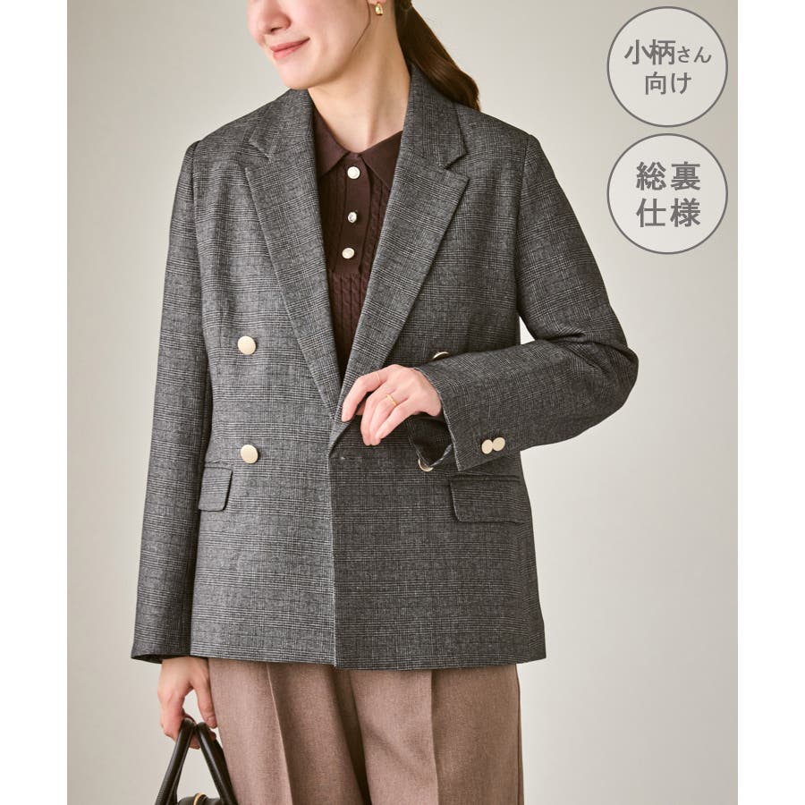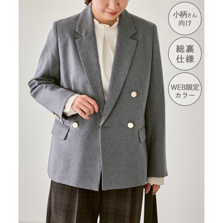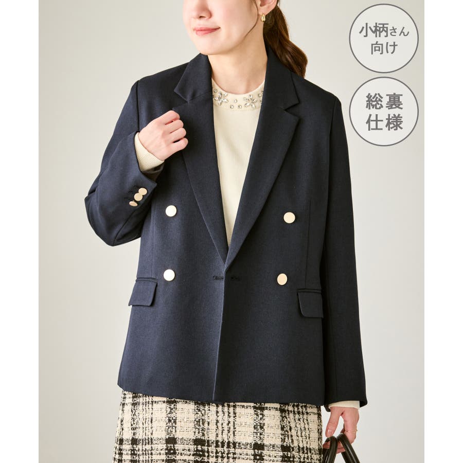 【低身長 小柄さんサイズ】レディハンサムシリーズ ウールライク金ボタンジャケット…