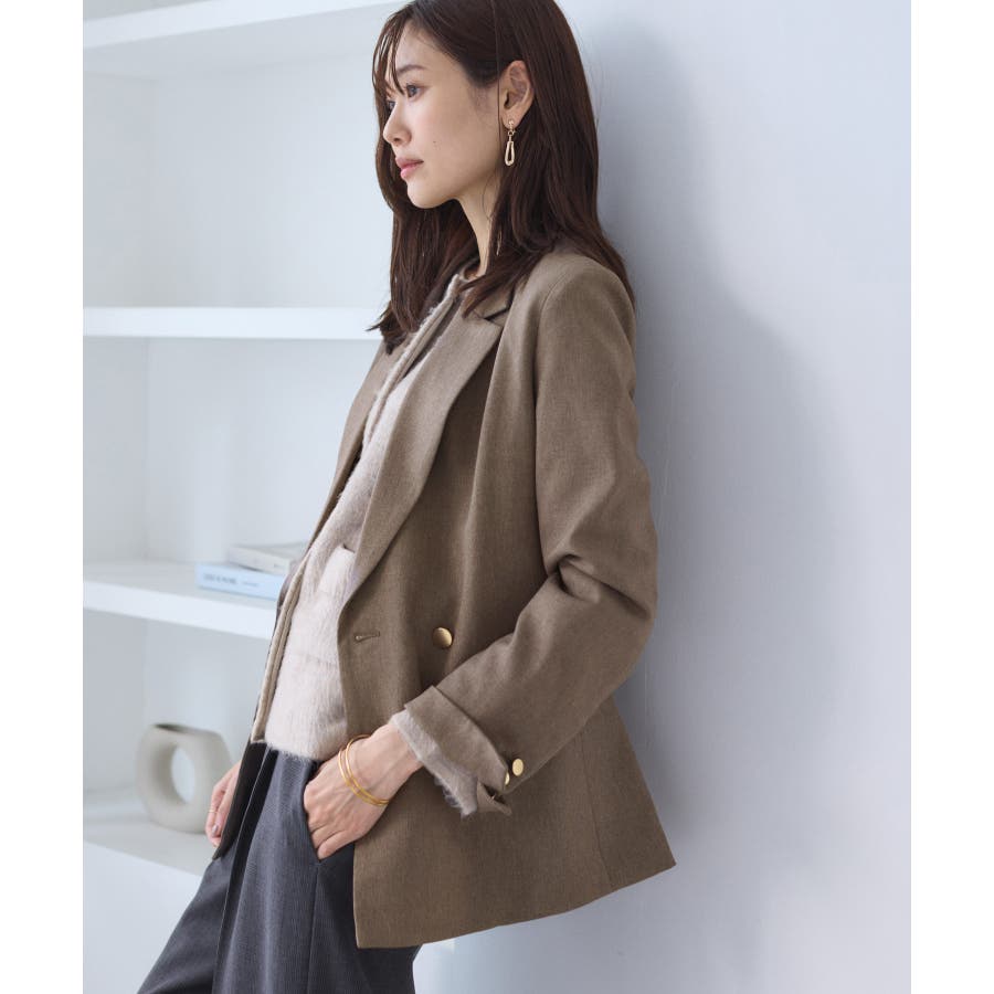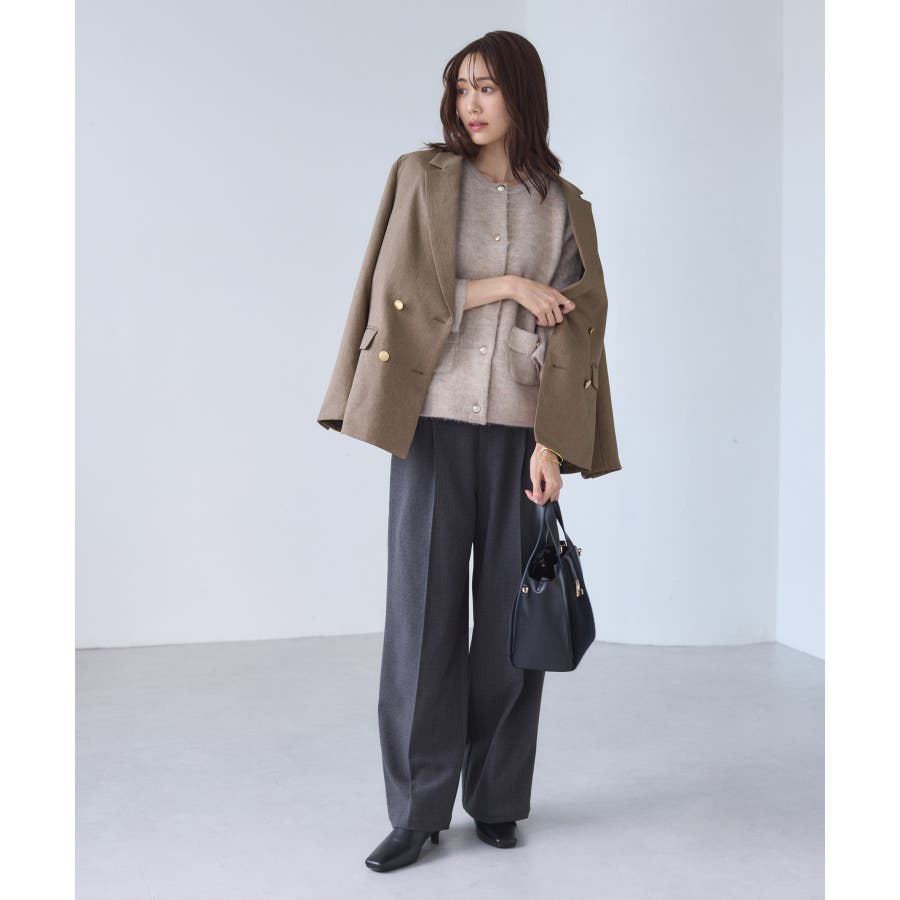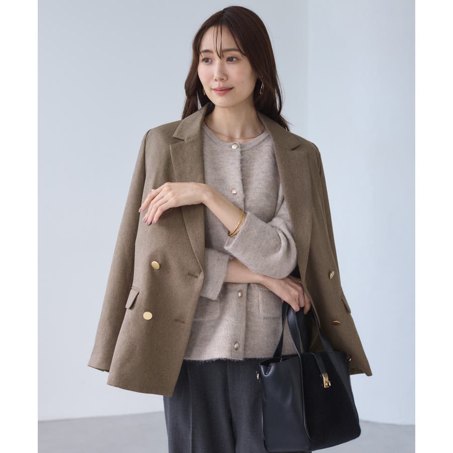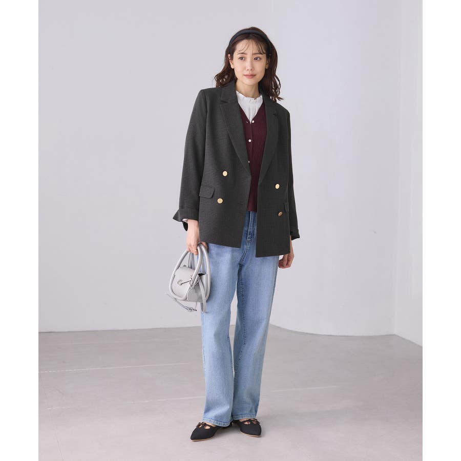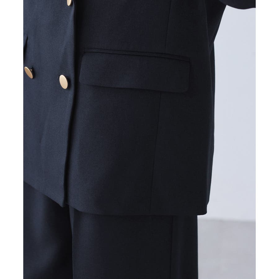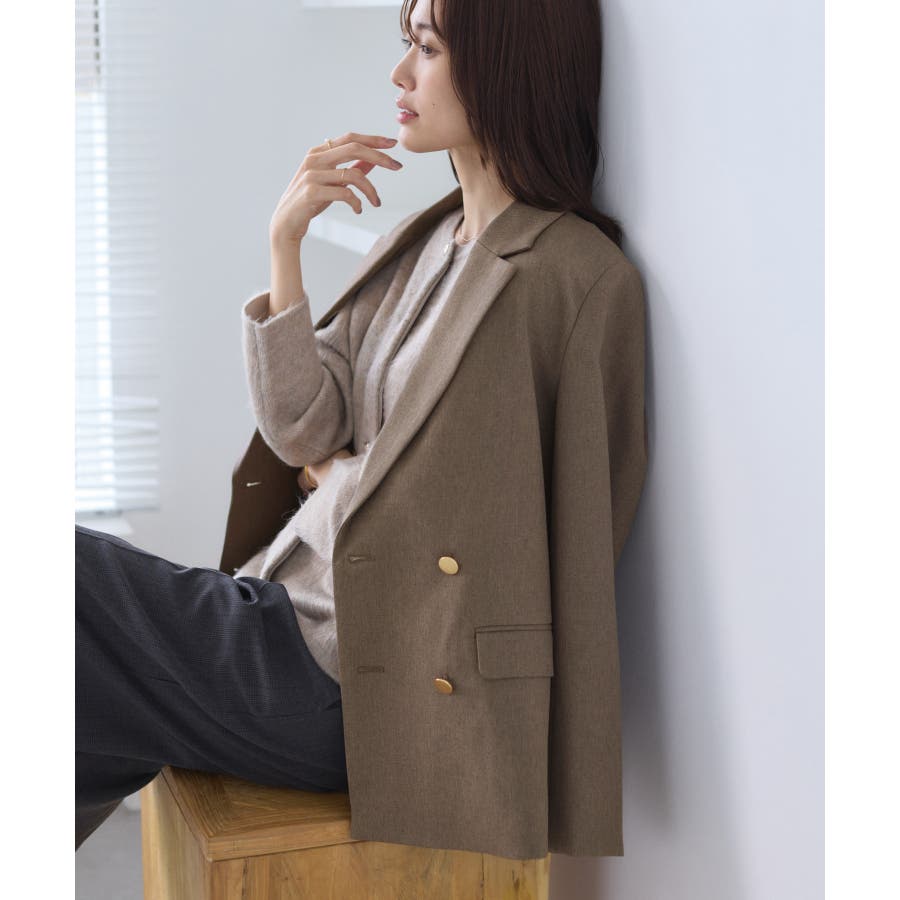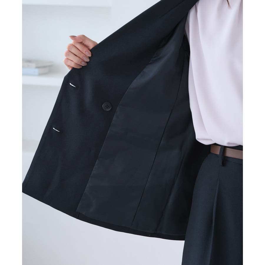 ・ダブルブレスト仕様でシルエットが引き締まり、マニッシュな雰囲気を演出。