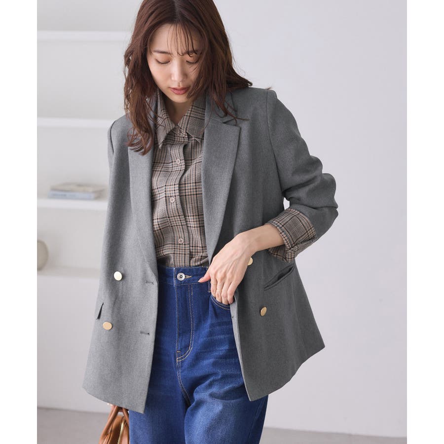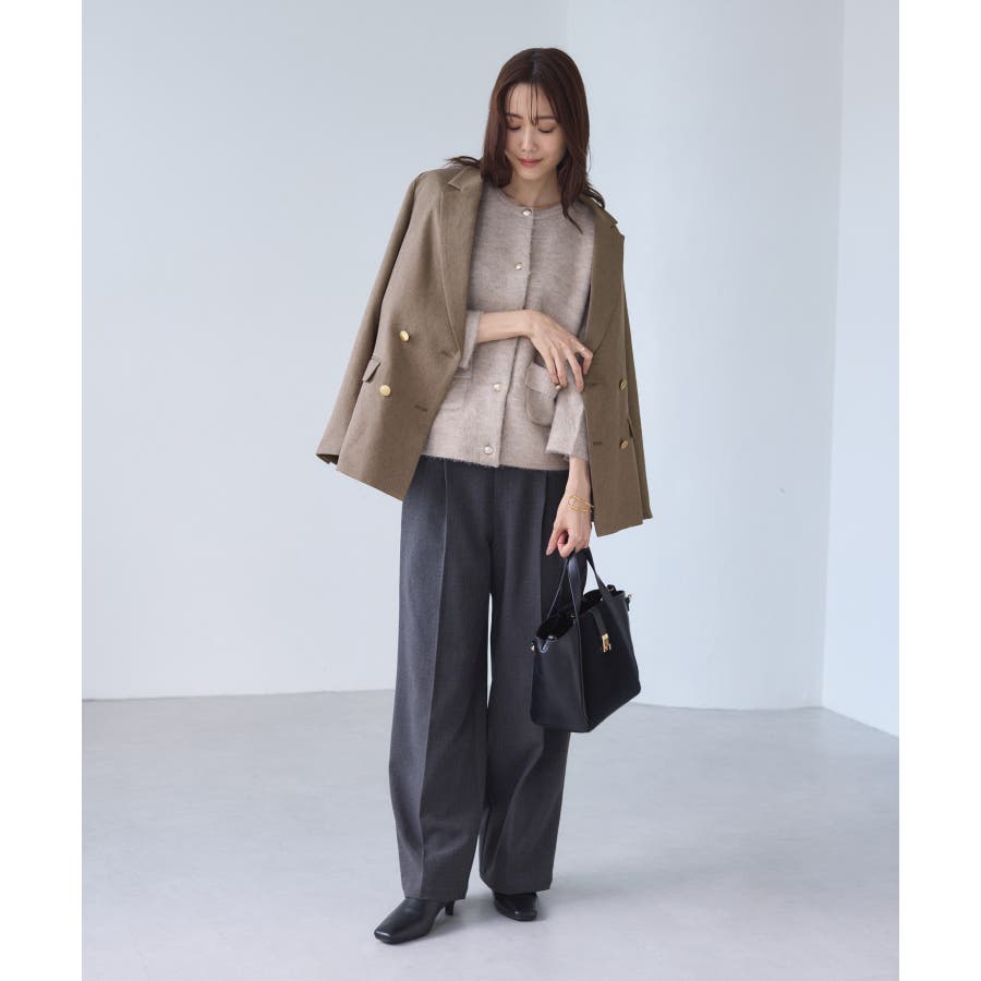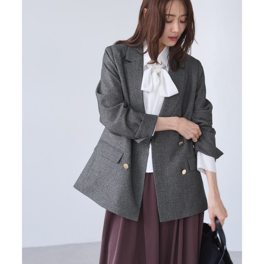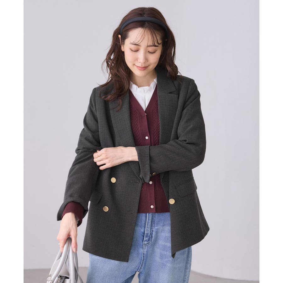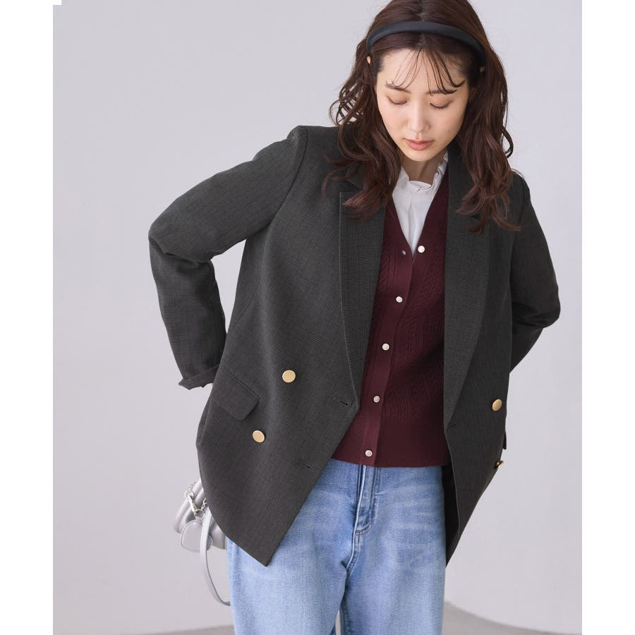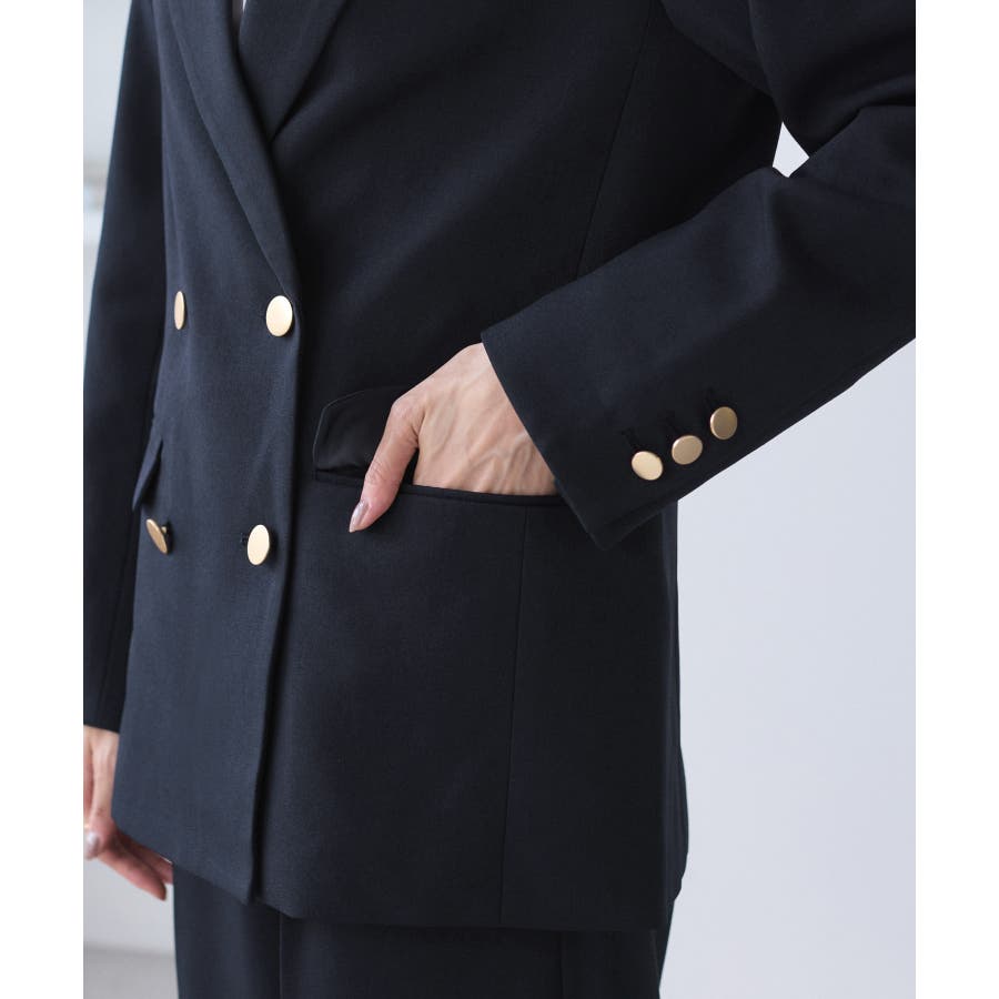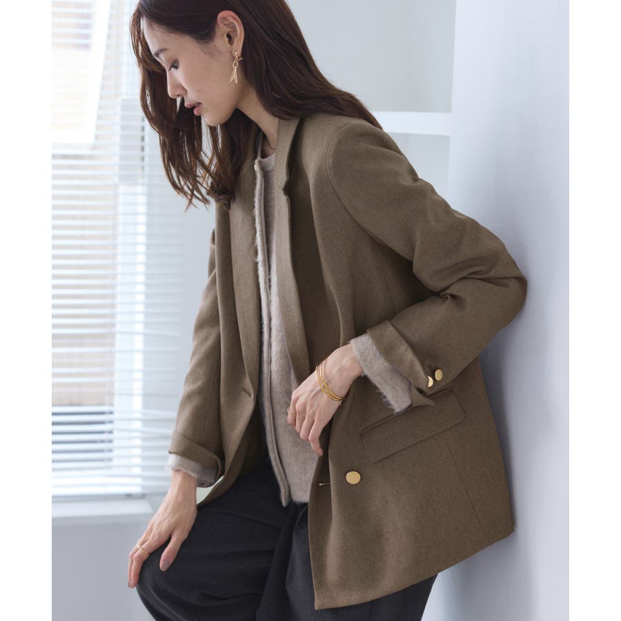 ・ダブルブレスト仕様でシルエットが引き締まり、マニッシュな雰囲気を演出。