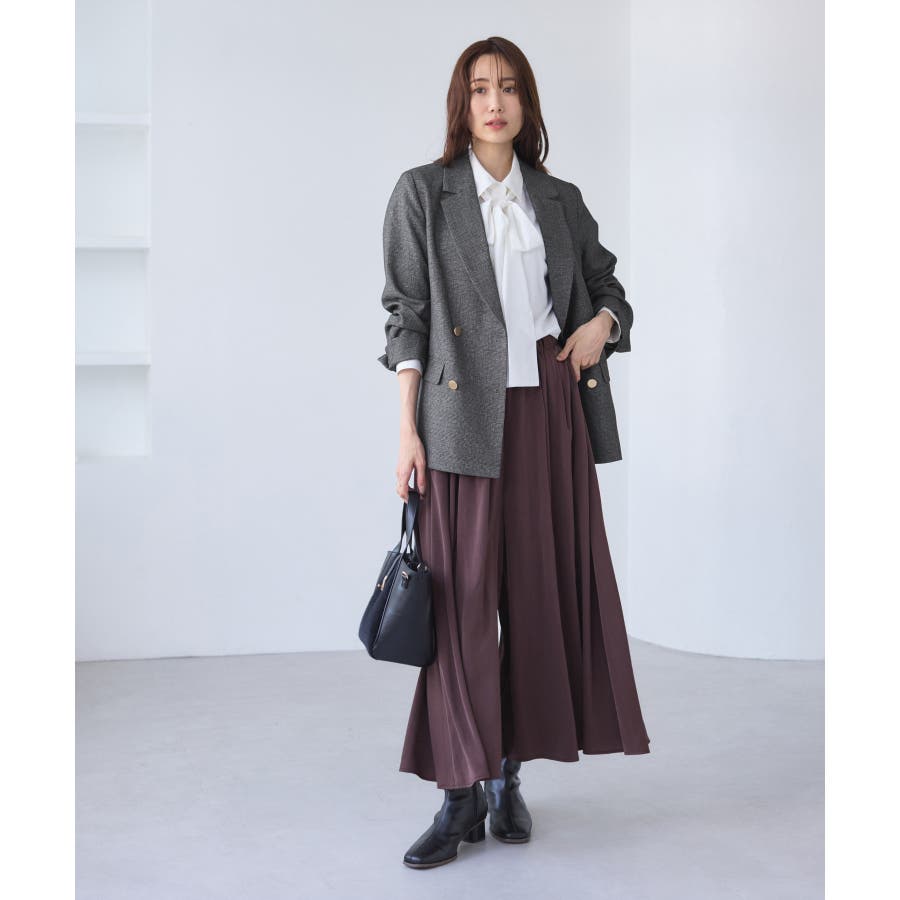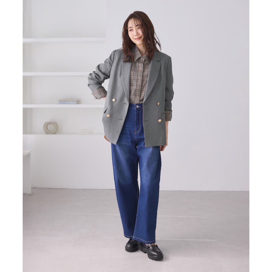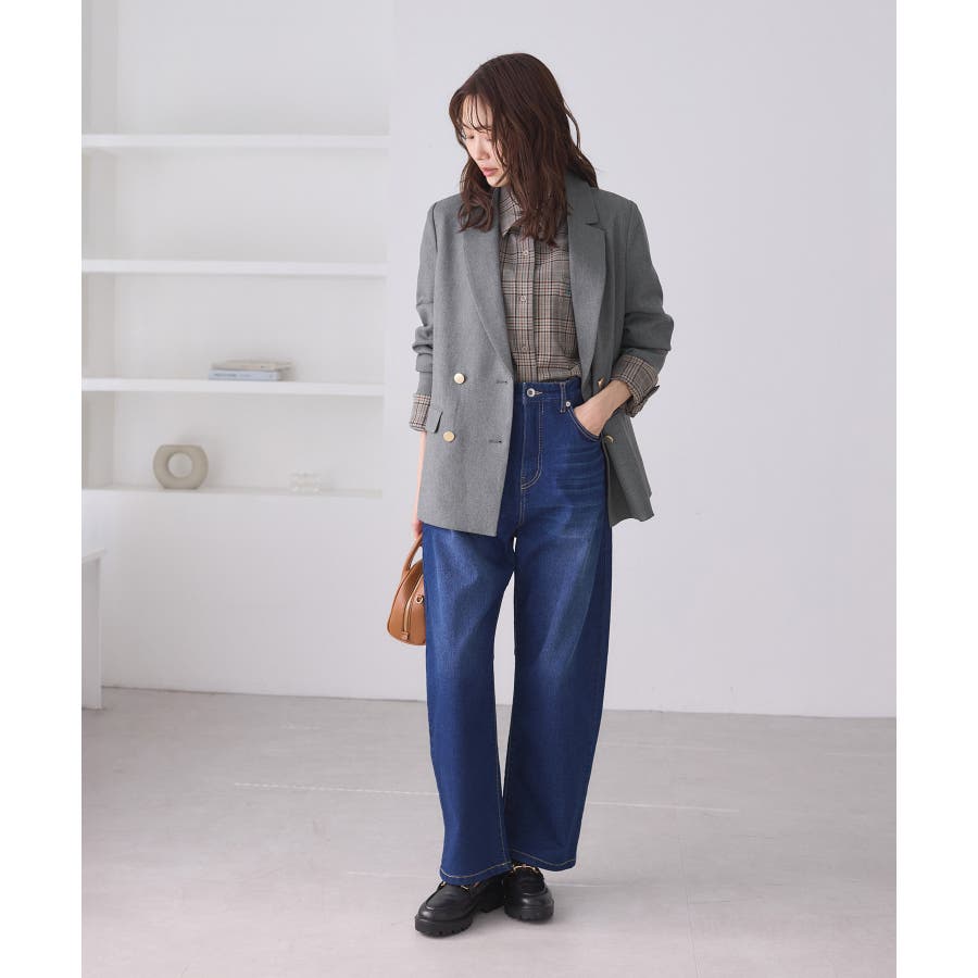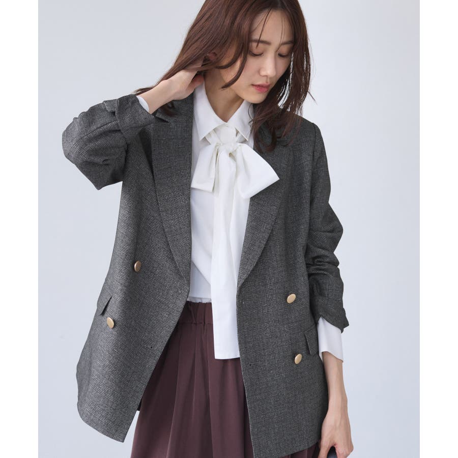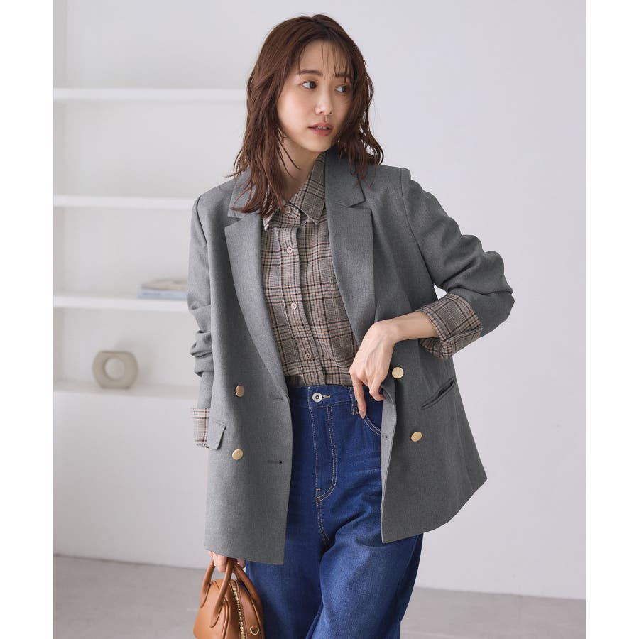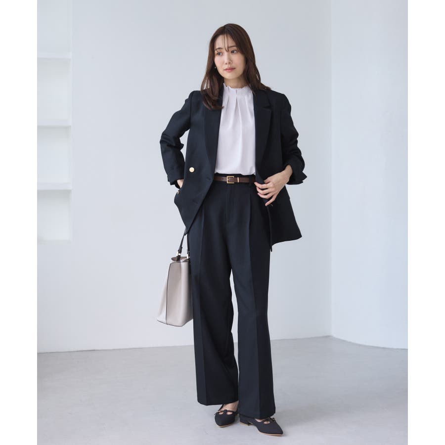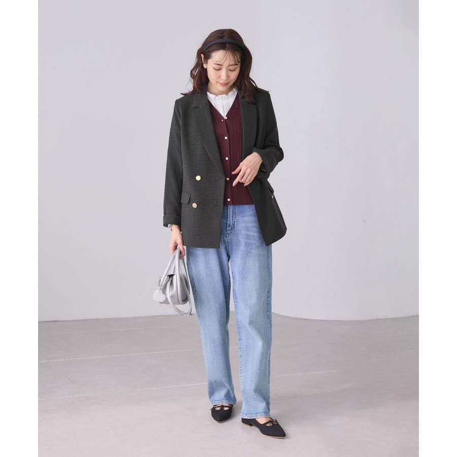 ・ダブルブレスト仕様でシルエットが引き締まり、マニッシュな雰囲気を演出。