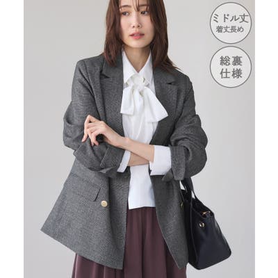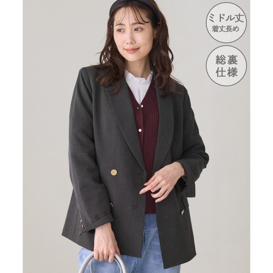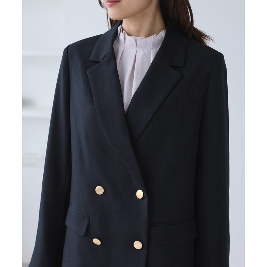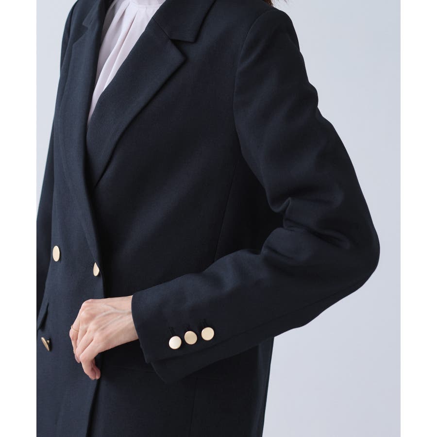【WEB限定】レディハンサムシリーズ ウールライク金ボタンミドル丈ジャケット(総…