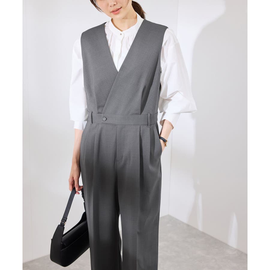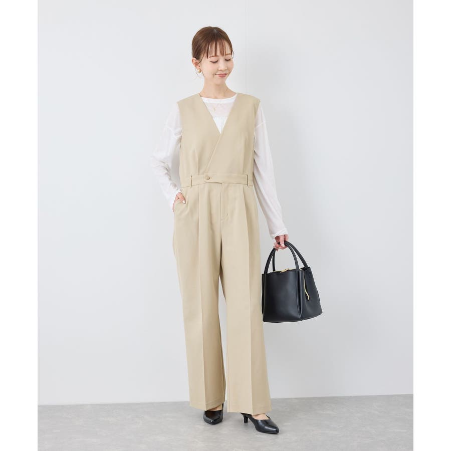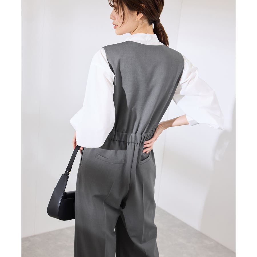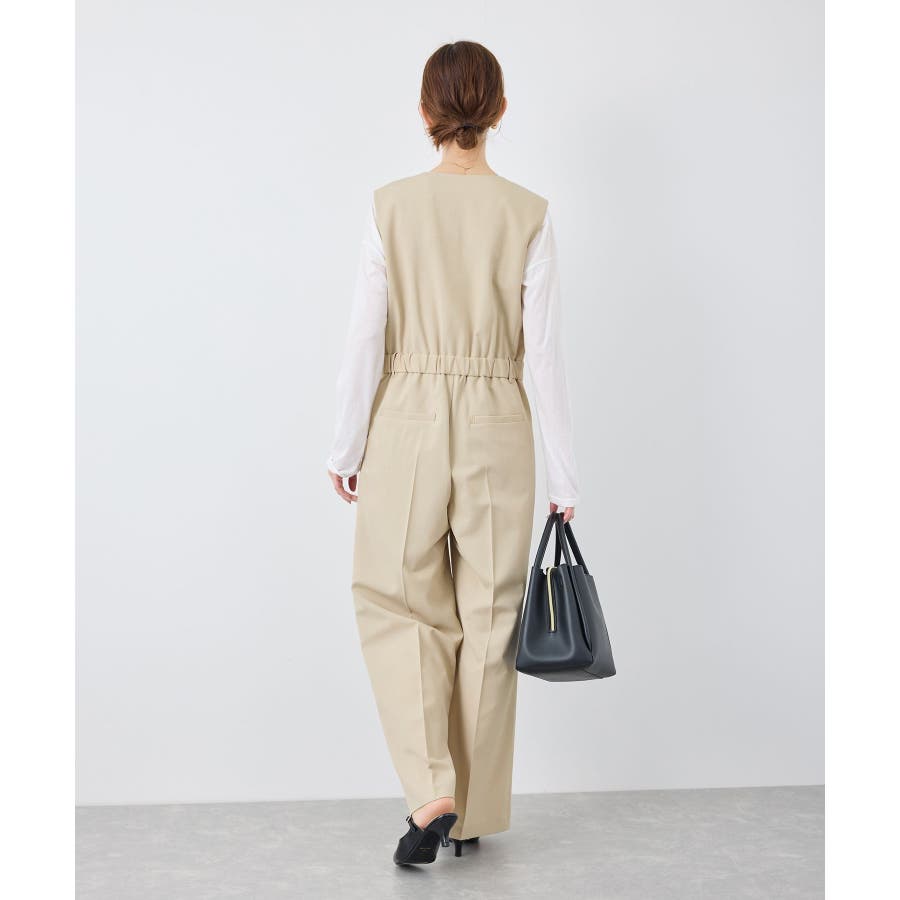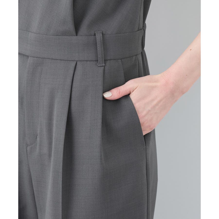 【素材感】 ・UVカット(紫外線遮蔽率90%以上)素材。 ・ひんやりとした涼しい着心地の接触冷感。 ・シワになりにくく、洗濯後のお手入れがしやすいイージーケア。 【デザイン・シルエット】 ・ベルトラインの切り替え入りで、セパレート風デザインのスリーブレスオールインワン。 ・パンツラインはややワイドで、センタークリース入りのマスキュリンなデザイン。 ・トップはフロントが併せデザインになっているのが特徴。 ・接触冷感性、防シワ性に優れた機能性の高い一着。 ・ウォッシャブル対応。 【カラー】 ・チャコールグレー、ベージュの落ち着いた2色展開。 【スタイリングポイント】 ・春先はインにタートルネックシャツやボーダーシャツなどを併せて。 ・暑い時期には、キャミソールやタンクトップでシンプルに着こなして。 ・足元はパンプスならきれいめに、スニーカーでカジュアルダウンもOK。 ----------------------------- 裏地:あり 透け感:なし 伸縮性:なし 生地感・厚さ:普通 ウエスト:後ろゴム ポケット:あり 季節:春・夏・秋 ----------------------------- ※撮影時の光、お使いのモニター環境によって色の見え方が違う場合がございます。 ※モデル身長:165cm 着用サイズ:38