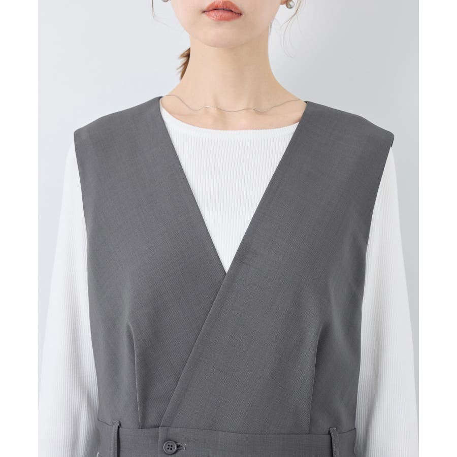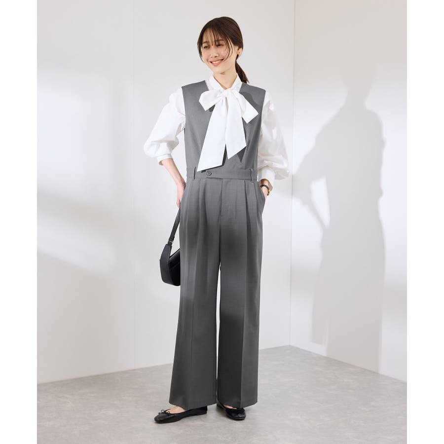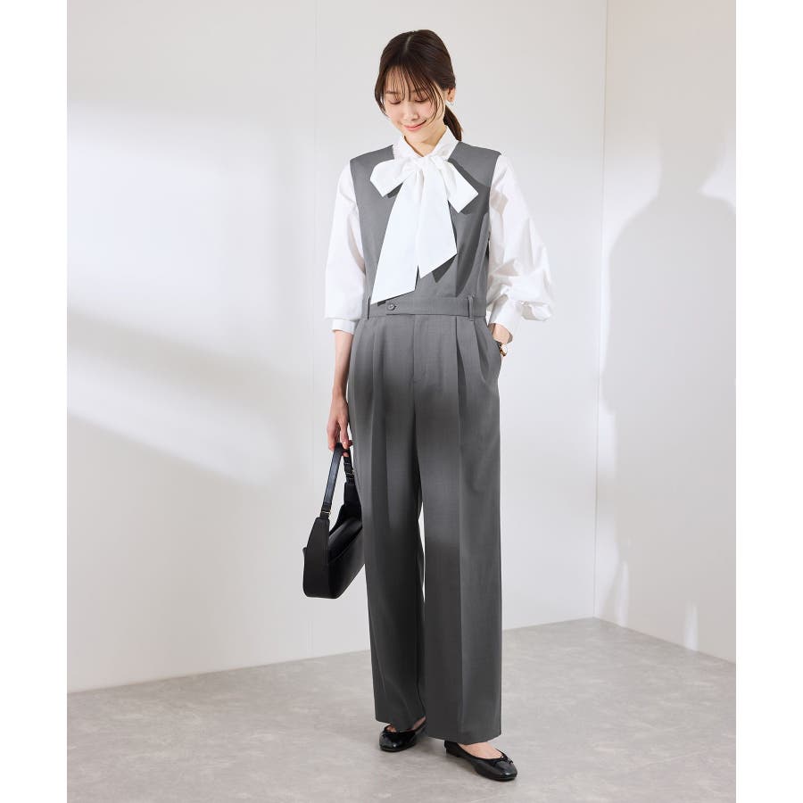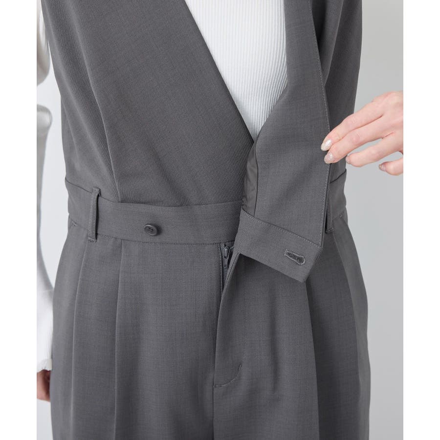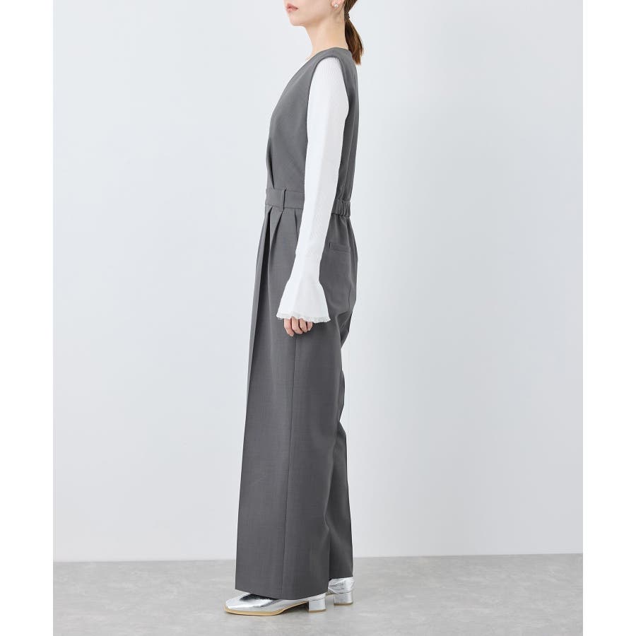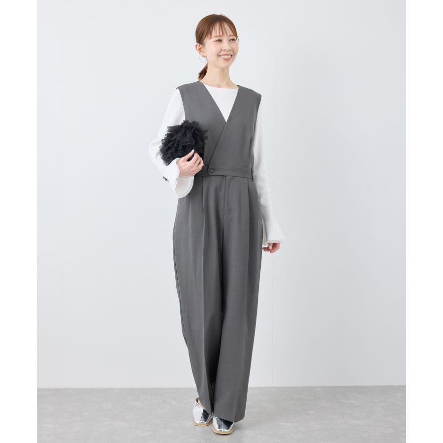 【素材感】 ・UVカット(紫外線遮蔽率90%以上)素材。 ・ひんやりとした涼しい着心地の接触冷感。 ・シワになりにくく、洗濯後のお手入れがしやすいイージーケア。 【デザイン・シルエット】 ・ベルトラインの切り替え入りで、セパレート風デザインのスリーブレスオールインワン。 ・パンツラインはややワイドで、センタークリース入りのマスキュリンなデザイン。 ・トップはフロントが併せデザインになっているのが特徴。 ・接触冷感性、防シワ性に優れた機能性の高い一着。 ・ウォッシャブル対応。 【カラー】 ・チャコールグレー、ベージュの落ち着いた2色展開。 【スタイリングポイント】 ・春先はインにタートルネックシャツやボーダーシャツなどを併せて。 ・暑い時期には、キャミソールやタンクトップでシンプルに着こなして。 ・足元はパンプスならきれいめに、スニーカーでカジュアルダウンもOK。 ----------------------------- 裏地:あり 透け感:なし 伸縮性:なし 生地感・厚さ:普通 ウエスト:後ろゴム ポケット:あり 季節:春・夏・秋 ----------------------------- ※撮影時の光、お使いのモニター環境によって色の見え方が違う場合がございます。 ※モデル身長:165cm 着用サイズ:38