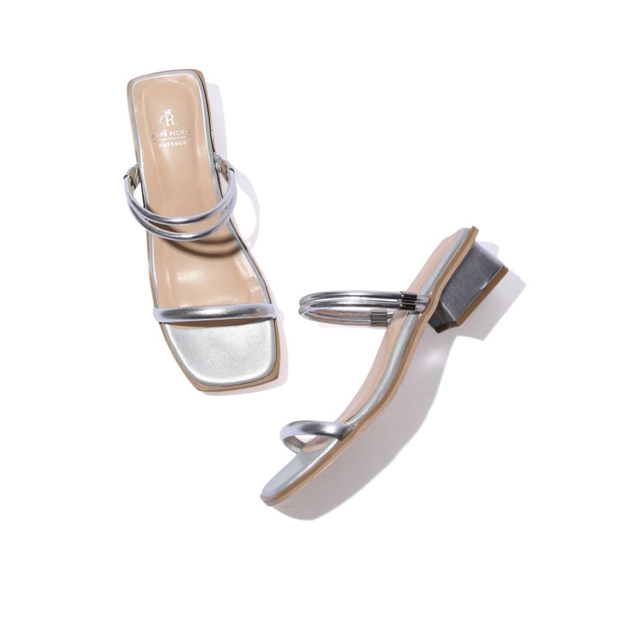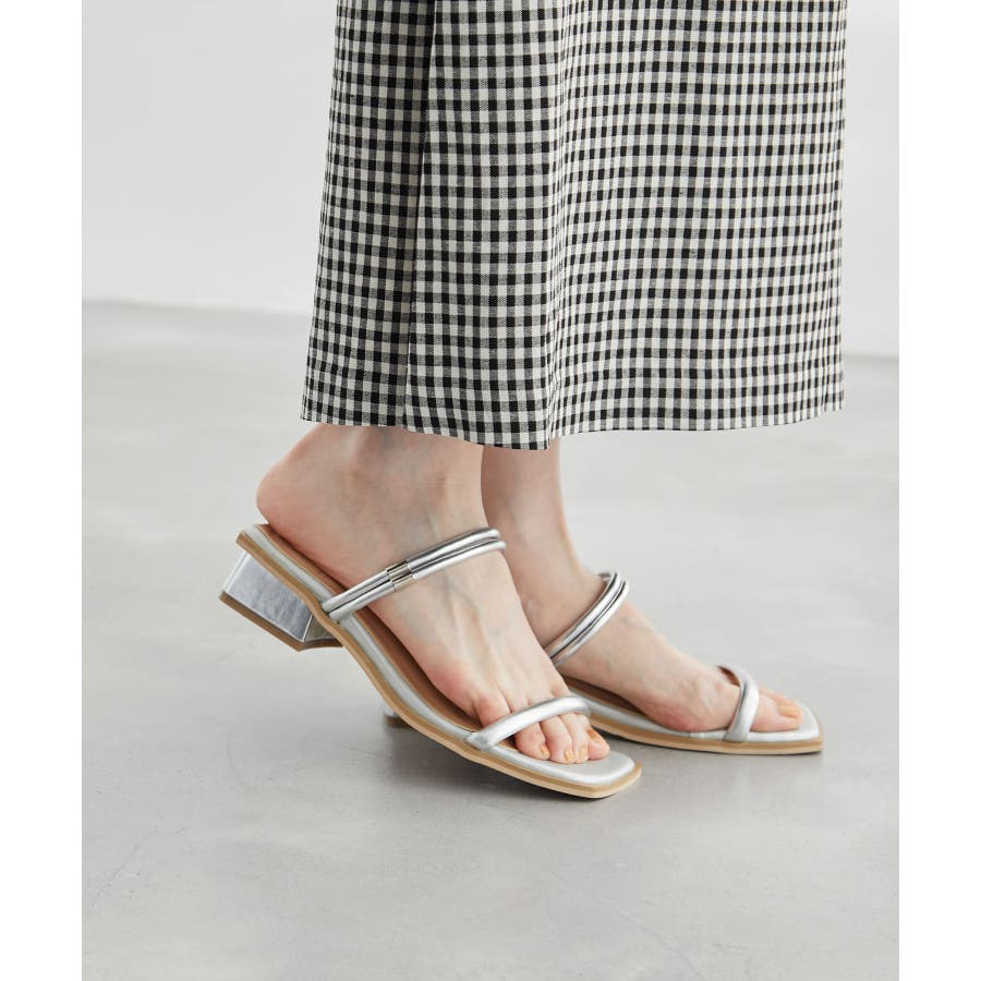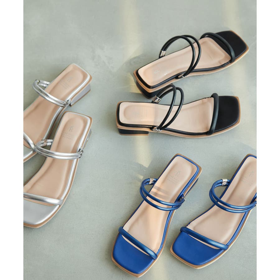 【デザイン・シルエット】 ・スクエアトゥとブロックヒールを組み合わせた、モードなルックスのストラップミュール。 ・ヒールは低めで安定感のある履き心地。 ・アンクルストラップはかかとにかけることもできる2WAY仕様。 【カラー】 ・ブラック、ブルー、シルバーのスタイリッシュな3色を展開。 【スタイリングポイント】 ・クロップドパンツやワイドパンツと好相性。 ・フェミニンよりも、マニッシュなスタイルにマッチ。 ※撮影時の光、お使いのモニター環境によって色の見え方が違う場合がございます。 ※幅:親指の付け根~小指の付け根の寸法になります。 ワイズ(足囲):親指の付け根~小指の付け根を通りぐるりと一周させた寸法になります。 サイズ詳細をご確認ください。 ※重量:両足520g 重量は、サンプルLサイズでの計測になります。 実際の商品と多少異なる場合がございます。