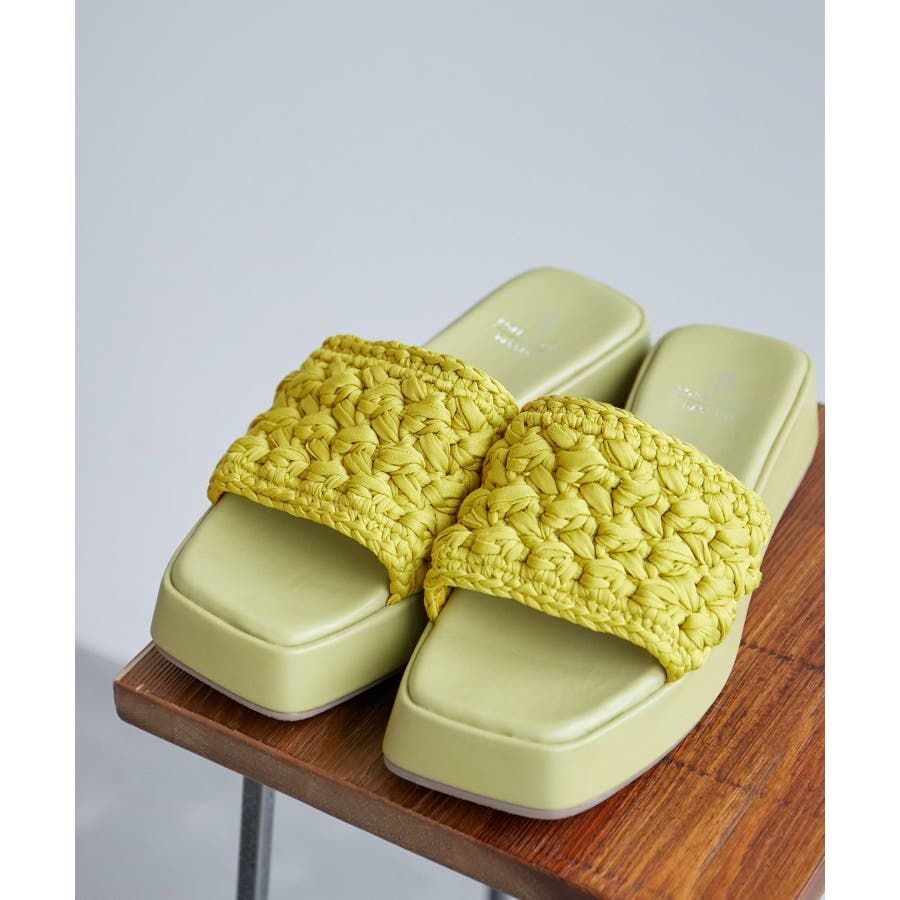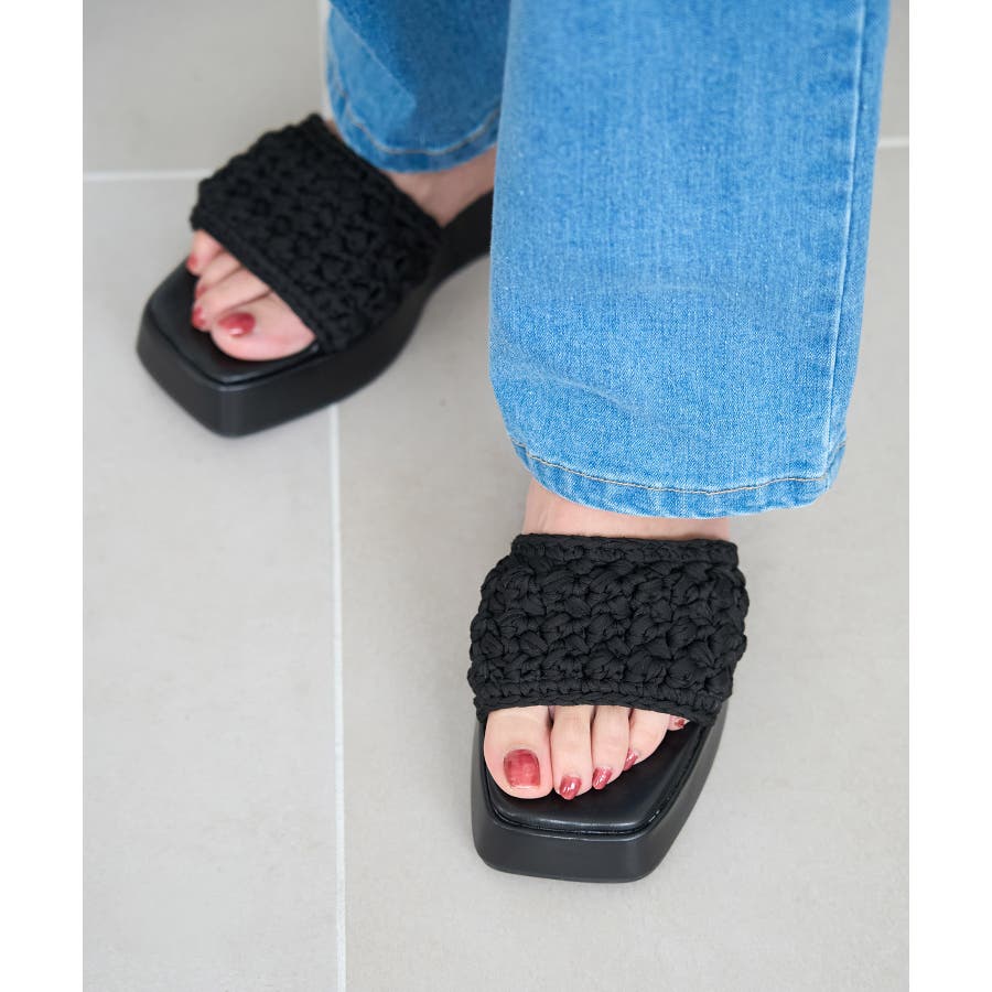 【デザイン・シルエット】 ・マクラメ編みのニットアッパーを採用したスライドサンダル。 ・フラットなプラットフォームソールで、脚長効果をアシストしつつ、履き心地は抜群。 ・モダン見えのスクエアトゥを採用。 【カラー】 ・ブラック、ライムグリーンのすっきりとした2色をラインナップ。 【スタイリングポイント】 ・フレアパンツでノスタルジックなムードに。 ・ニットパンツとのコーデも一押し。 ※撮影時の光、お使いのモニター環境によって色の見え方が違う場合がございます。 ※幅:親指の付け根~小指の付け根の寸法になります。 ワイズ(足囲):親指の付け根~小指の付け根を通りぐるりと一周させた寸法になります。 サイズ詳細をご確認ください。