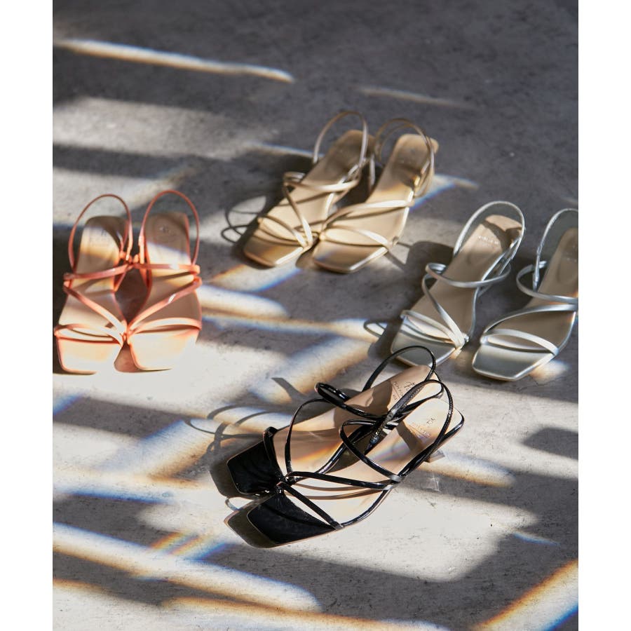 【デザイン・シルエット】 ・スクエアトゥとスクエアヒールで、モードに仕上げたストラップサンダル。 ・細身のストラップがヌーディーな足もとを演出。 ・つま先から甲までをホールド、バックストラップ付きで、不意に脱げてしまう心配もなし。 【カラー】 ・ブラックエナメル、アプリコットエナメル、ゴールド、シルバーの4色展開。 【スタイリングポイント】 ・クールなワイドパンツルックに合わせてハンサムに決めて。 ・ヴィンテージ風のジーンズなら、ゴールドやシルバーが相性抜群。 ※撮影時の光、お使いのモニター環境によって色の見え方が違う場合がございます。 ※幅:親指の付け根~小指の付け根の寸法になります。 ワイズ(足囲):親指の付け根?小指の付け根を通りぐるりと一周させた寸法になります。 サイズ詳細をご確認ください。