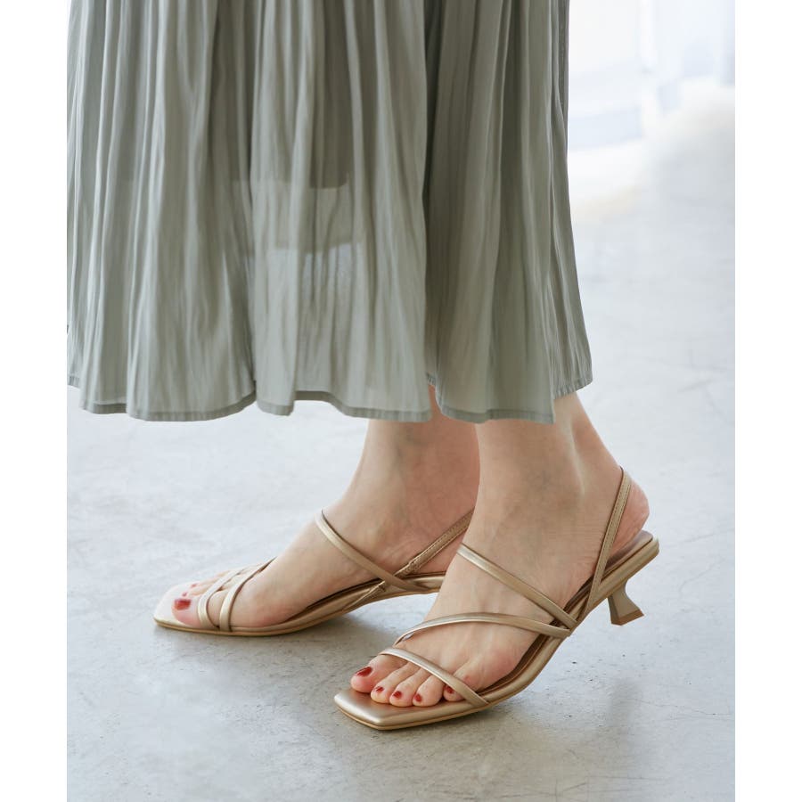 ナローストラップキトゥンヒールサンダル