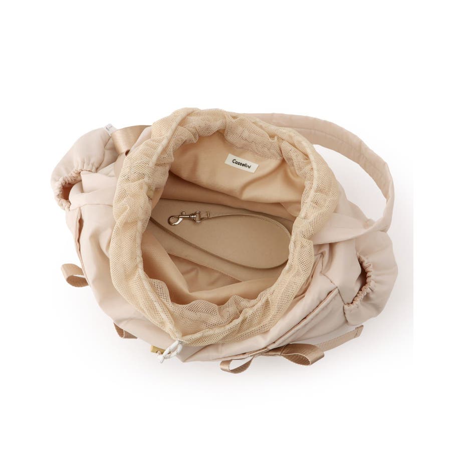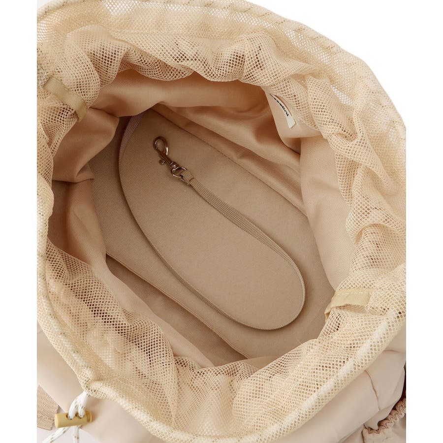 | 素材 | ブラック(01):(表地)ポリエステル 100% (裏地)ポリエステル 100% (メッシュ部分)ポリエステル 100% (テープ部分)ポリエステル 100% (紐部分)ポリエステル|キナリ(16):(表地)ポリエステル 100% (裏地)ポリエステル 100% (メッシュ部分)ポリエステル 100% (テープ部分)ポリエステル 100% (紐部分)ポリエステル |