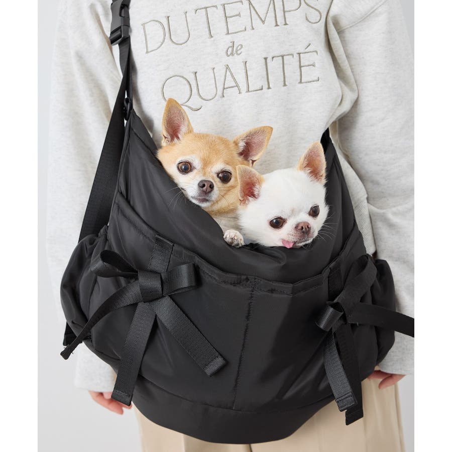【デザイン・シルエット】 ・【Casselini/キャセリーニ】別注のDOG用バッグ。 ・Casselinの人気のリボンショルダーバックがDOG用のキャリースリングになりました。 ・移動時も便利なメッシュカバー付き。 ・ちょっとした小物を入れやすいフロントポケットに、愛らしいリボン付き。 【カラー】 ・ブラック、アイボリーの取り入れやすい2色展開。 ※撮影時の光、お使いのモニター環境によって色の見え方が違う場合がございます。 ※推奨体重~8kg まで。