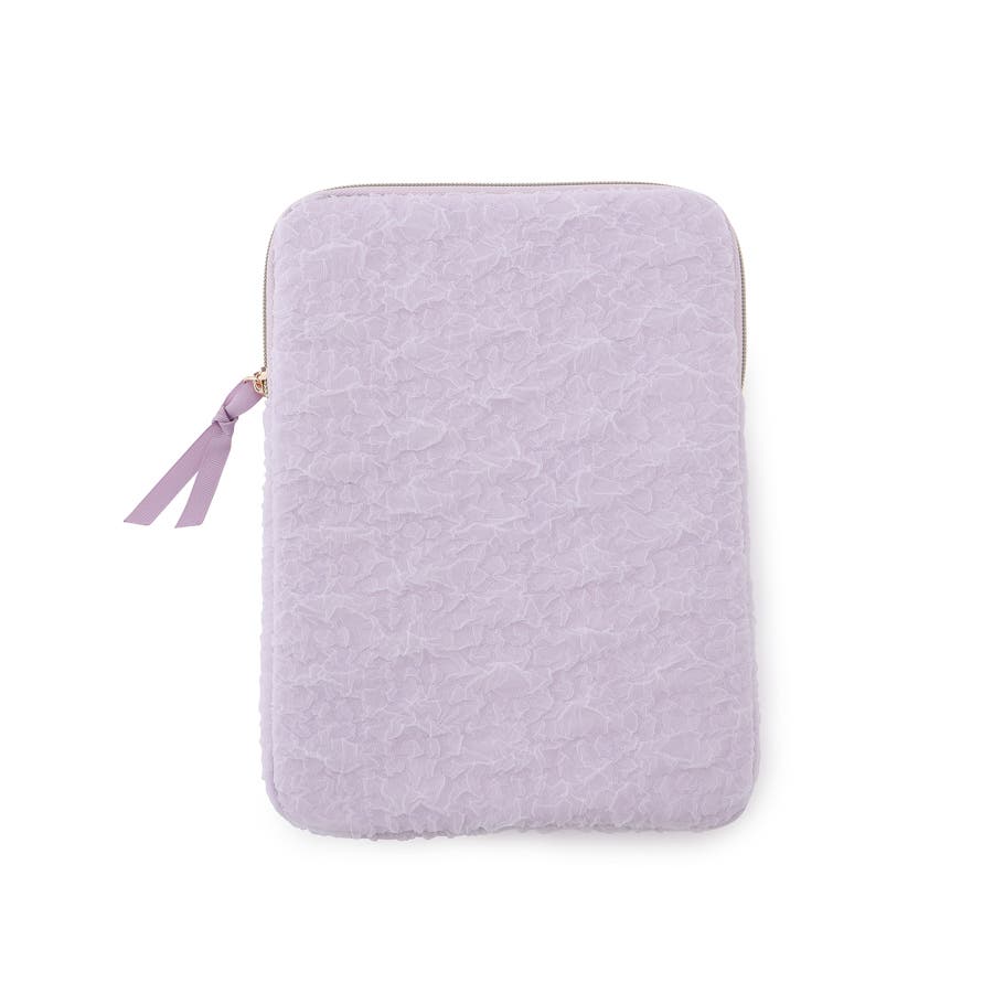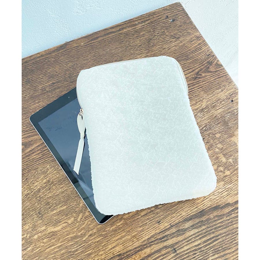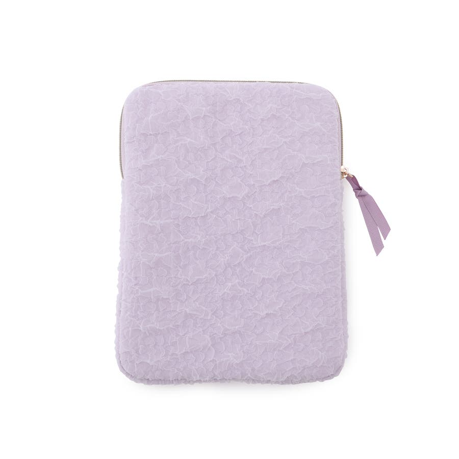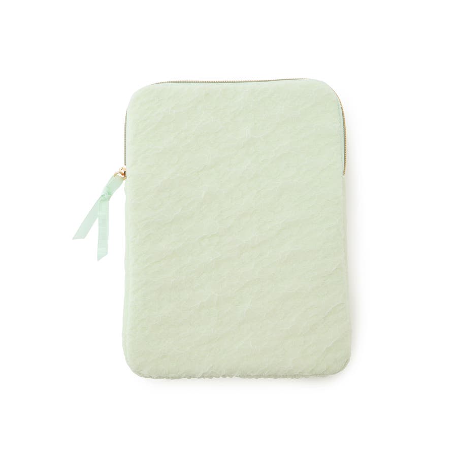 【デザイン・シルエット】 ・表情のあるジャカード生地を用いた、女性らしいデザインのiPadケース。 ・ファスナートップにリボン付き。 【カラー】 ・アイボリー、ミントグリーン、ラベンダーの3色展開。 ----------------------------- ポケットの数:外側1個 ----------------------------- ※撮影時の光、お使いのモニター環境によって色の見え方が違う場合がございます。