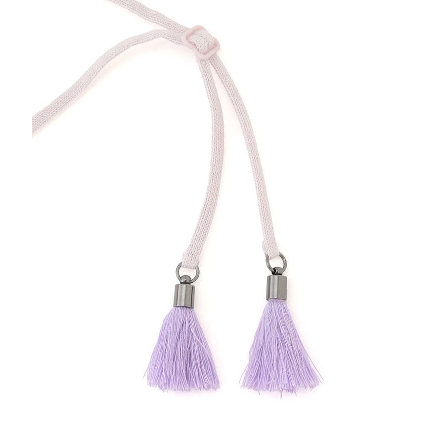 | 素材 | チャコール(06):(本体) 綿 100% (タッセル部分) ポリエステル 100%|ブルー系(45):(本体) 綿 100% (タッセル部分) ポリエステル 100%|ラベンダー(52):(本体) 綿 100% (タッセル部分) ポリエステル 100%|ピンク(63):(本体) 綿 100% (タッセル部分) ポリエステル 100% |