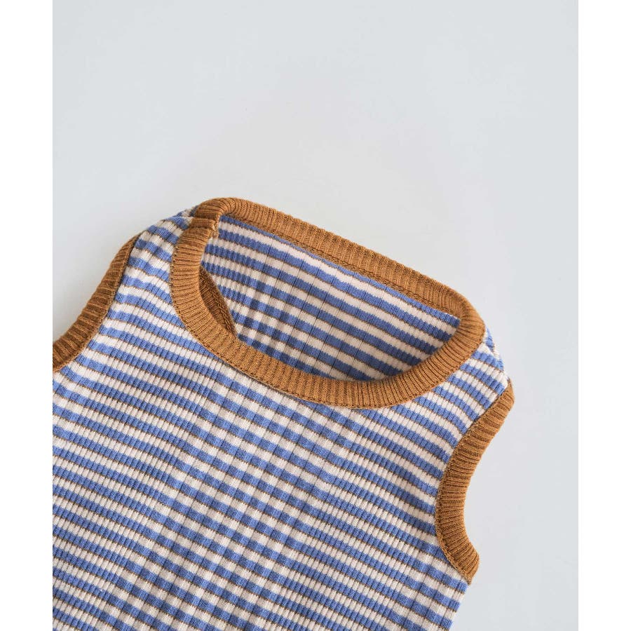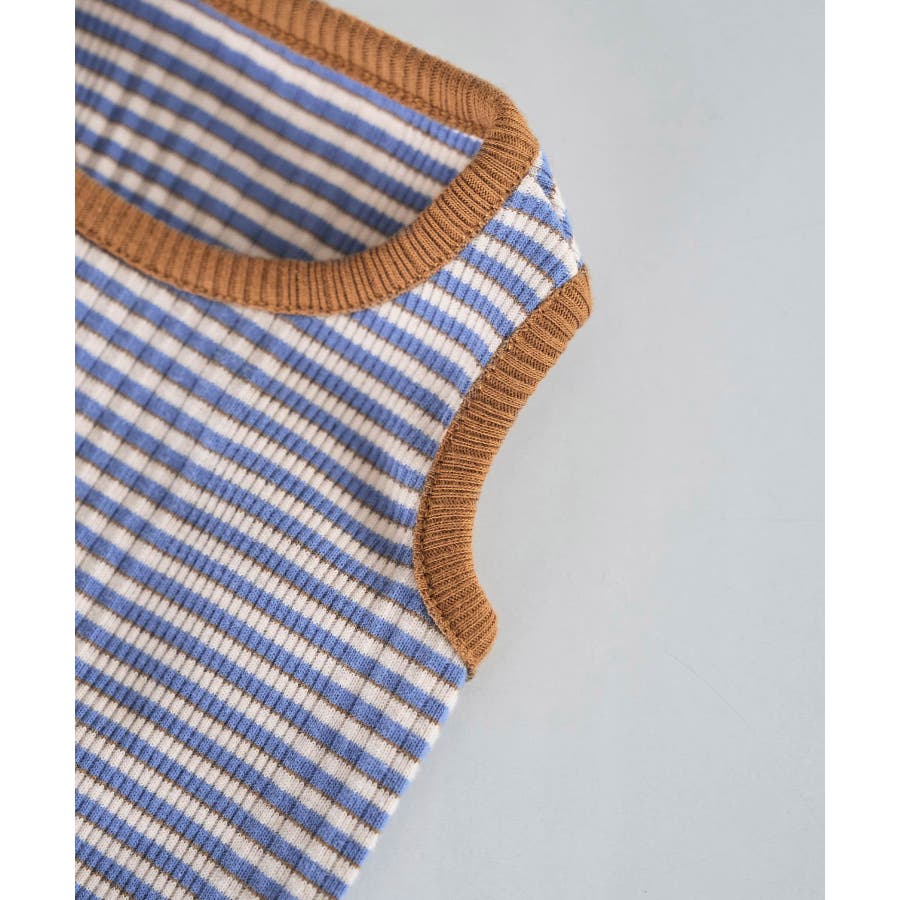 【DOG】リンクコーデ/マルチボーダーノースリーブトップス