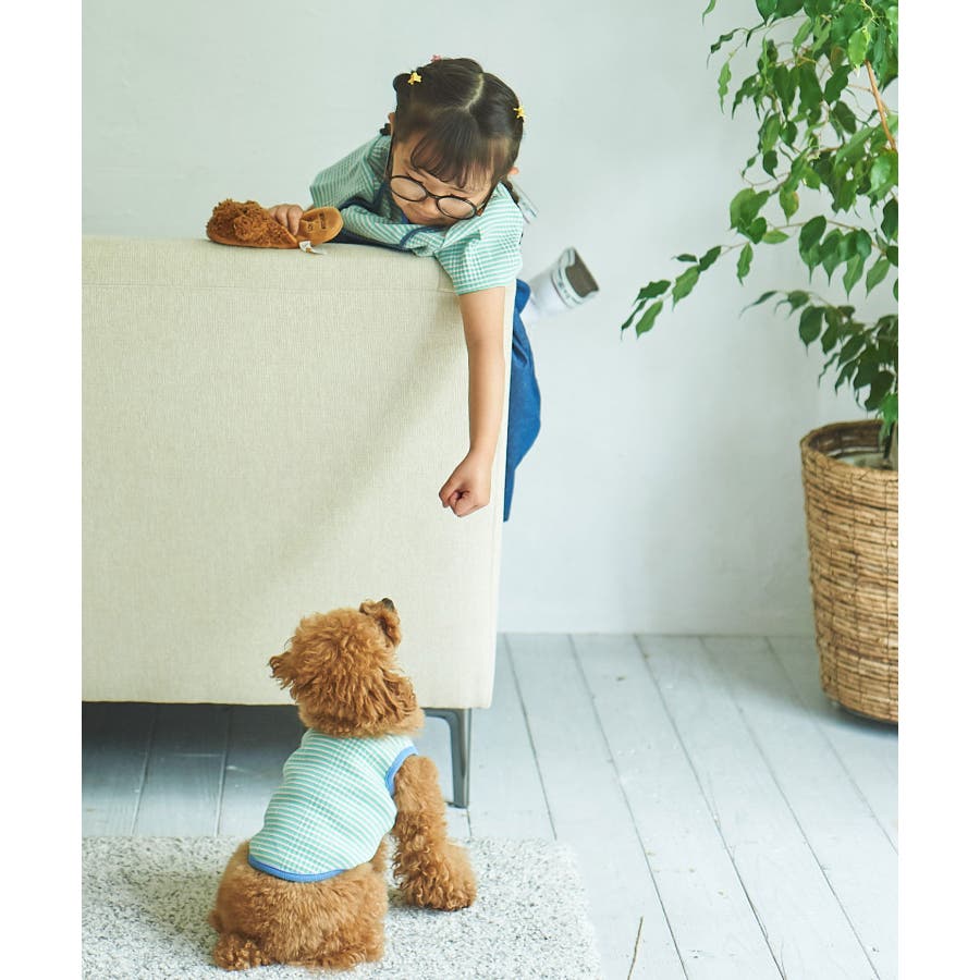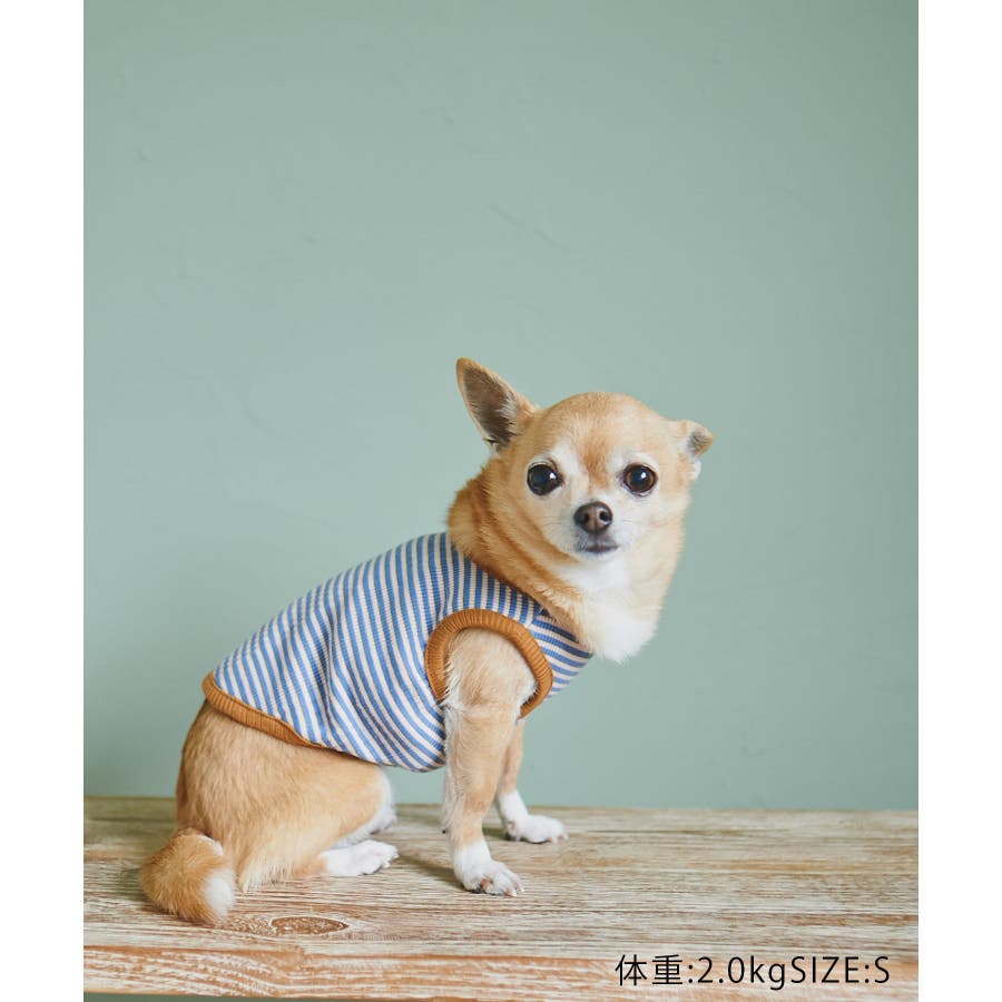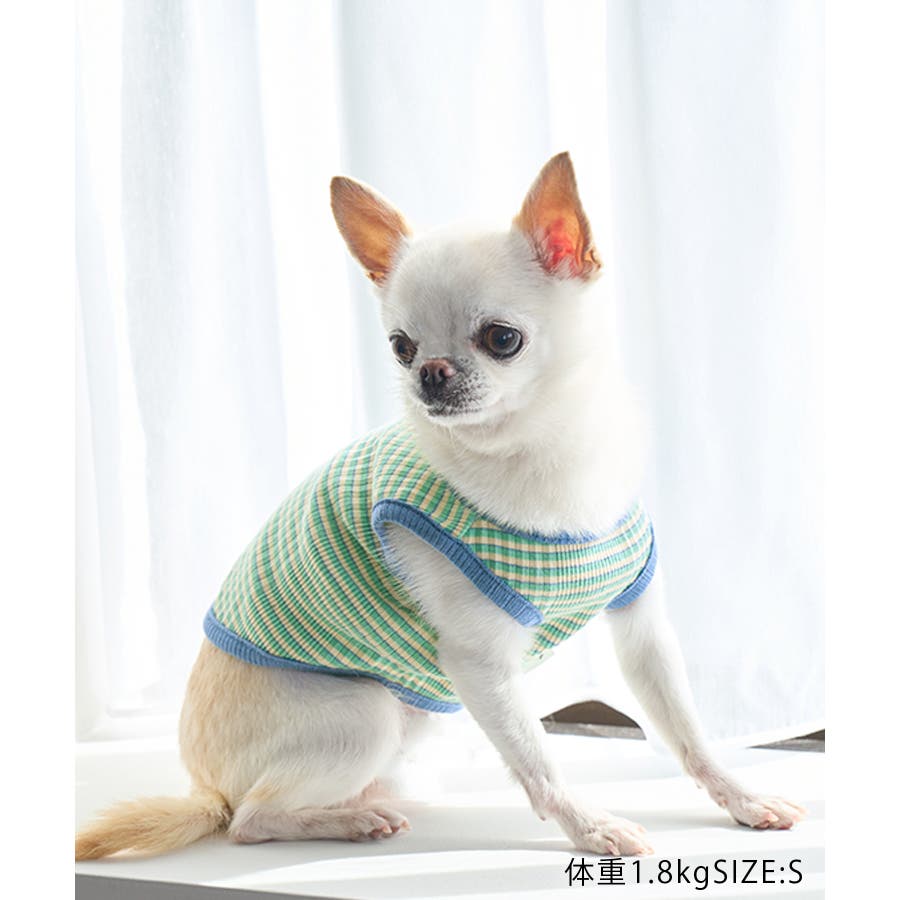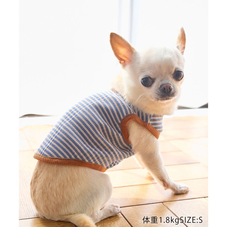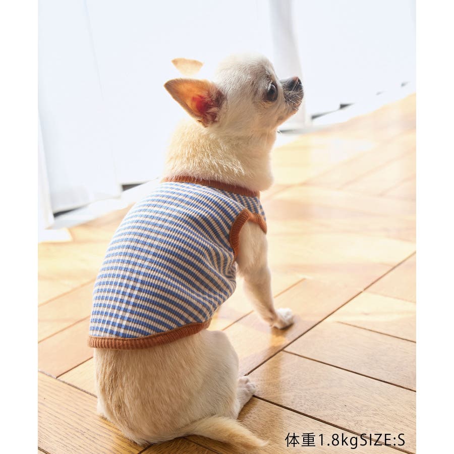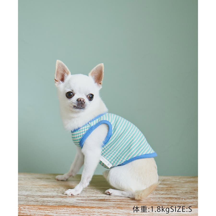 【デザイン・シルエット】 ・マルチボーダーのドッグ用ノースリーブカットソー。 ・カラーパイピングでメリハリをプラス。 【カラー】 ・ライトグリーン、ブルーの2色展開。 【スタイリングポイント】 ・同シリーズで大人(品番:GSM13030)、KIDS(品番:GRM23060)も展開しているので、ファミリーリンクコーデもおすすめ。 ※撮影時の光、お使いのモニター環境によって色の見え方が違う場合がございます。 ※KIDSは一部店舗限定になります。 ※タグの画像のサイズは参考ヌード寸になります。商品サイズはサイズ情報でご確認ください。 ※モデル犬体重は詳細画像をご確認ください。