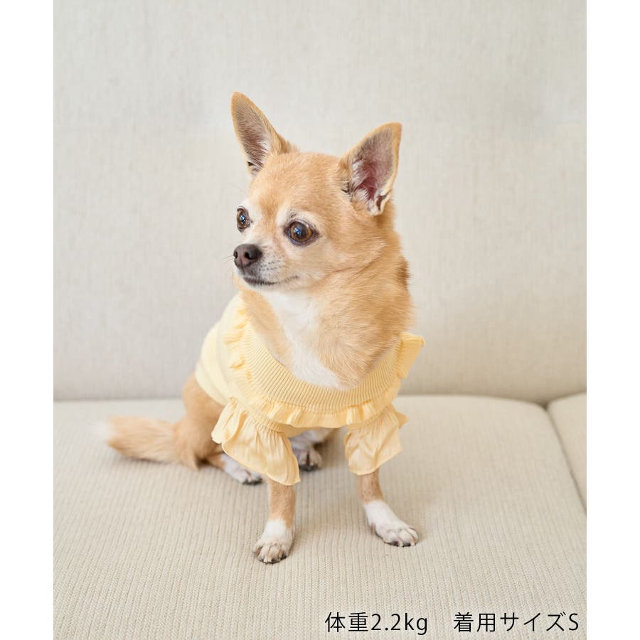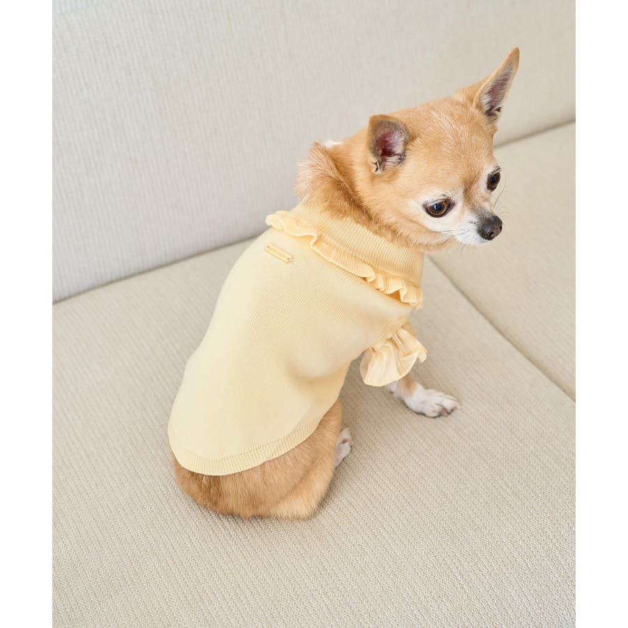 【デザイン・シルエット】 ・プリーツ仕様の袖で切り替えた、ドッグ用のタートルネックニット。 ・ネックもフリルデザインでスウィートにフィニッシュ。 【カラー】 ・ブラック、クリームイエロー2色展開。 【スタイリングポイント】 ・同シリーズで大人(品番:GDM14190)、KIDS(品番:GRM24030)も展開しているので、お揃いもおすすめ。 ※撮影時の光、お使いのモニター環境によって色の見え方が違う場合がございます。 ※タグの画像のサイズは参考ヌード寸になります。商品サイズはサイズ情報でご確認ください。