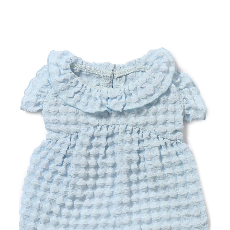 【デザイン・シルエット】 ・ROPE' PICNIC定番人気のドッグウェアシリーズ。 ・ポコポコとした素材感が独特な、女の子にぴったりの襟付きワンピース。 【カラー】 ・アイボリー、サックスブルーの2色展開。 ※撮影時の光、お使いのモニター環境によって色の見え方が違う場合がございます。 ※タグの画像のサイズは参考ヌード寸になります。商品サイズはサイズ情報でご確認ください。
