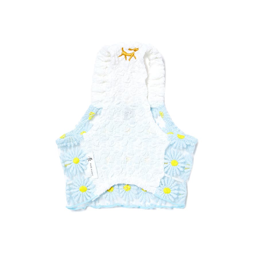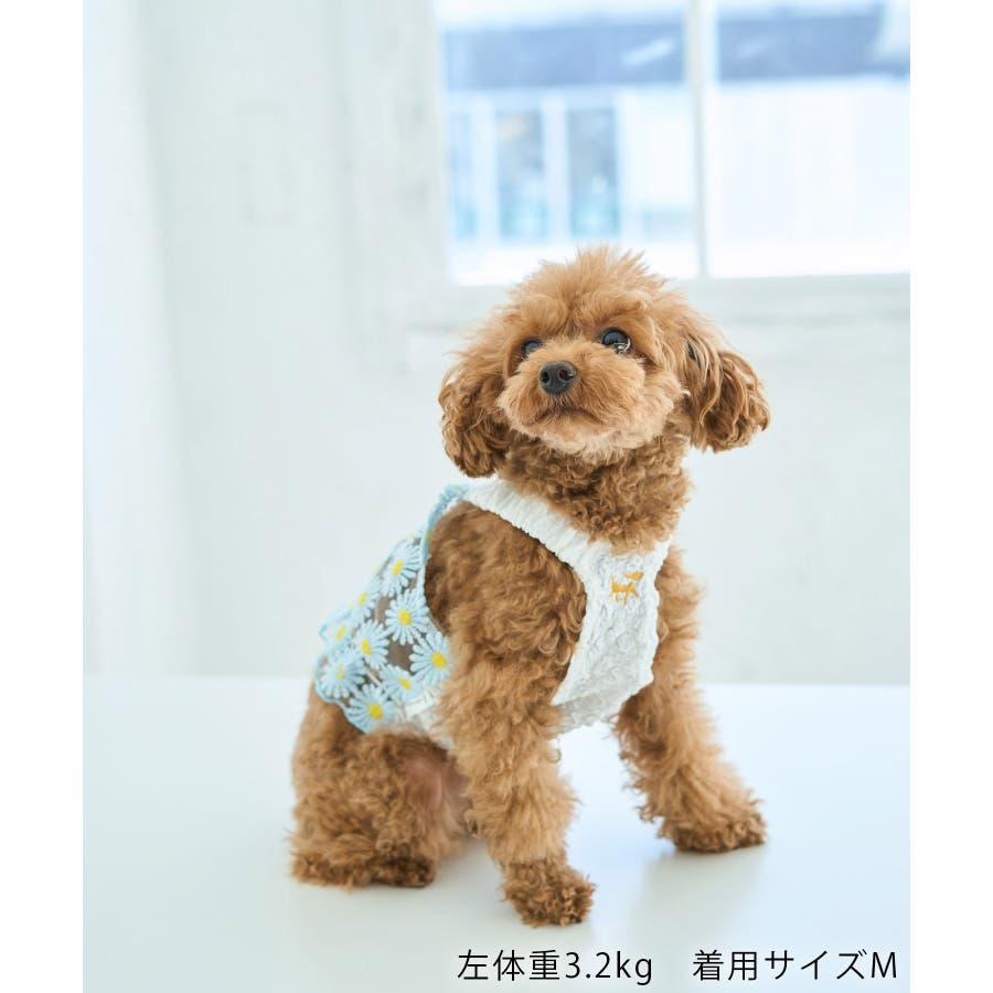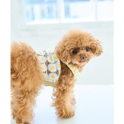 【デザイン・シルエット】 ・定番人気のDOGウェアシリーズ。 ・フラワー柄の華やかなキャミソール。 【カラー】 ・ホワイト、サックスブルーの涼やかな2色展開。 ※撮影時の光、お使いのモニター環境によって色の見え方が違う場合がございます。 ※タグの画像のサイズは参考ヌード寸になります。商品サイズはサイズ情報でご確認ください。
