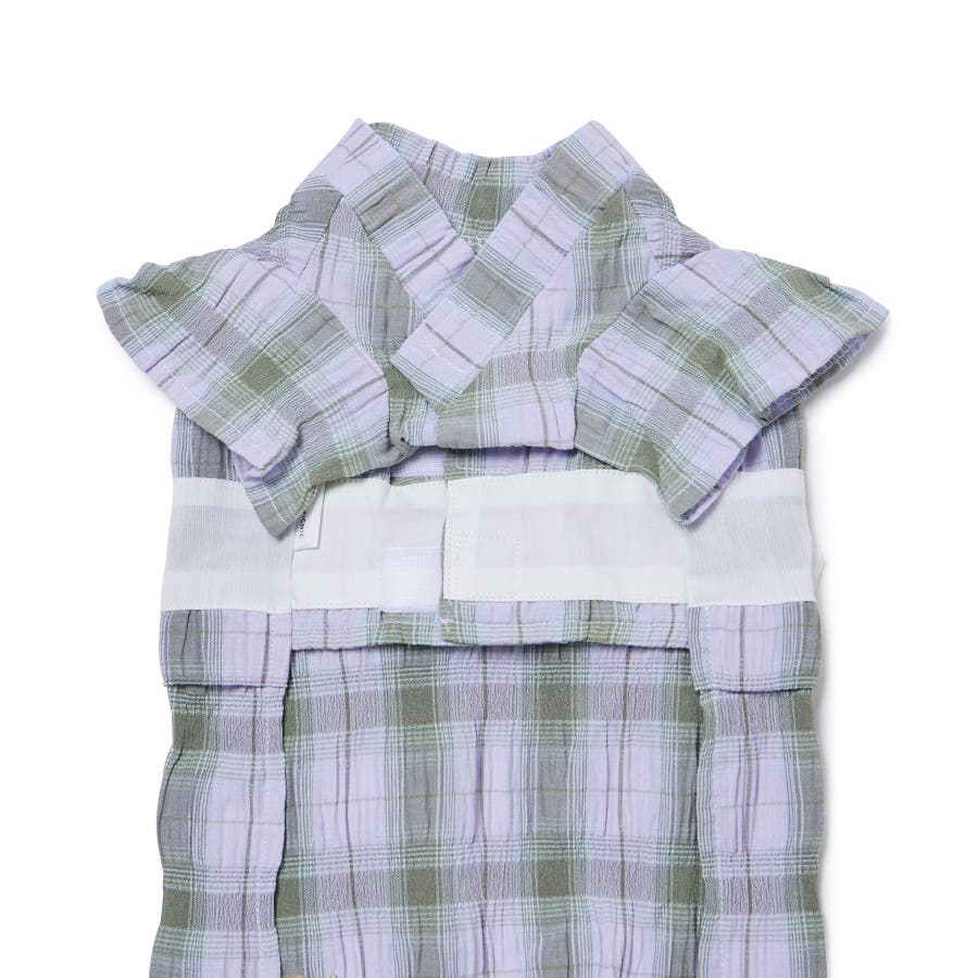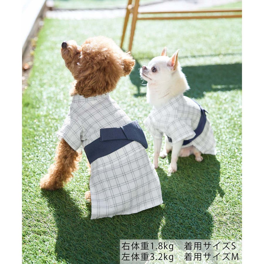 【デザイン・シルエット】 ・人気のドッグウェアシリーズ。 ・夏のお出かけやお散歩にぴったりのチェック柄浴衣。 ・男の子も女の子も着られる2パターンのデザインを用意。 【カラー】 ・ホワイト、ラベンダーの明るい2色をラインナップ。 ※撮影時の光、お使いのモニター環境によって色の見え方が違う場合がございます。 ※タグの画像のサイズは参考ヌード寸になります。商品サイズはサイズ情報でご確認ください。