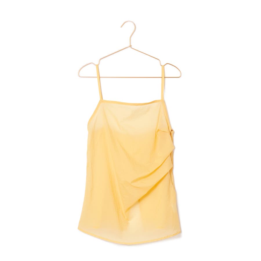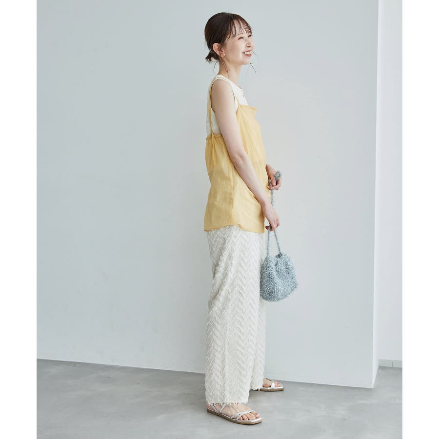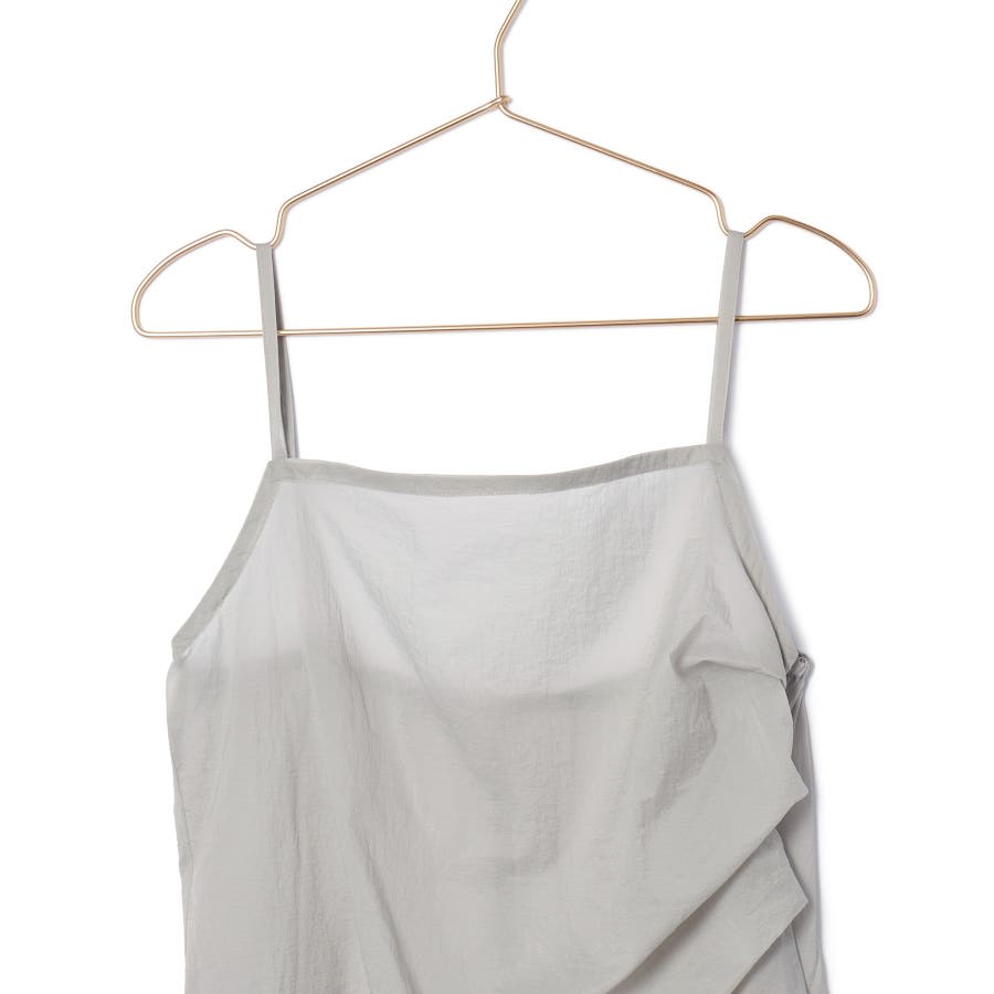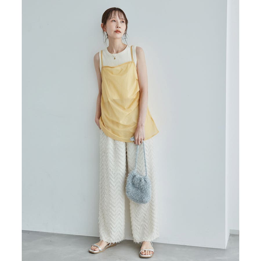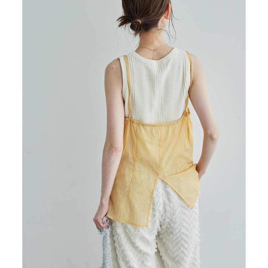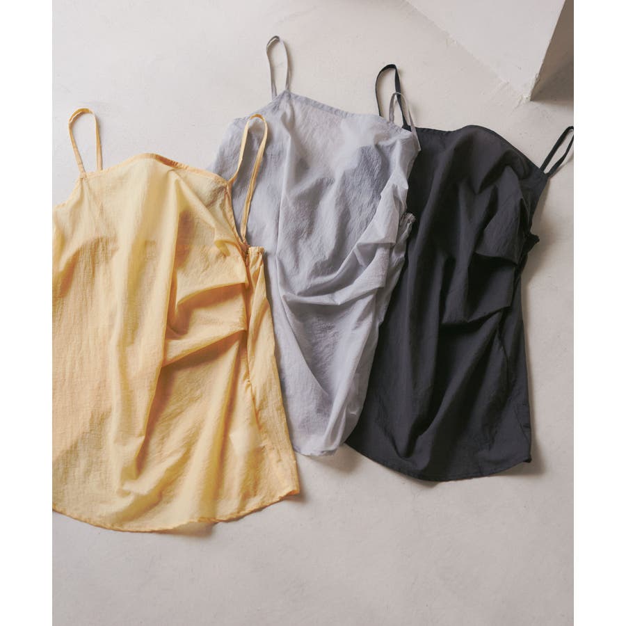 【素材感】 ・シアーで光沢感のある素材を用いた、ミドル丈のレイヤードキャミソール。 【デザイン・シルエット】 ・胸もとはフラットラインにして、セクシーさをほどよく抑えているのがポイント。 【カラー】 ・ブラック、シルバーグレー、ライトイエローの3色展開。 【スタイリングポイント】 ・夏はタンクトップやTシャツに重ねて、秋にかけてはタートルニットなどを重ねて。 ・パンツルックに取り入れるのがおすすめ。 ----------------------------- 裏地:なし 透け感:あり 伸縮性:なし 生地感・厚さ:薄手 その他仕様:肩紐調節可能、左ファスナー 季節:通年 ----------------------------- ※撮影時の光、お使いのモニター環境によって色の見え方が違う場合がございます。 ※モデル身長:165cm 着用サイズ:F