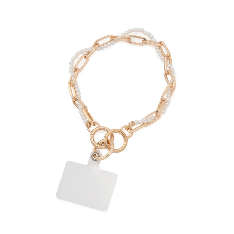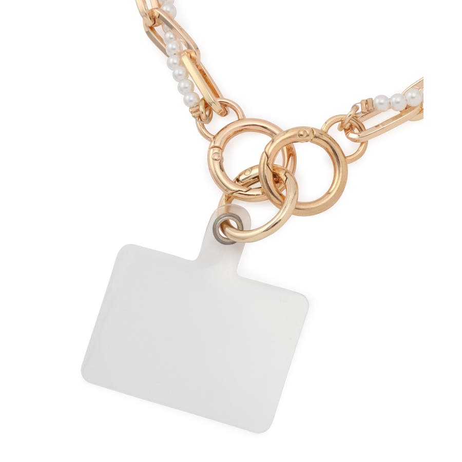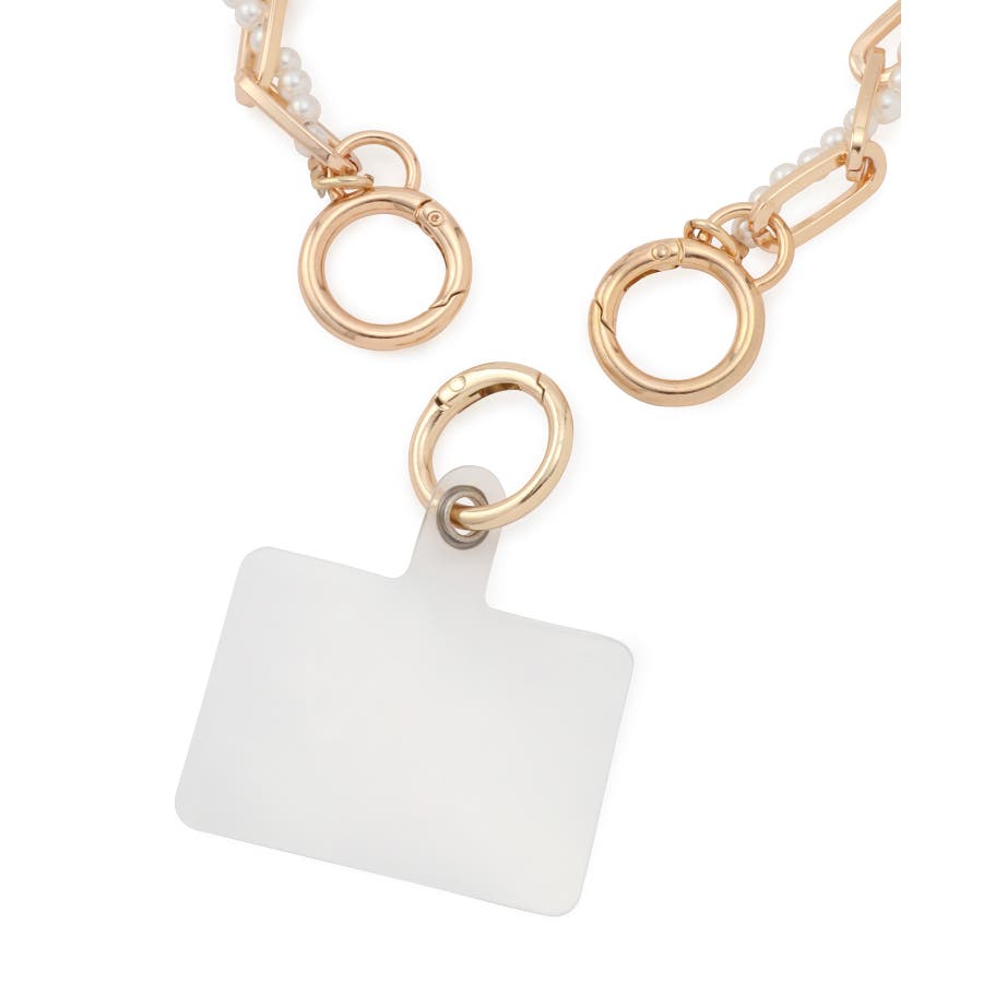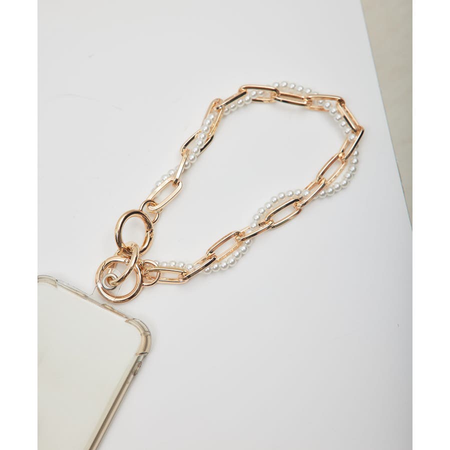 【デザイン・シルエット】 ・大ぶりのゴールドチェーンに、連ねた小粒のパールビーズを巻き付けたスマホハンドル。 ・手首に掛けて、スマートフォンの持ち運びがよりしやすくなるアイテム。 【カラー】 ・ゴールドのみの展開。 ※撮影時の光、お使いのモニター環境によって色の見え方が違う場合がございます。