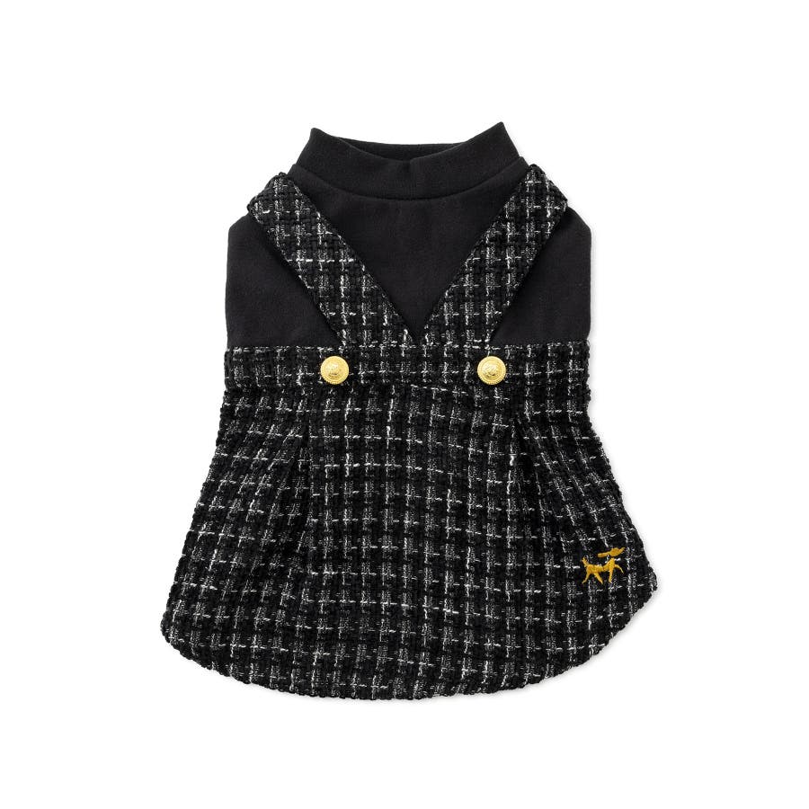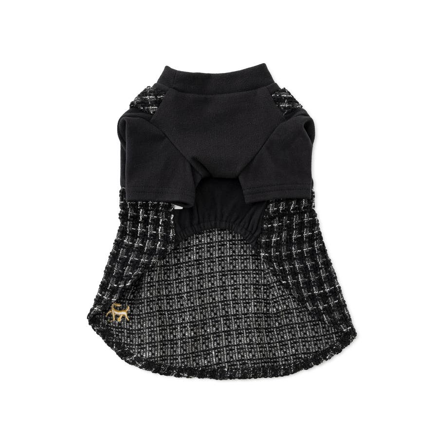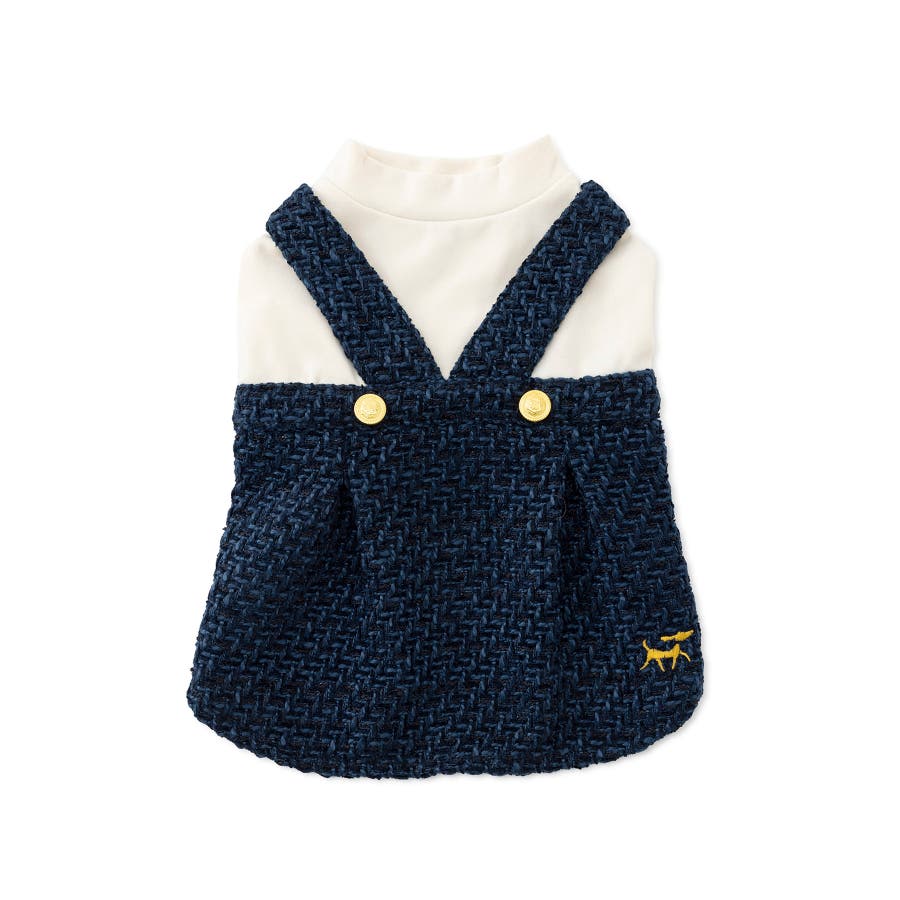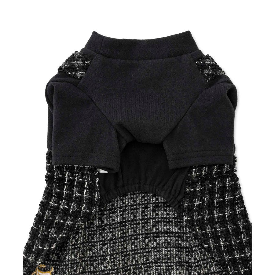【素材感】 ・暖かみのあるツイード素材でシーズンライクなルックに。 【デザイン・シルエット】 ・ROPE' PICNIC人気のドッグウェア&グッズシリーズ。 ・トップスとジャンパースカートをコーディネートしたような、ドッキングデザインのワンピース。 【カラー】 ・ブラック系(02):ブラック×ブラックツイード ・ネイビー系(41):ホワイト×ネイビーツイードの2色展開。 ※撮影時の光、お使いのモニター環境によって色の見え方が違う場合がございます。 ※タグの画像のサイズは参考ヌード寸になります。商品サイズはサイズ情報でご確認ください。 ※モデル犬体重は詳細画像をご確認ください。