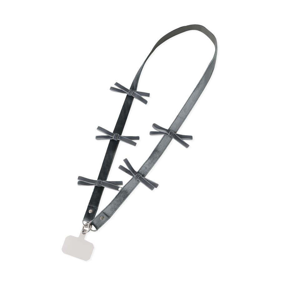 【デザイン・シルエット】 ・リボンをランダムにあしらったショルダーストラップ。 ・スマーフォンやIDカードケース、パスケースなど、さまざまなアイテムを提げて使える便利グッズ。 【カラー】 ・ブラック、シルバーグレーの2色展開。 【スタイリングポイント】 ・きちんと感のあるベロア素材なら、フォーマルスタイルでスマートフォンストラップとして取り入れてもOK。 ・推し活のトレカケースを提げてもグッド。 ※撮影時の光、お使いのモニター環境によって色の見え方が違う場合がございます。