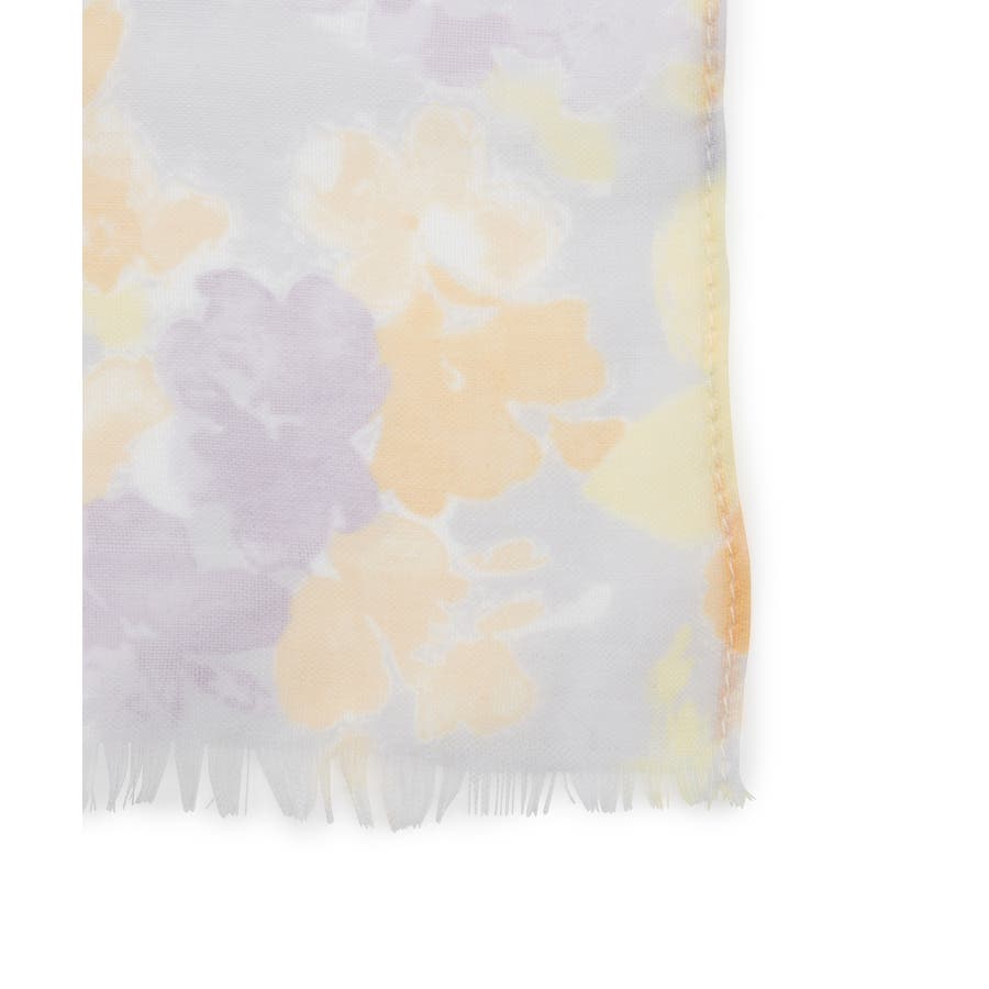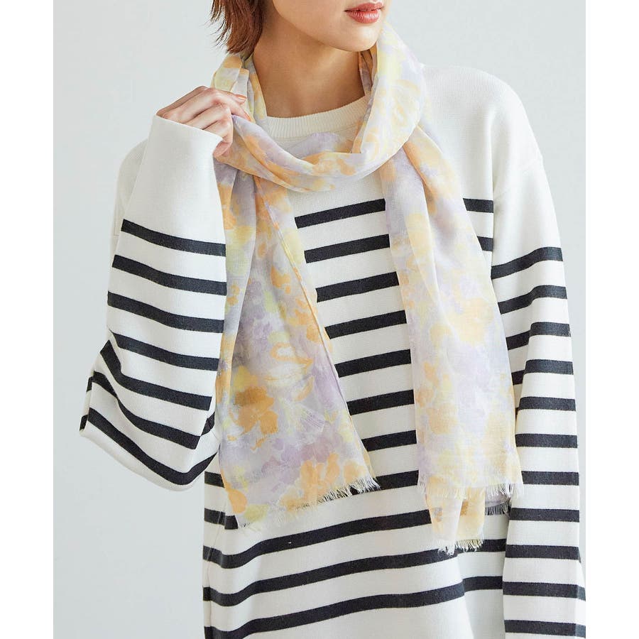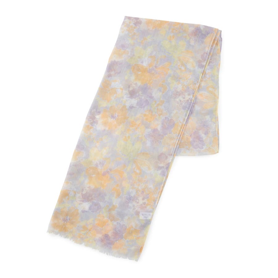 【素材感】 ・リサイクルポリエステルを使用したサスティナブルなアイテム。 【デザイン・シルエット】 ・滲む色合いが美しい、色彩タッチのフラワープリントストール。 ・シアーな質感で女性らしさ溢れる仕上がり。 【カラー】 ・ラベンダー系とイエロー系の柔らかな2色展開。 【スタイリングポイント】 ・春も使える軽やかさで、トレンチコートの首元にプラスすると◎。 ※撮影時の光、お使いのモニター環境によって色の見え方が違う場合がございます。