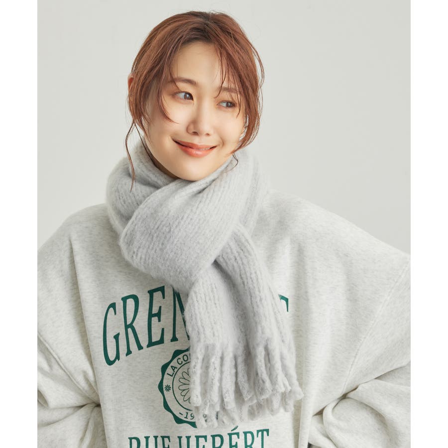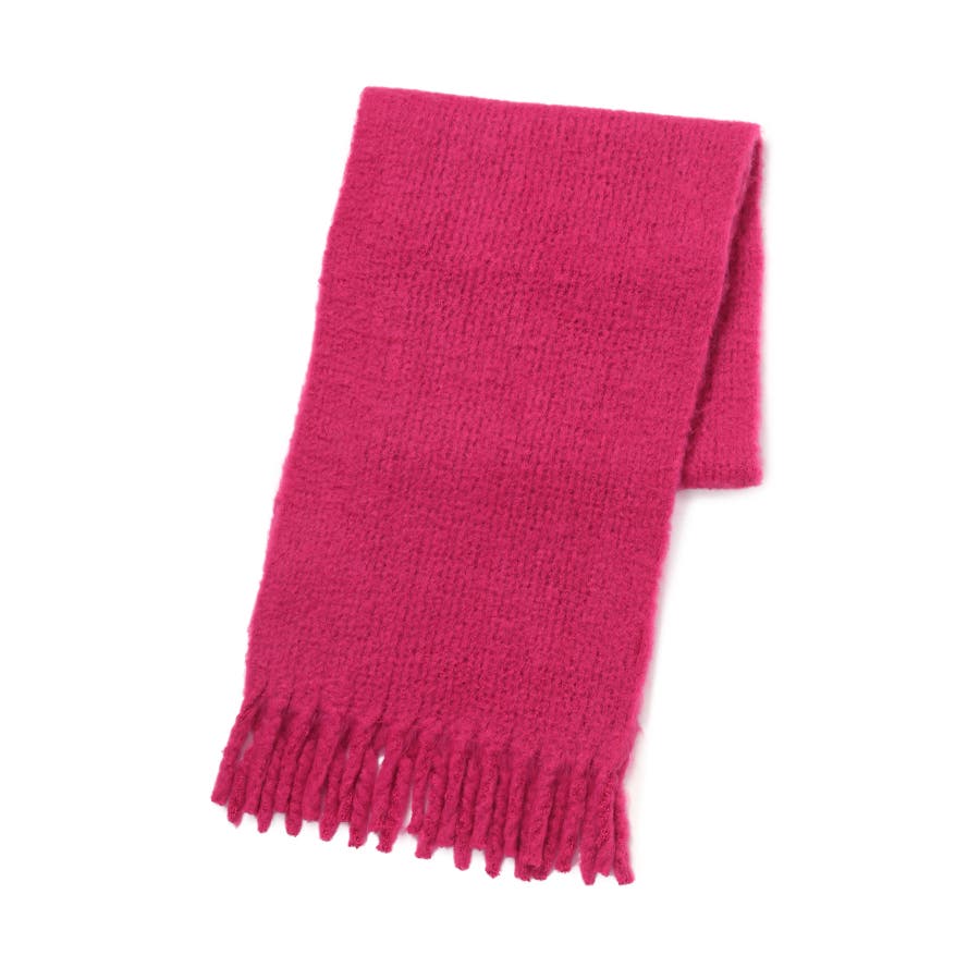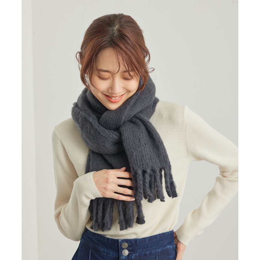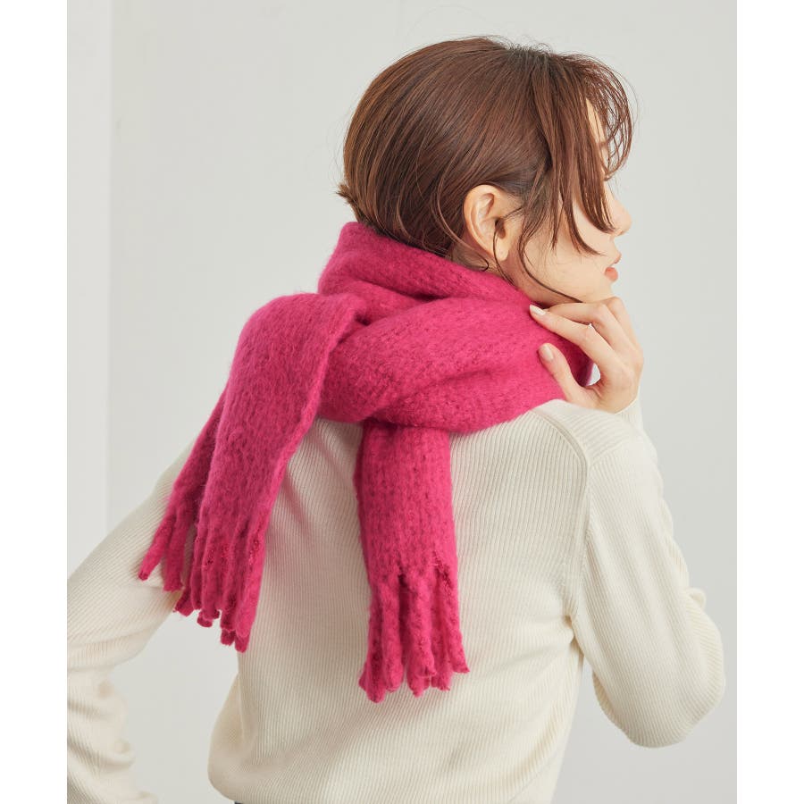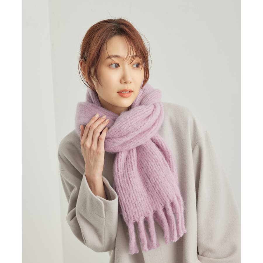 【素材感】 ・再生ポリエステルを使用した、サステナブルなアイテム。 【デザイン・シルエット】 ・ざっくりとしたバルキーニットマフラー。 ・ダイナミックなサイドフリンジがアクセント。 【カラー】 ・モノトーンとビビッドカラーを揃えた、全6色展開。 【スタイリングポイント】 ・シンプルなスタイルを好む人は、ターコイズやピンクでワンポイントに。 ・通勤スタイルなどにも馴染むのは、モノトーンカラー。 ※撮影時の光、お使いのモニター環境によって色の見え方が違う場合がございます。