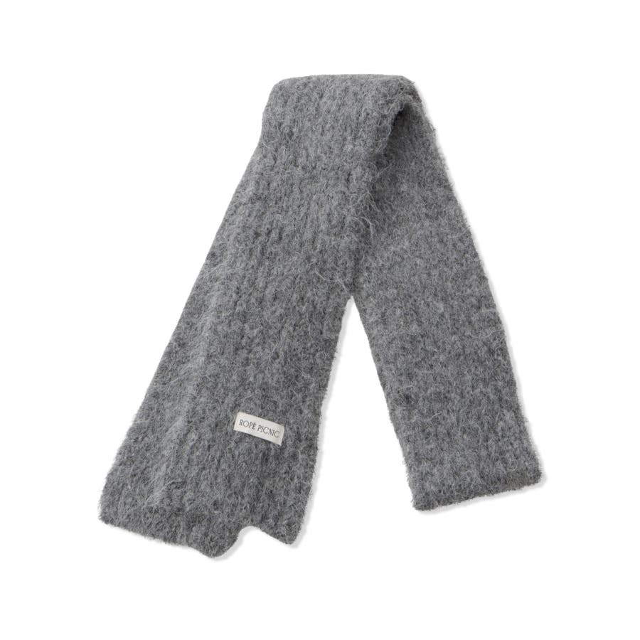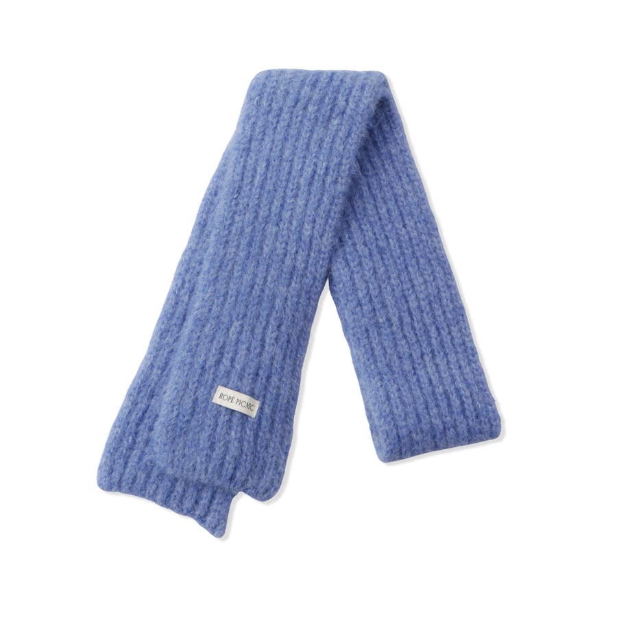 【素材感】 ・ふわふわの毛糸で編んだ、見た目も暖かなリブニットマフラー。 【デザイン・シルエット】 ・スリムラインがユニークなアイテム。 ・サイドにロゴ入りワッペン付き。 【カラー】 ・グレー、アイボリー、ブルーの3色展開。 【スタイリングポイント】 ・幅を取らないので、ボリュームのあるボアやダウンアウターにも合わせやすい。 ・シャツなどの布帛トップスに暖かみをプラスする小物としても◎。 ・ブルーは、モノトーンに合わせると映える。 ※撮影時の光、お使いのモニター環境によって色の見え方が違う場合がございます。