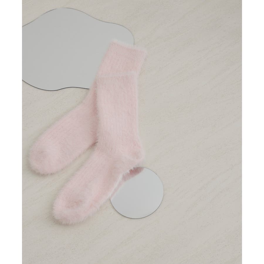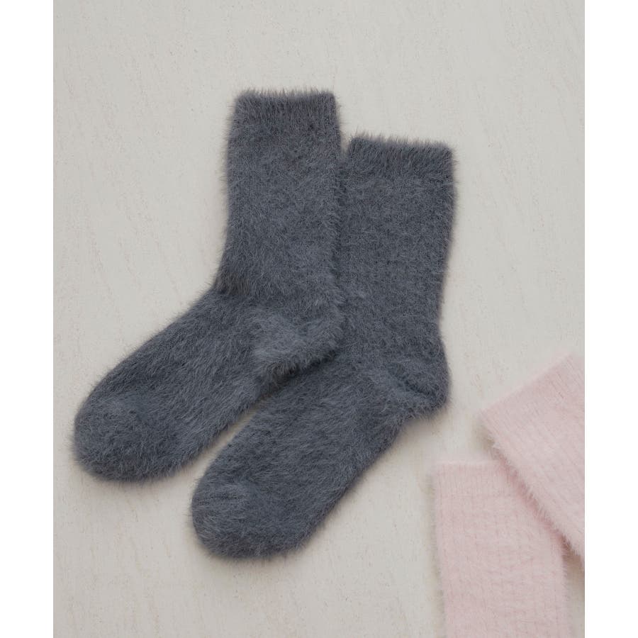 【素材感】 ・毛足のあるシャギー素材を用いた、秋冬らしいクルーソックス。 【デザイン・シルエット】 ・素材感を生かしたシンプルデザイン。 【カラー】 ・チャコールグレー、アイボリー、ライトピンクの3色展開。 【スタイリングポイント】 ・裾をロールアップしたデニムから覗かせるなら、ピンクがお似合い。 ・オンオフ問わず使えるのは、グレーとアイボリー。 ※撮影時の光、お使いのモニター環境によって色の見え方が違う場合がございます。