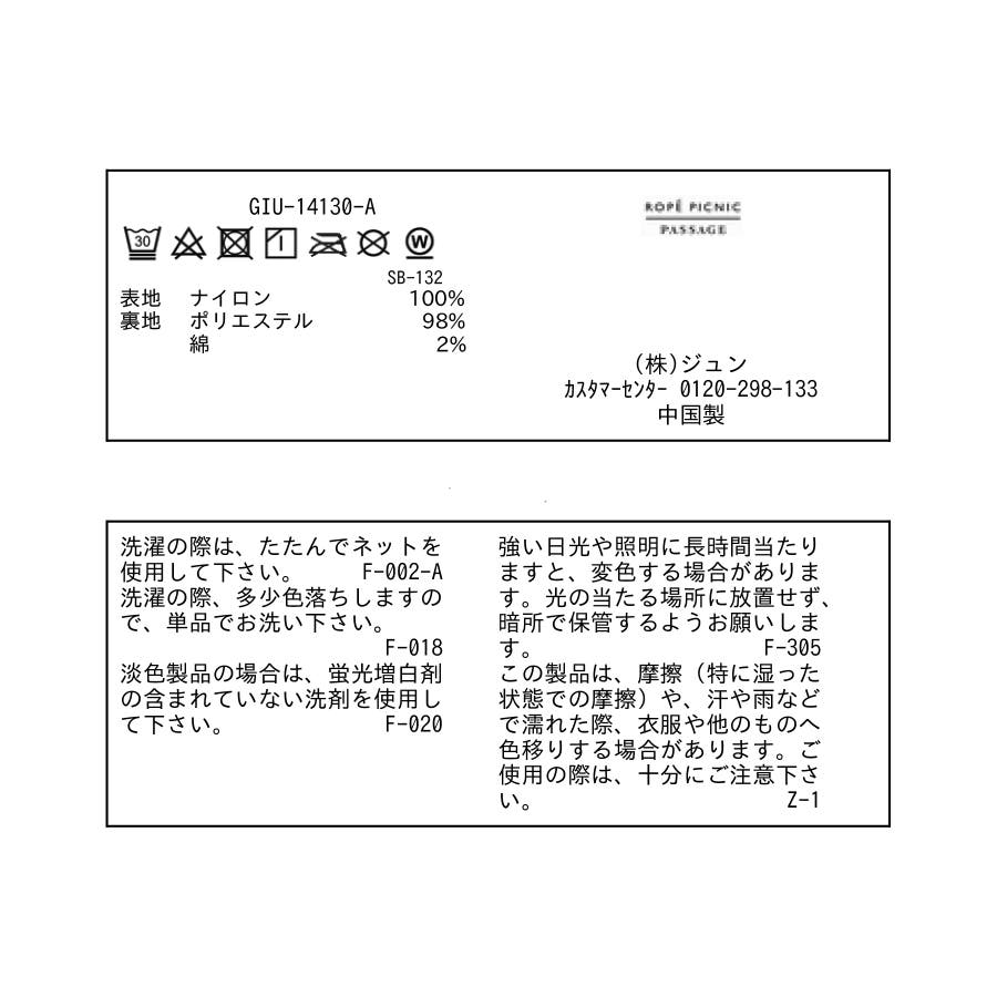 | 素材 | ブラック(01):(表地) ナイロン 100% (裏地) ポリエステル 98% 綿 2%|キナリ(16):(表地) ナイロン 100% (裏地) ポリエステル 98% 綿 2% |