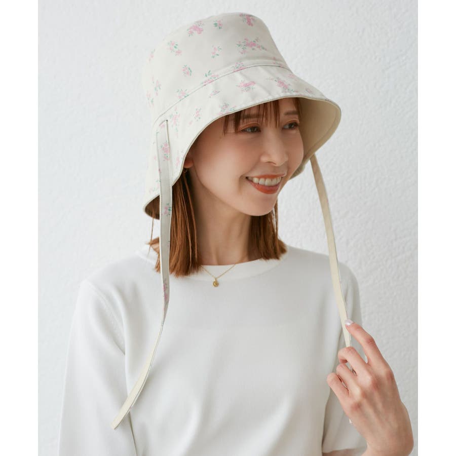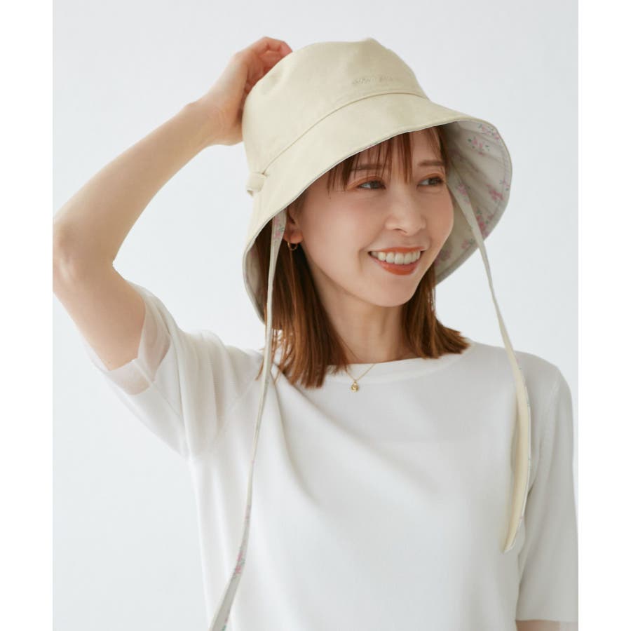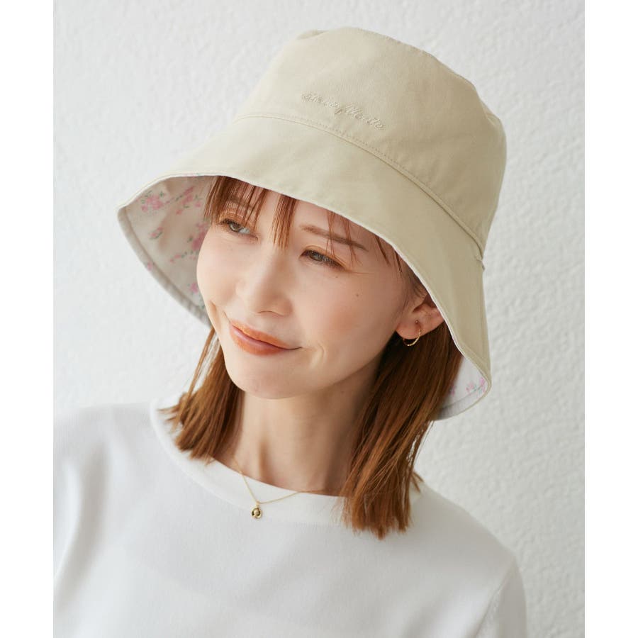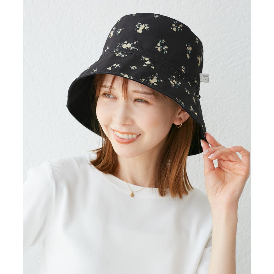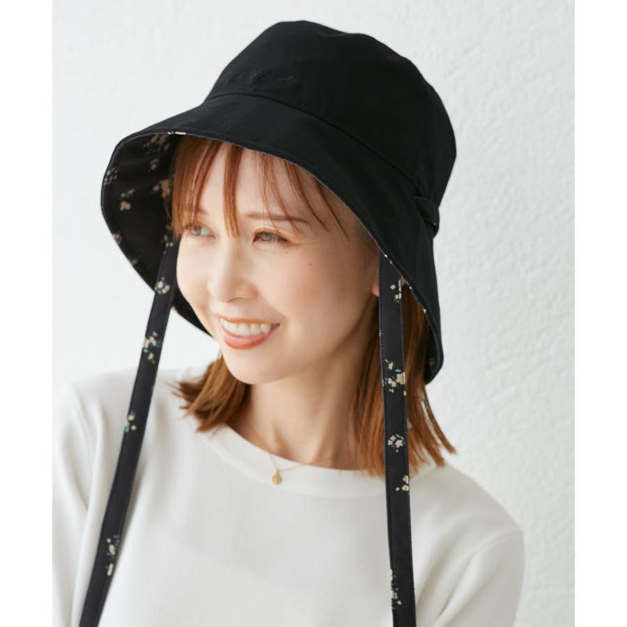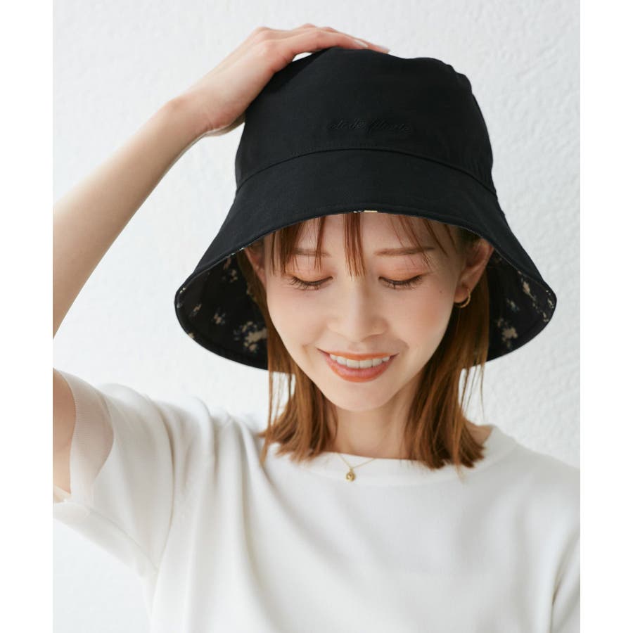 【素材感】 ・夏に嬉しいUVカット機能(紫外線遮蔽率:99%以上)を備えたバケットハット。 【デザイン・シルエット】 ・無地と花柄の両方が楽しめるリバーシブル仕様。 ・リボンの取り外し可能。 ・前後2WAYなので、フェイスを守りたい時はツバが長い方を前に、首元を守りたい時はツバの長い方を後ろにと状況に合わせて使用可能。 【カラー】 ・ブラック無地×ブラック花柄、キナリ無地×キナリ花柄のモノクロカラー2色展開。 【スタイリングポイント】 ・シンプルな装いでは、花柄が主役に。 ・カジュアルなアウトドアファッション、気軽な日常使いは無地面を選んで。 ※撮影時の光、お使いのモニター環境によって色の見え方が違う場合がございます。