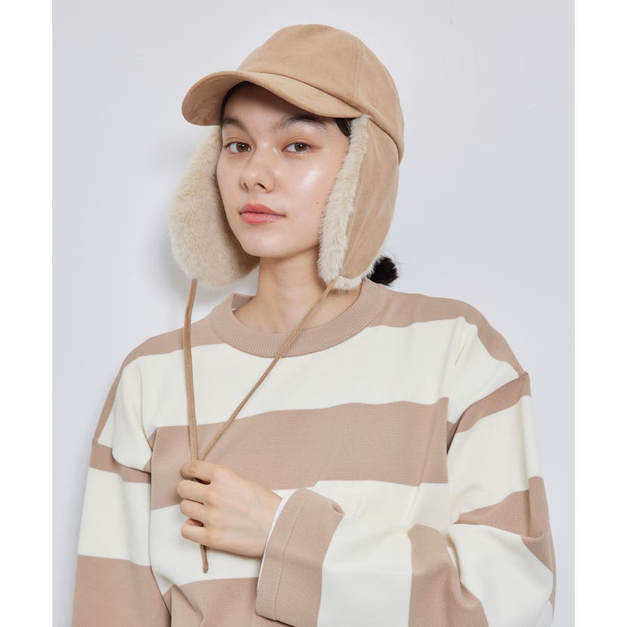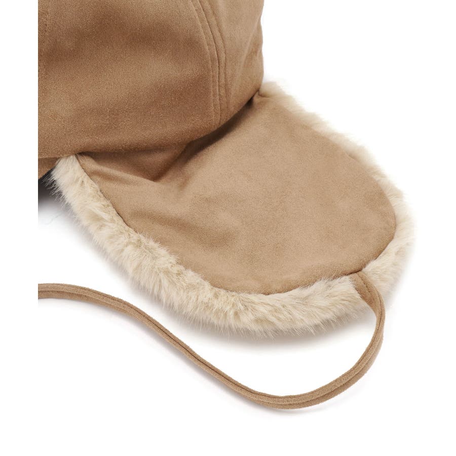 【素材感】 ・合成皮革のスウェードを用いた、暖かみのあるフライトキャップ。 【デザイン・シルエット】 ・耳当て部分は、上に折り返してリボンで結ぶアレンジも楽しめる。 ・サイズ調節可能。 【カラー】 ・ブラック、ベージュのベーシックな2色展開。 【スタイリングポイント】 ・カジュアルなキャンプコーデなどにベストマッチ。 ・デイリーならスウェットシャツ、ロングスリーブシャツなどにシンプルに合わせて。 ※撮影時の光、お使いのモニター環境によって色の見え方が違う場合がございます。